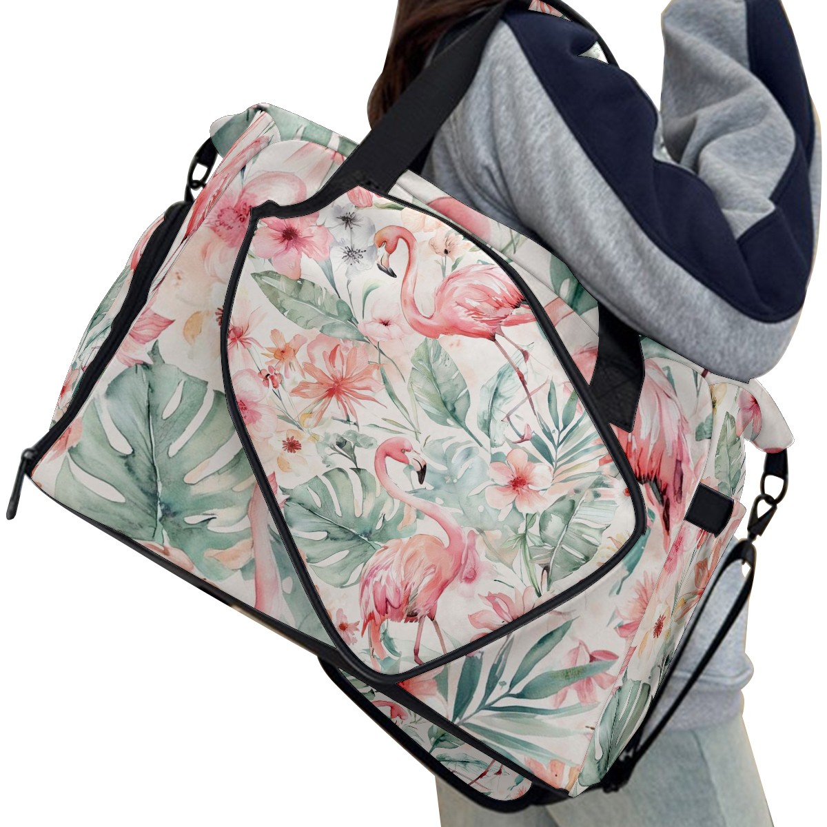 Women's Tennis Bag Large Capacity - Ventilated Shoe Compartment & Waterproof Wet Pocket, Multi-Functional Gym Duffel Bag for Tennis, Yoga, Travel (Romantic Flamingo Pink)