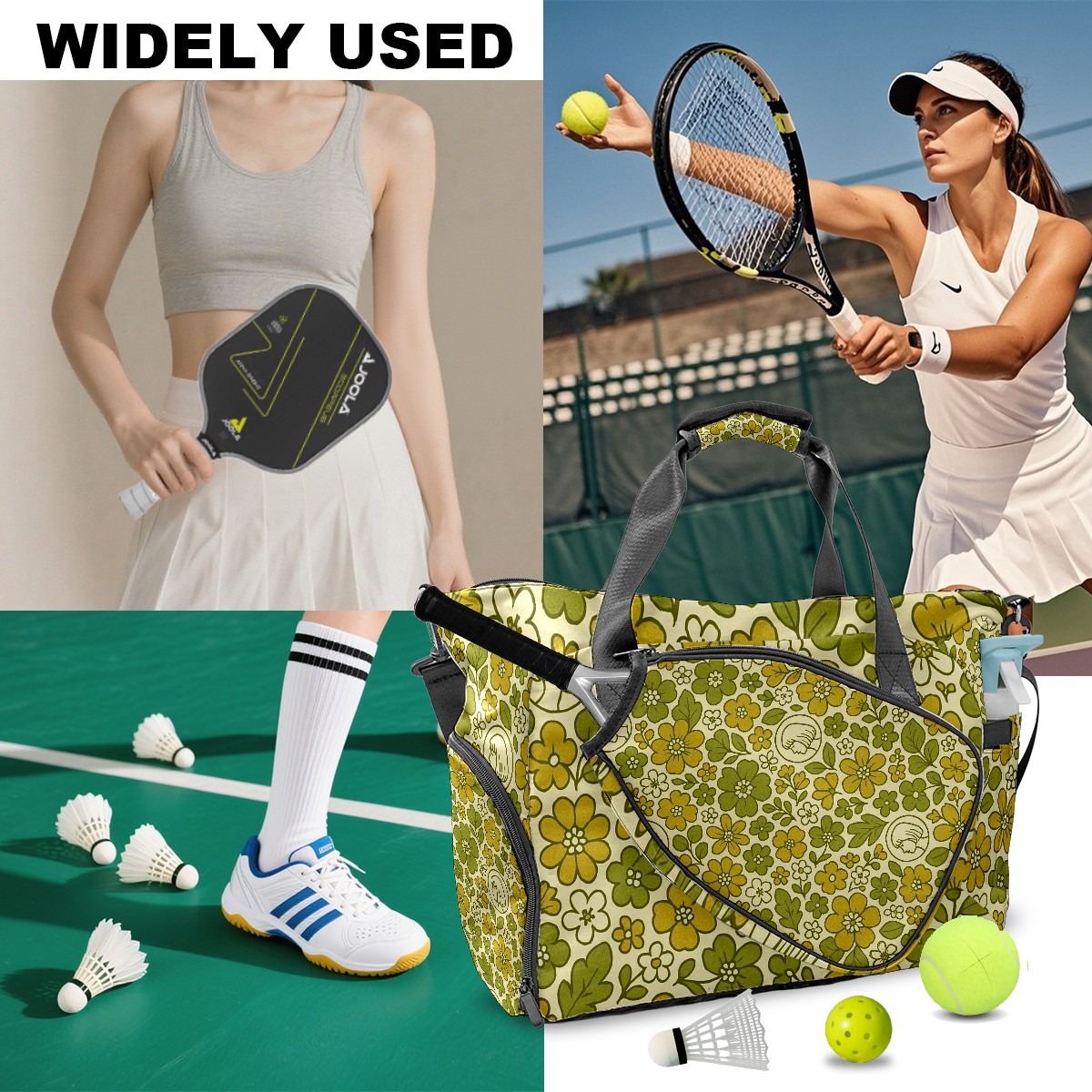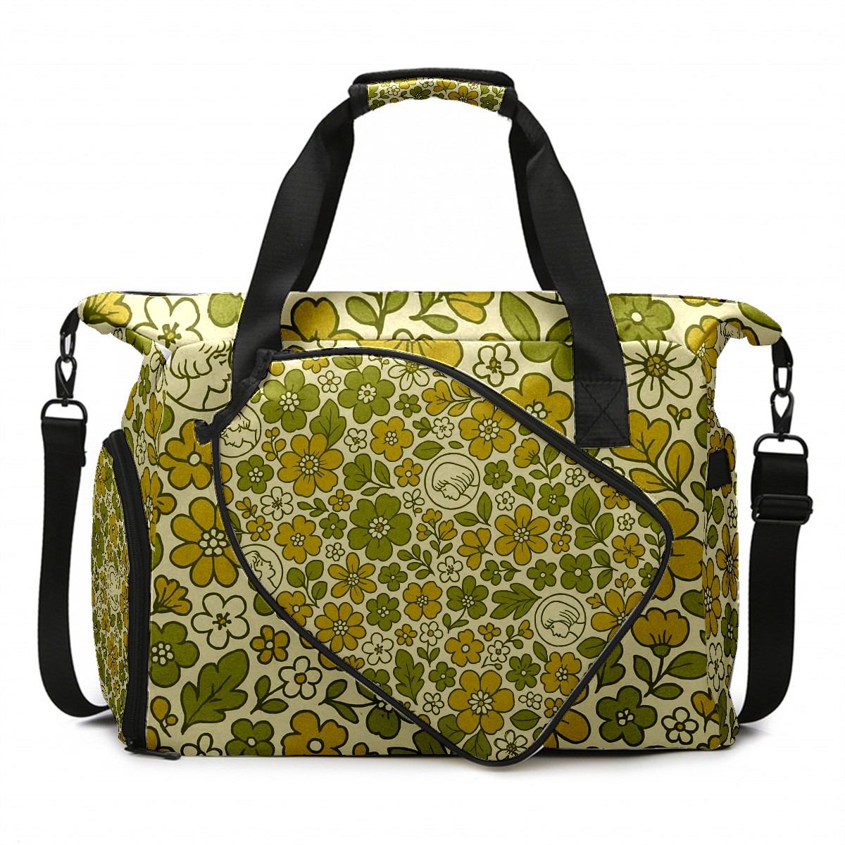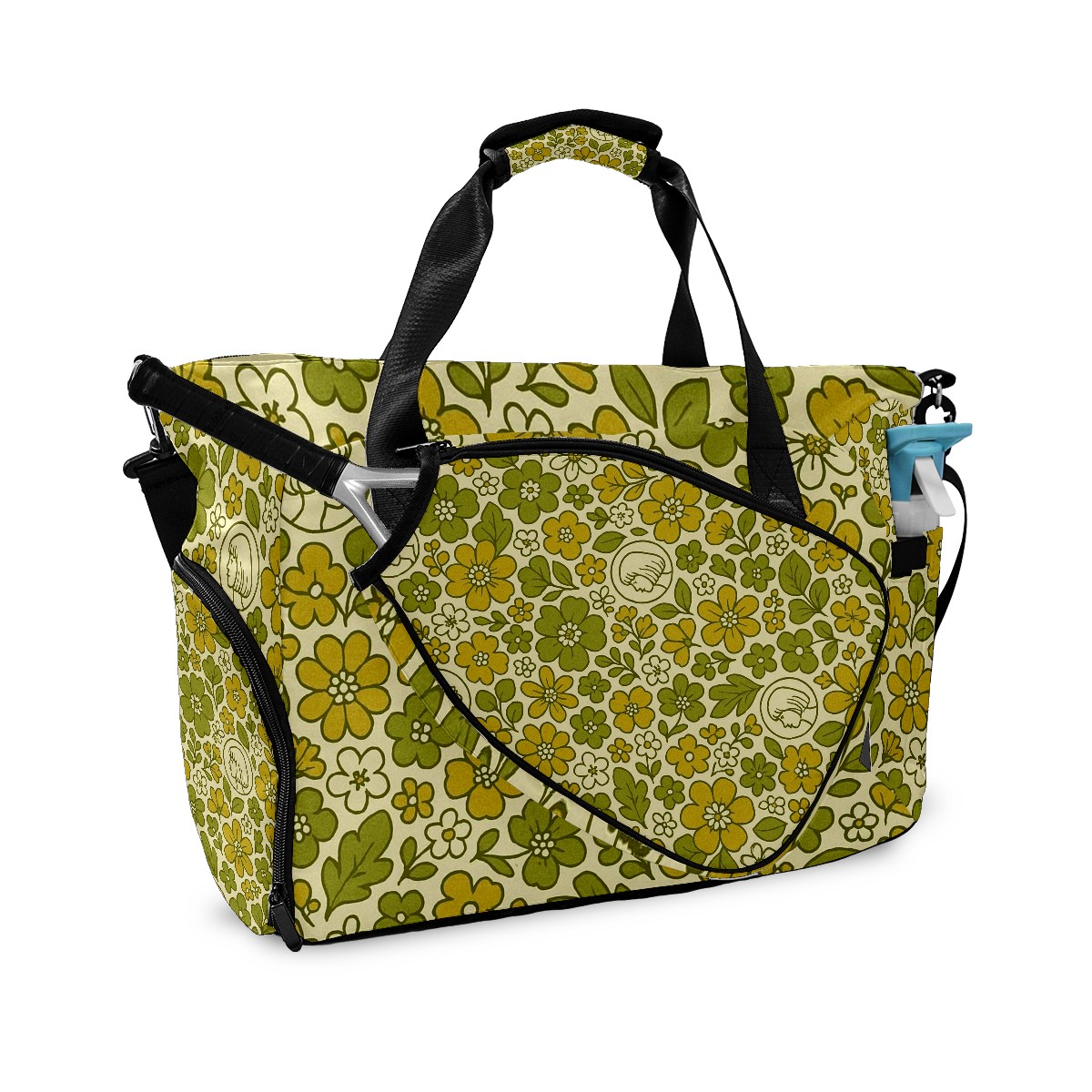 Women's Tennis Bag Large Capacity - Ventilated Shoe Compartment & Waterproof Wet Pocket, Multi-Functional Gym Duffel Bag for Tennis, Yoga, Travel (Fresh Flower Yellow)