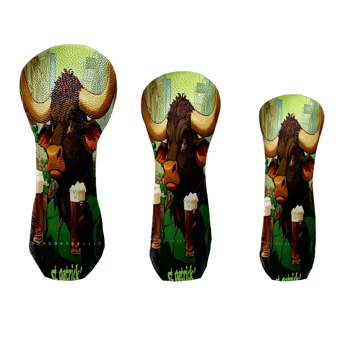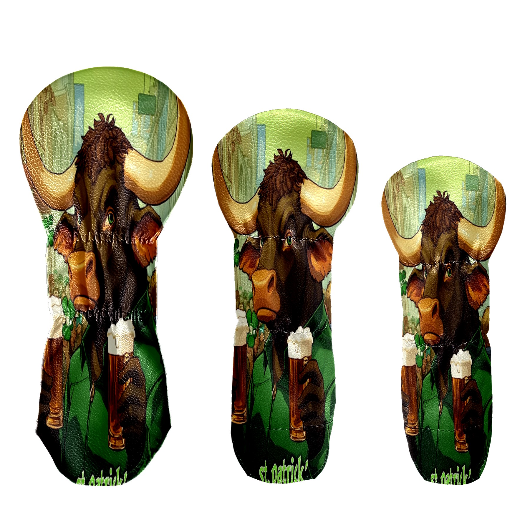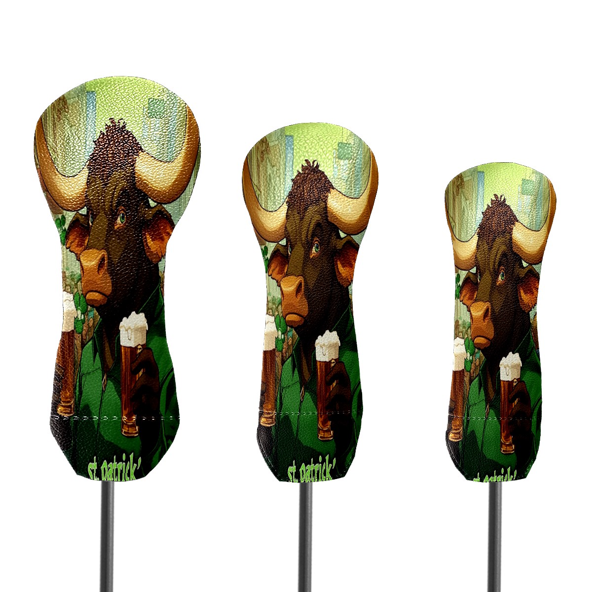 Golf Head Cover Waterproof Leather Headcovers for Driver Golf Accessories Golf Christmas Gift for Golfers 1/3/5 Hybrid Fairway Wood Cover Dark Bull Patrick's Day Design