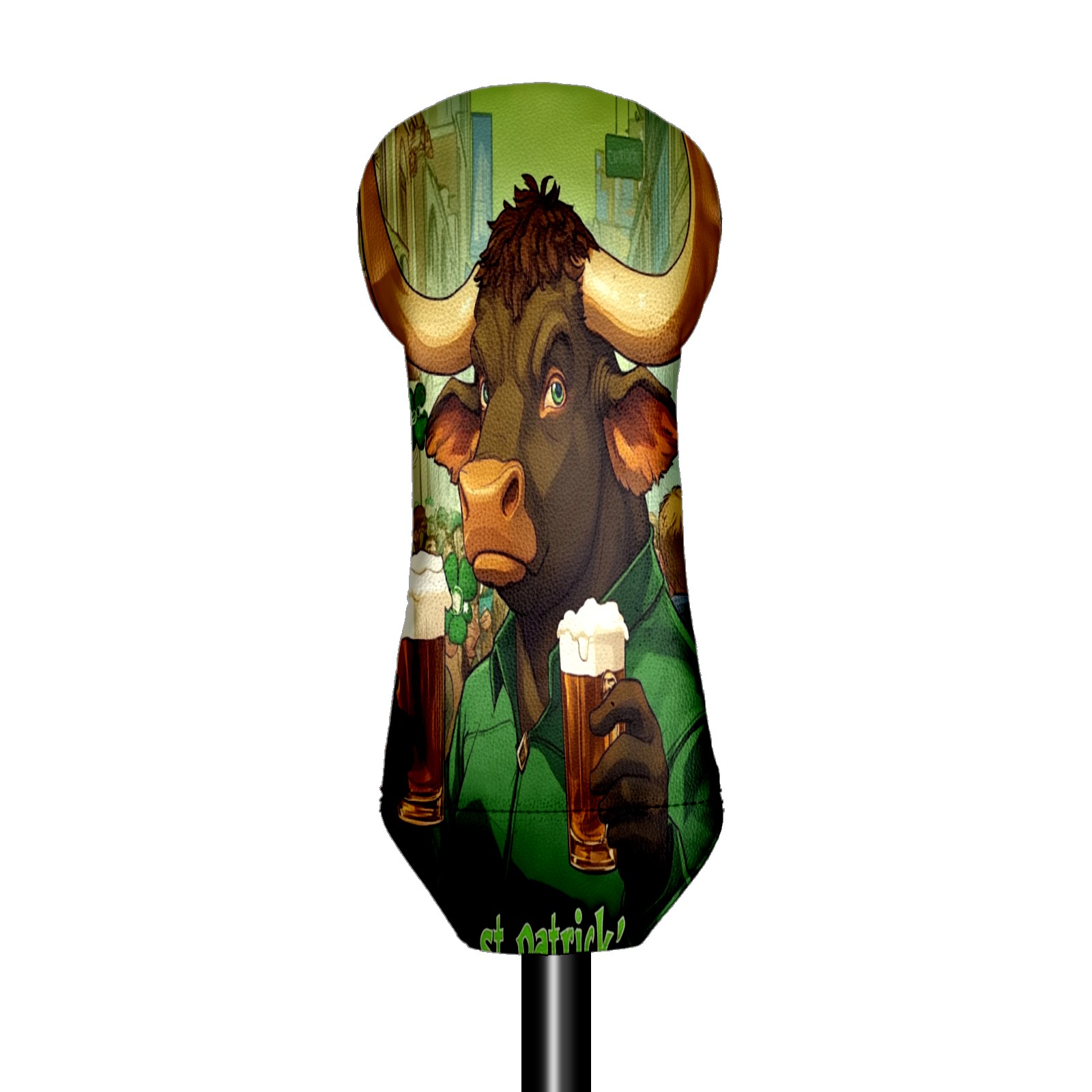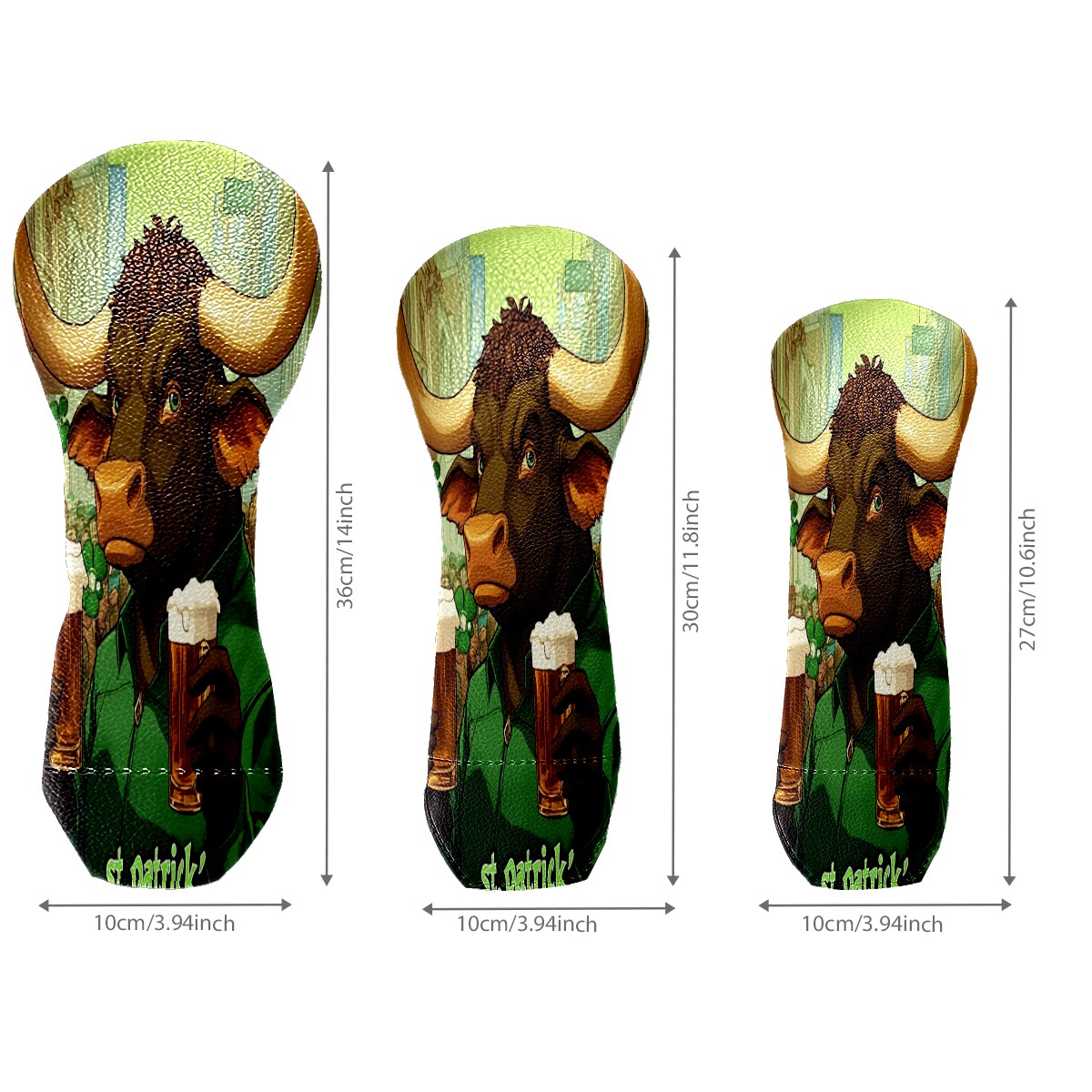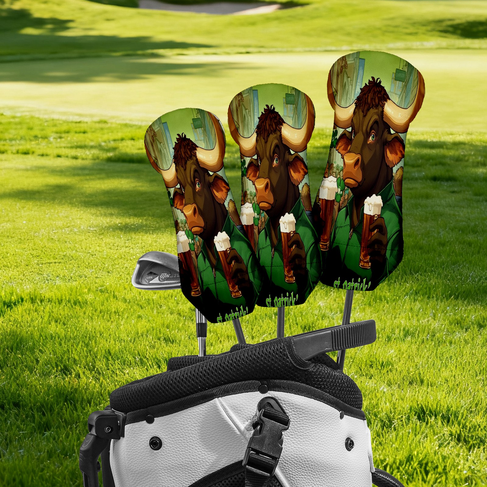 Golf Head Cover Waterproof Leather Headcovers for Driver Golf Accessories Golf Christmas Gift for Golfers 1/3/5 Hybrid Fairway Wood Cover Dark Bull Patrick's Day Design