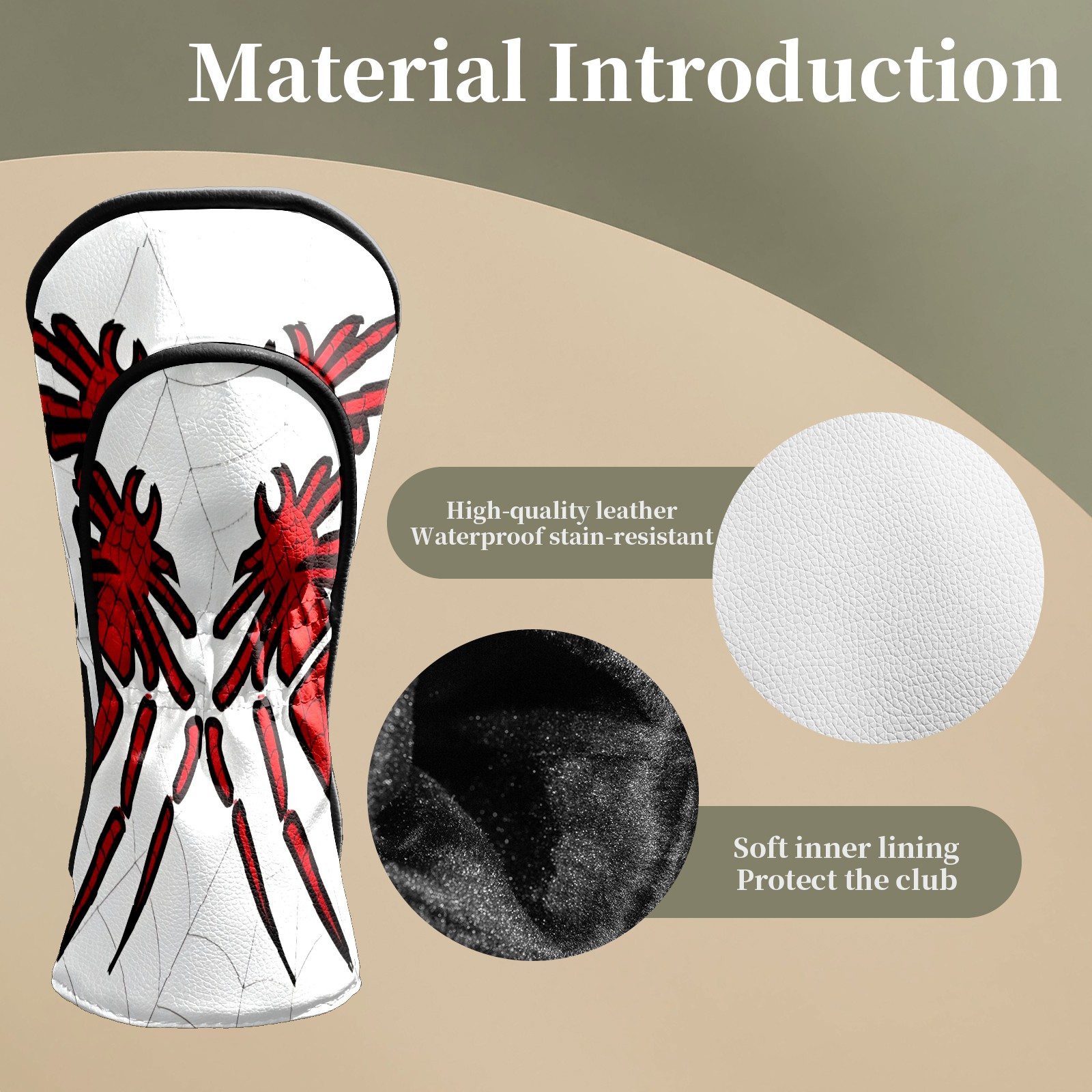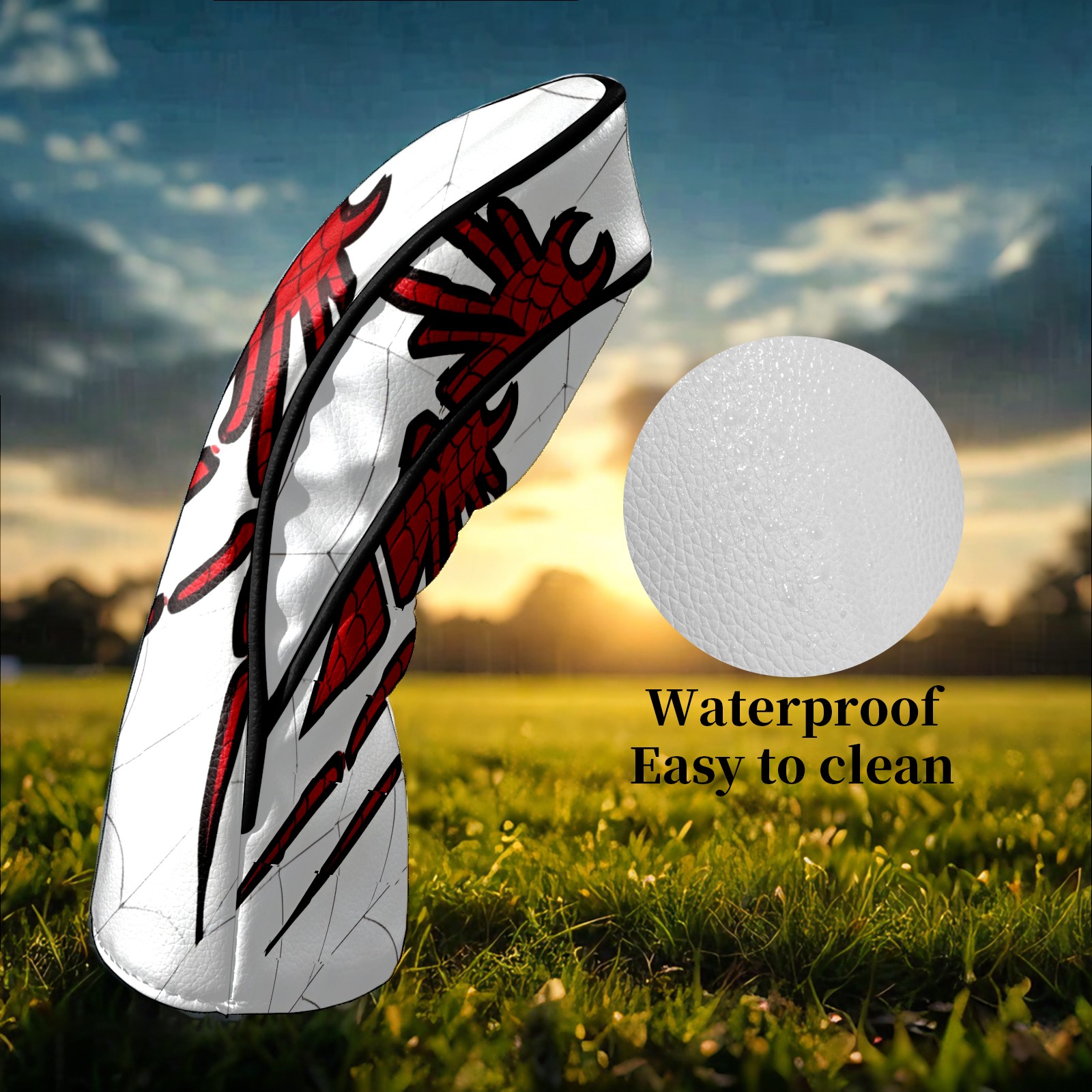 Golf Club Head Covers Win Spiders Graphic Waterproof Leather Golf Head Covers for Men Women Driver Head Cover Fairway Headcover for Golf Lovers