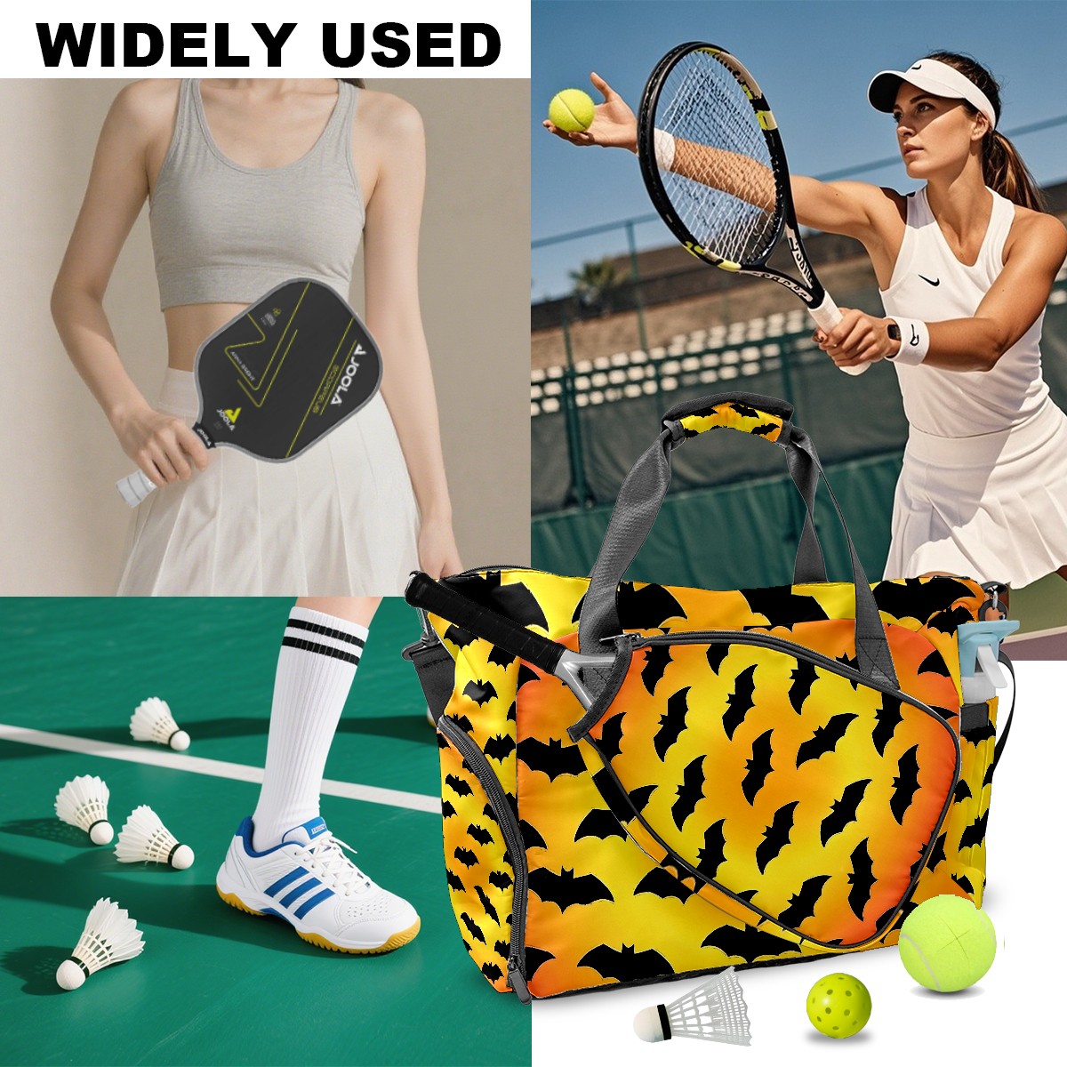 Counullo RedGradient Bats Gym Bag for Women & Tennis Bag, Large Sports Duffel Bag Waterproof with Ventilated Shoe Compartment & Front Racket Sleeve, Lightweight Travel Weekender Overnight Bag
