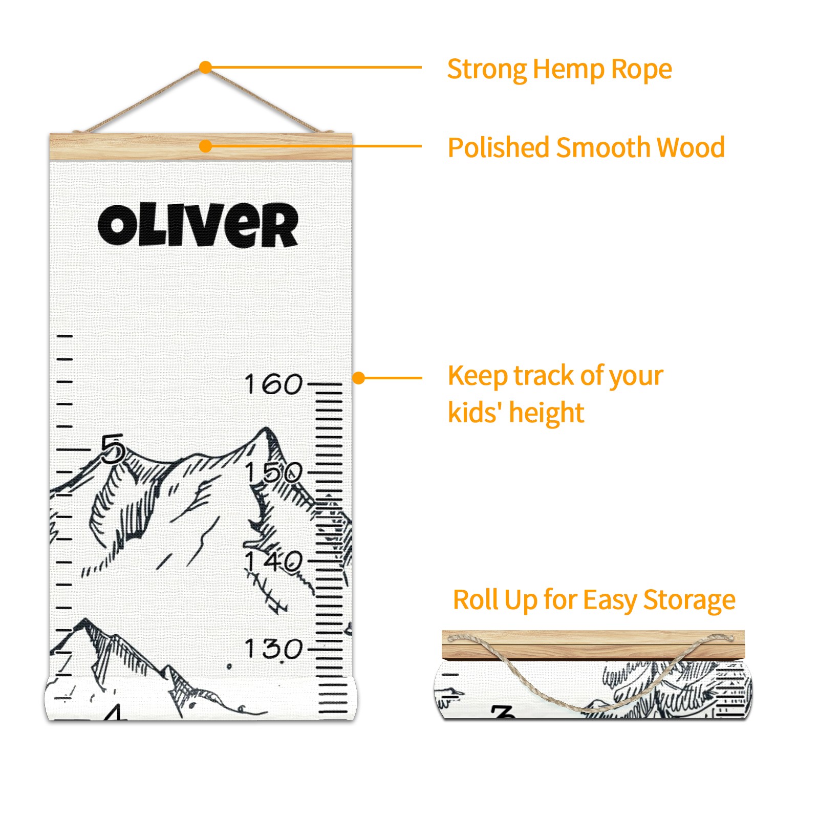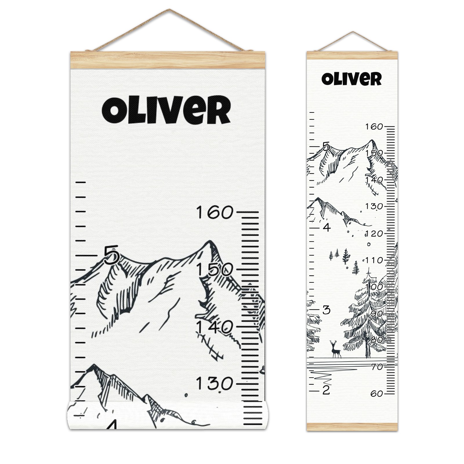 Personalized Kids Name Growth Chart Ruler for Wall Wood Frame Canvas Height Measure Chart 13.4x56 in Hanging Growth Chart Winter Mountain12.15-1 Boys Girls Room Decor