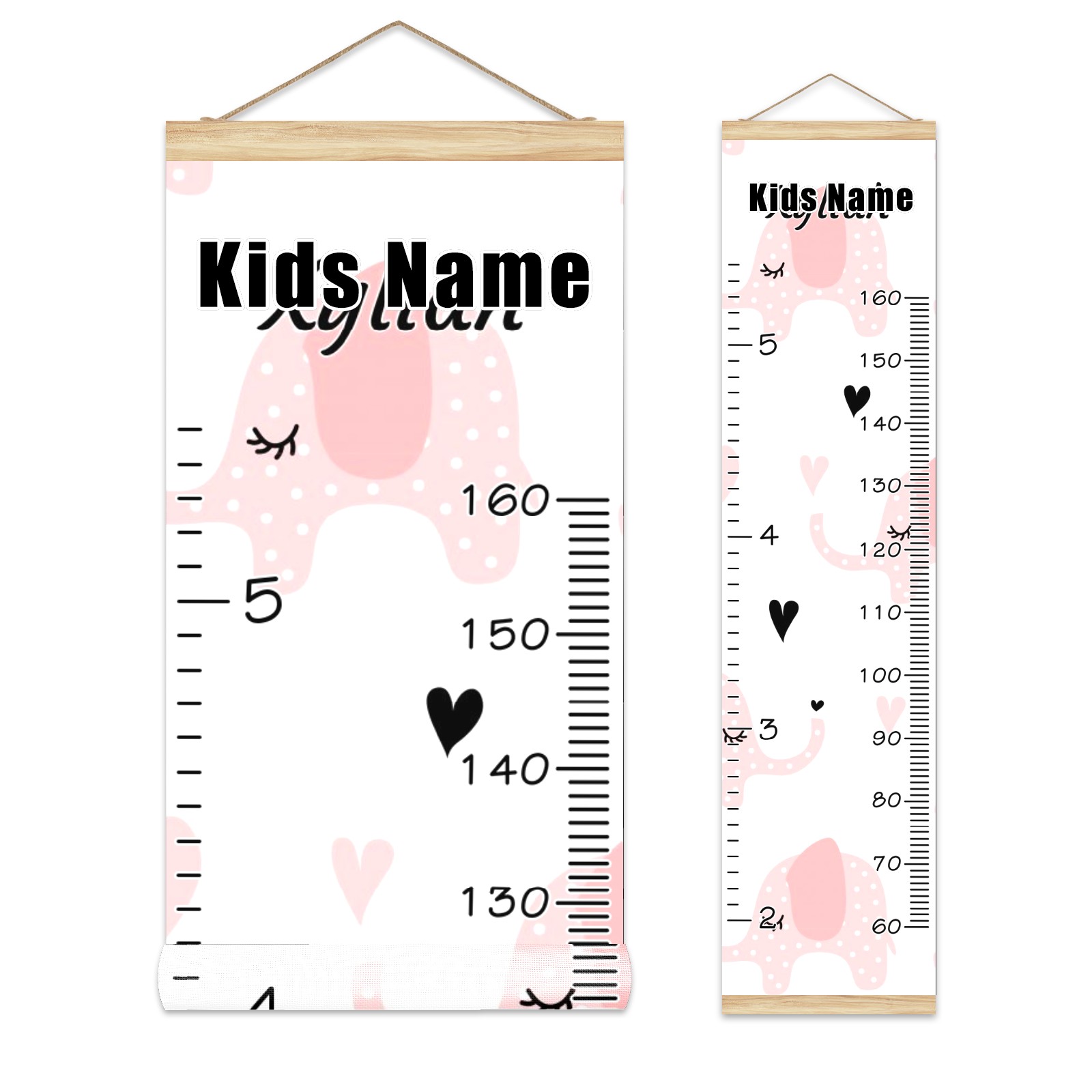 Personalized Kids Name Growth Chart Ruler for Wall Wood Frame Canvas Height Measure Chart 13.4x56 in Hanging Growth Chart Pink Elephant12.15 Boys Girls Room Decor