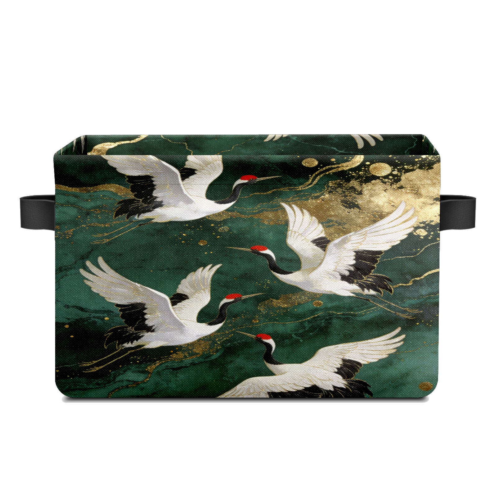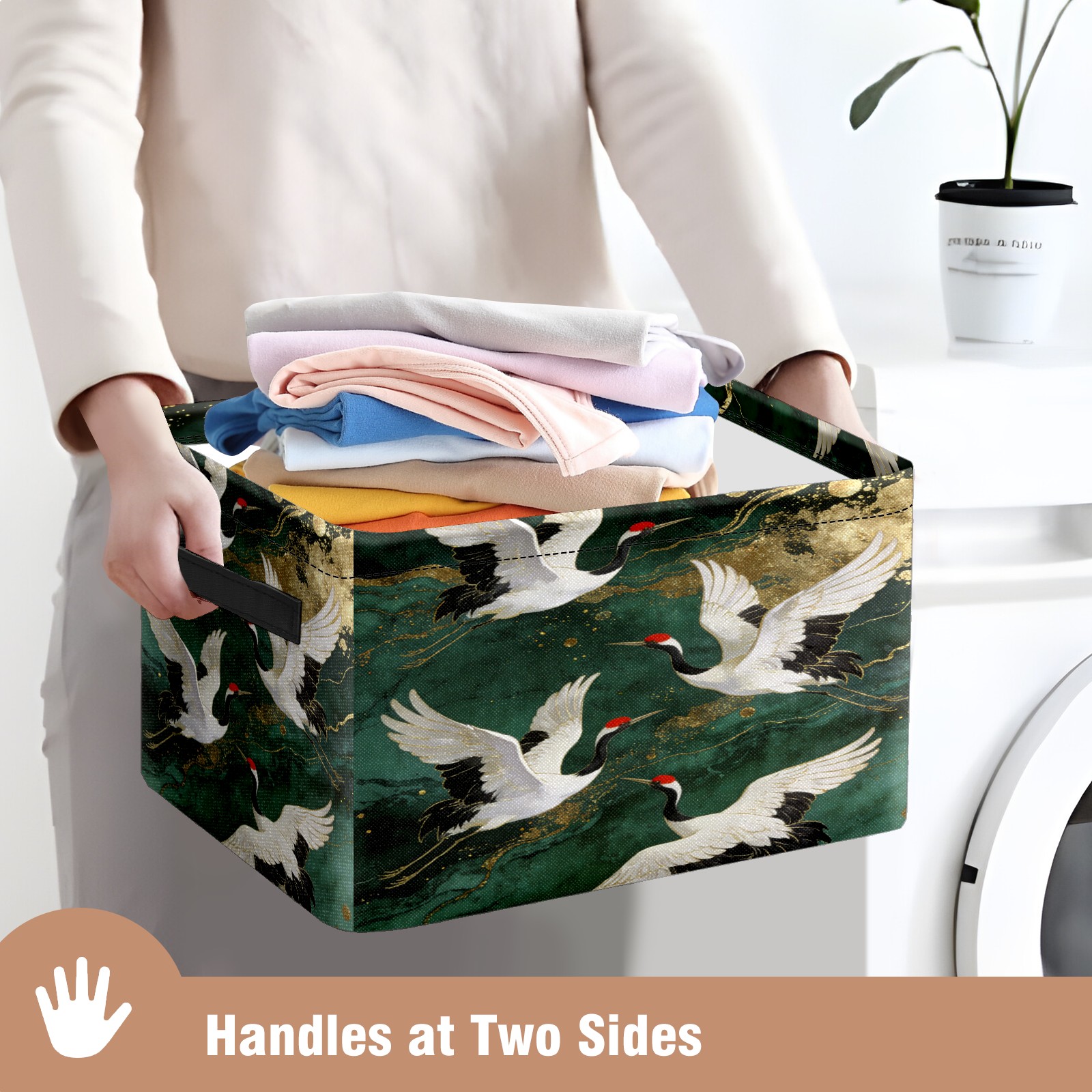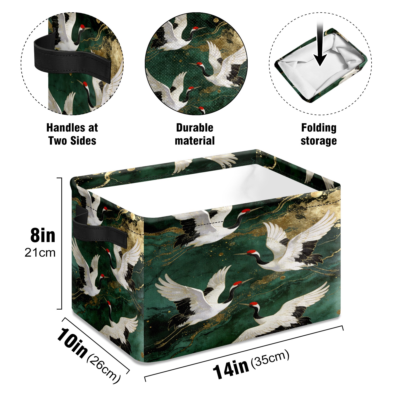 Large Storage Box, Foldable Toy Basket with Handle, for Organizing Home/Dorm/Kitchen/Pet/Office/Closet/Shelf/Gift Baskets White Crane Gilded Pattern