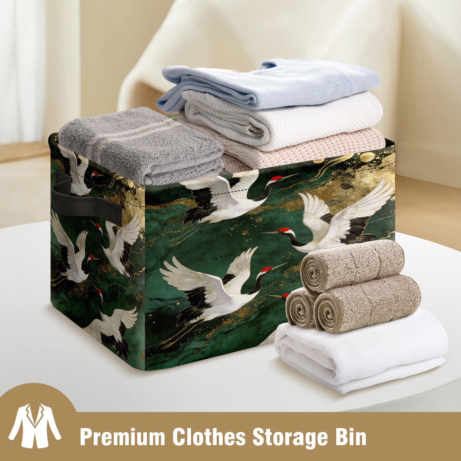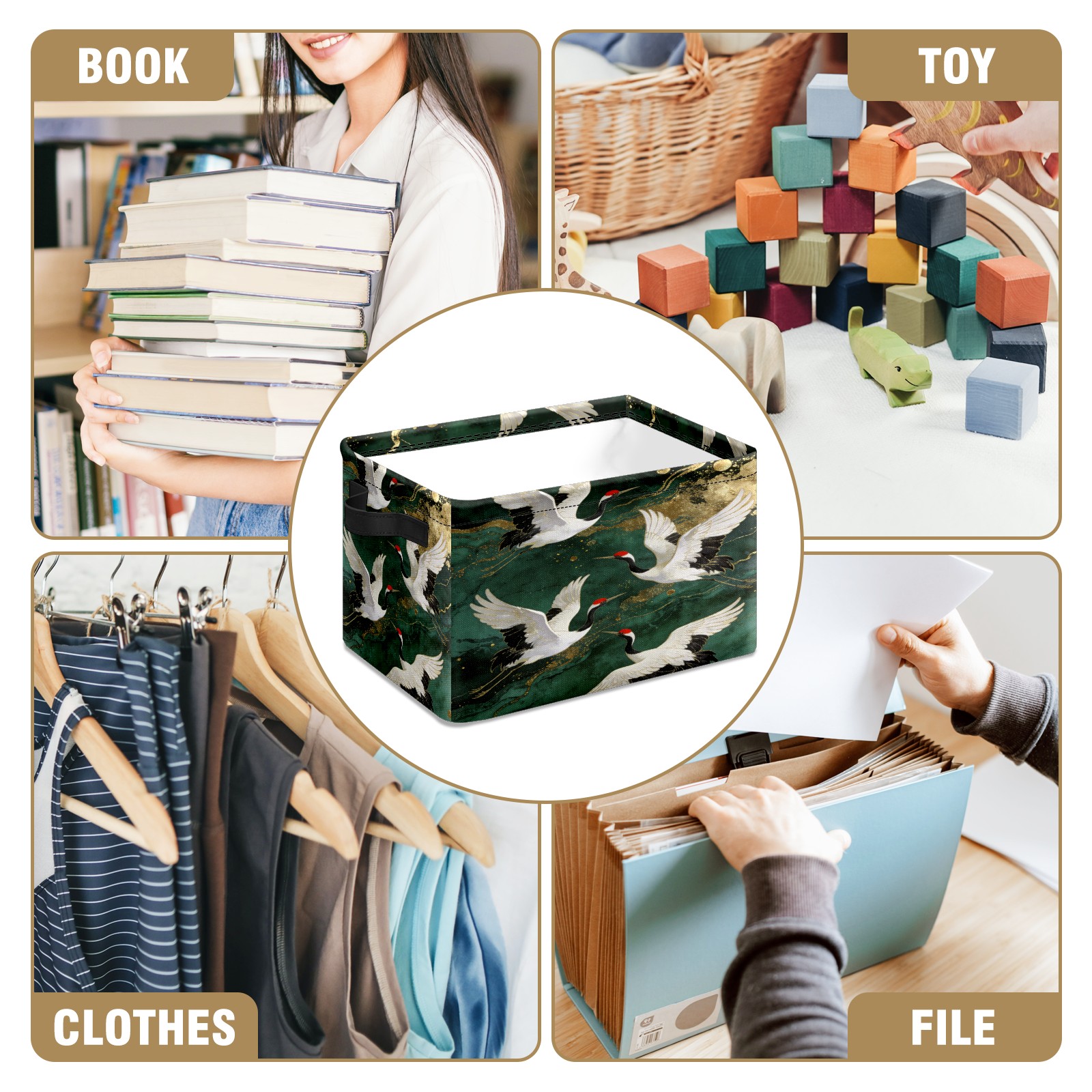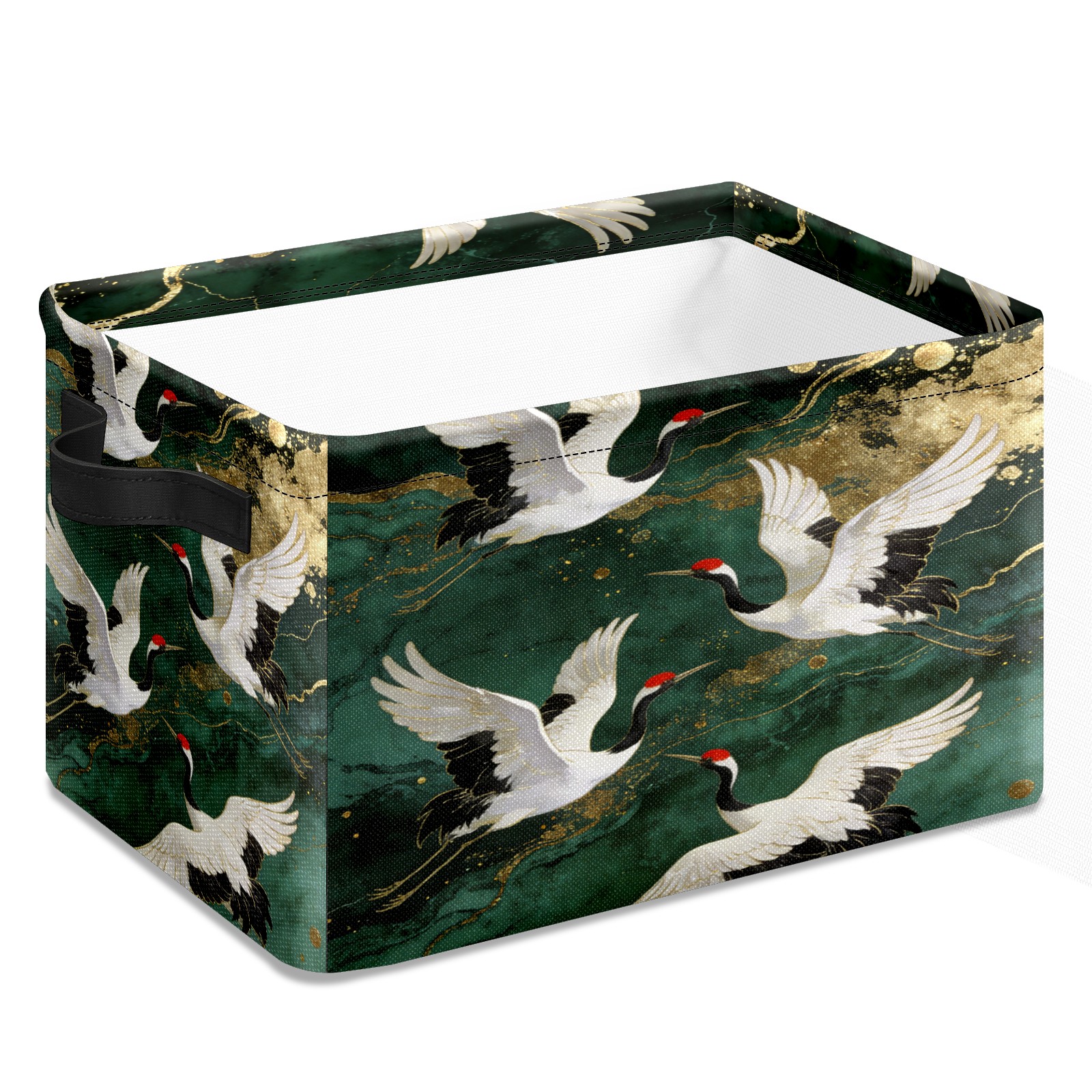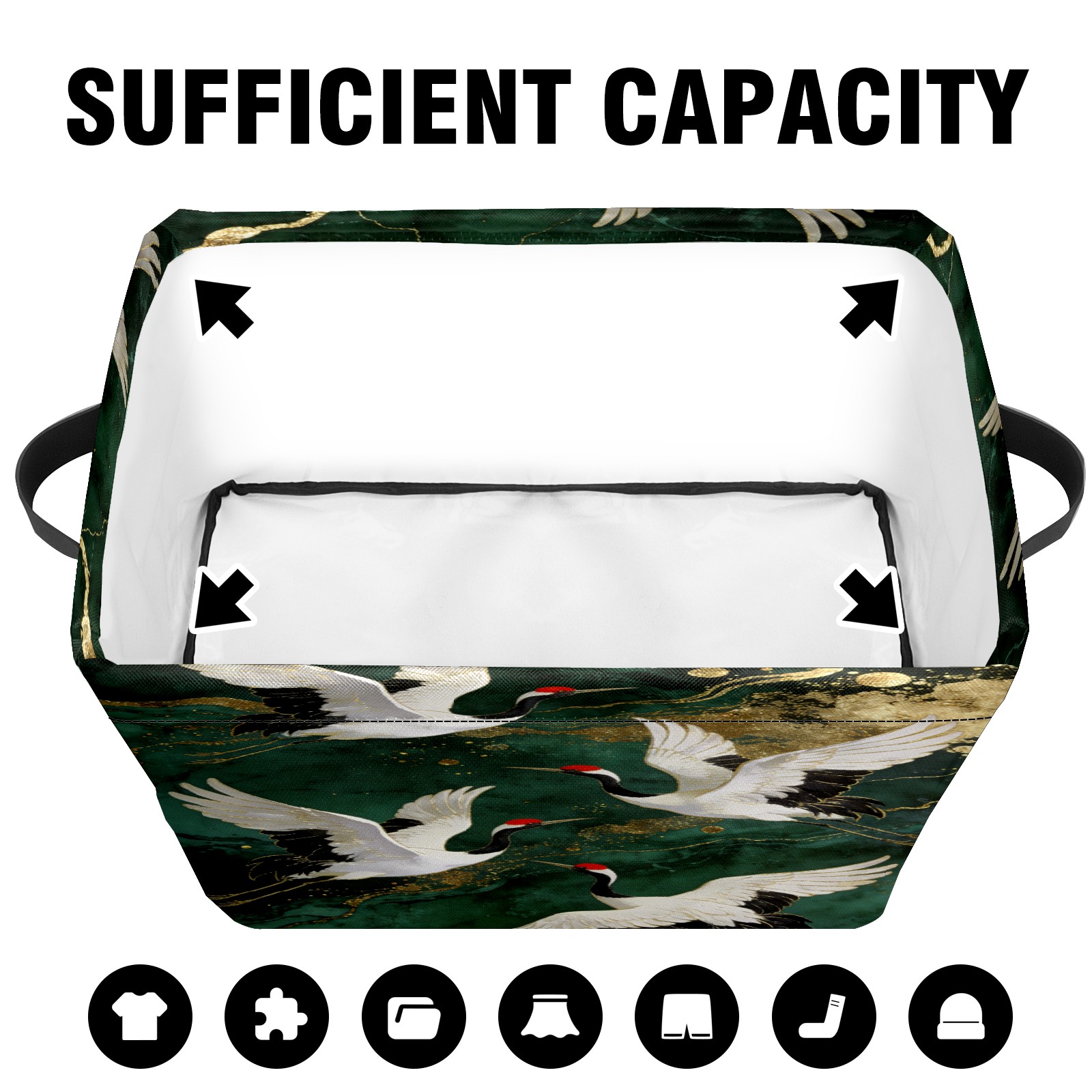 Large Storage Box, Foldable Toy Basket with Handle, for Organizing Home/Dorm/Kitchen/Pet/Office/Closet/Shelf/Gift Baskets White Crane Gilded Pattern