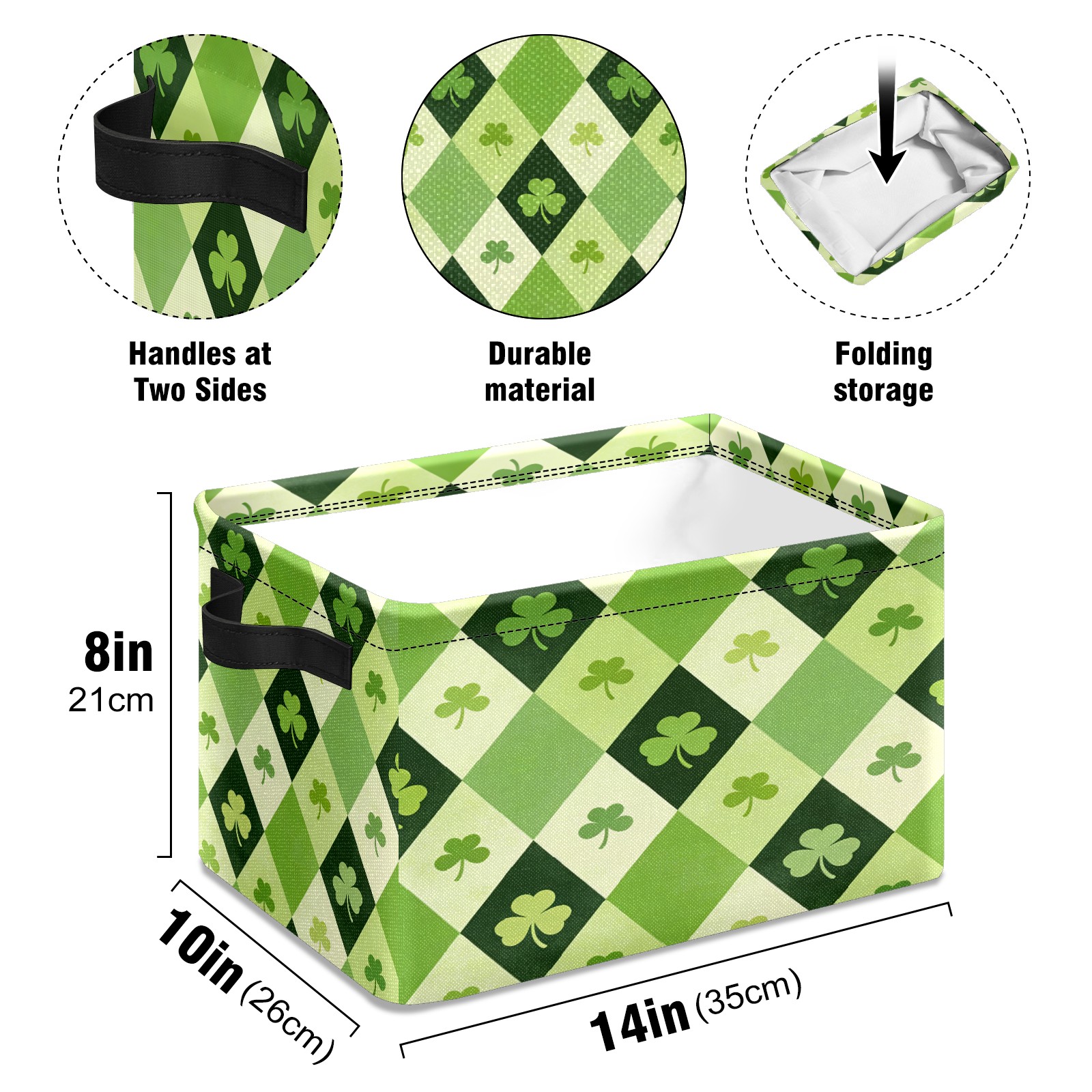 <p>This versatile storage basket can be used for bedroom organization, clothing storage, toy storage, bathroom towel storage, toilet storage, book and magazine storage, holiday decoration storage, and living room storage, among others. Its spacious 10×14×8 inch dimensions provide ample storage space. Combining practicality and a festive feel, this storage basket is an ideal home item! Made of easy-to-clean Oxford cloth, everyday stains can be easily removed with mild soapy water. The sturdy metal frame and rigid base ensure it maintains its shape when folded, but to extend its lifespan, please avoid machine washing. It folds flat and compact, saving space.</p>