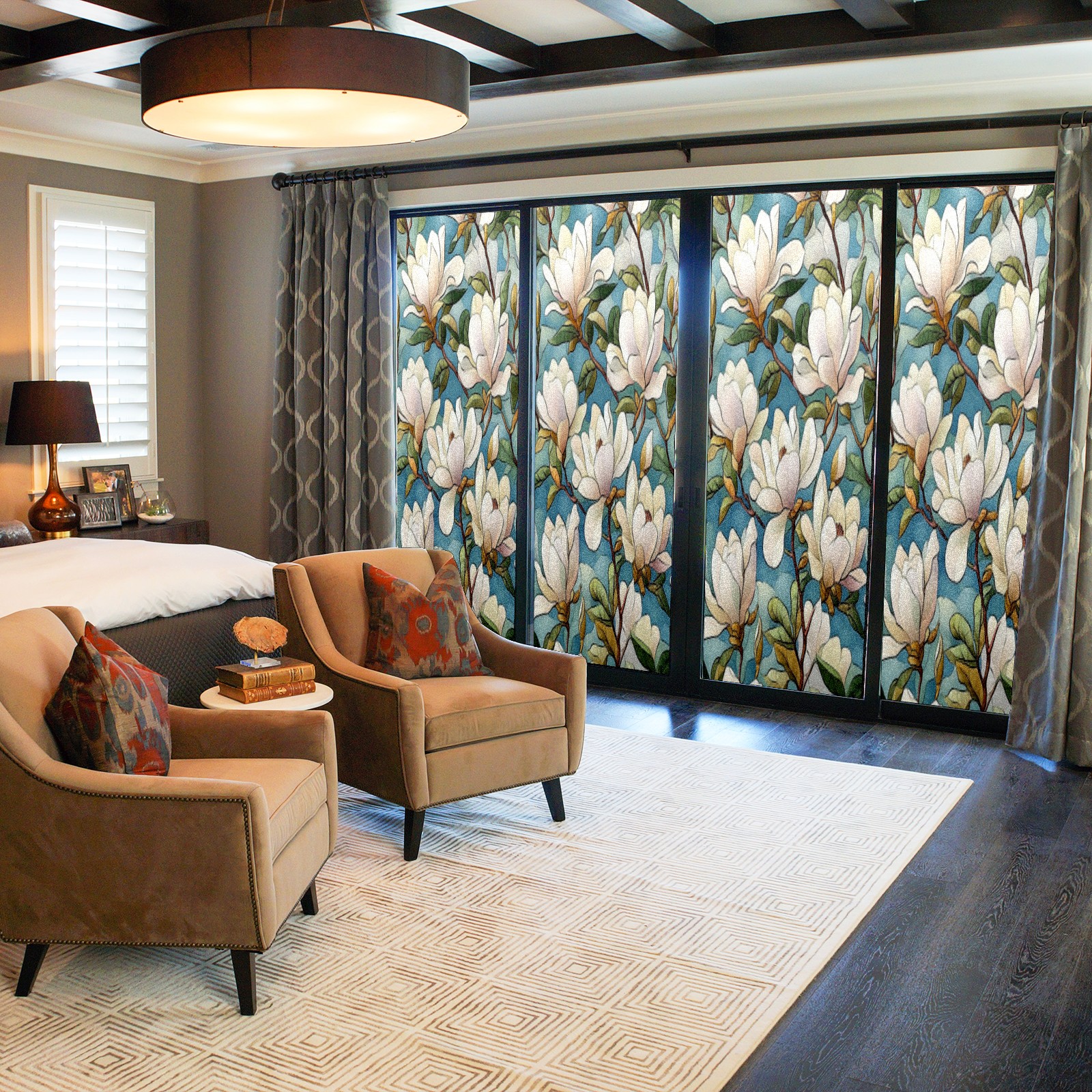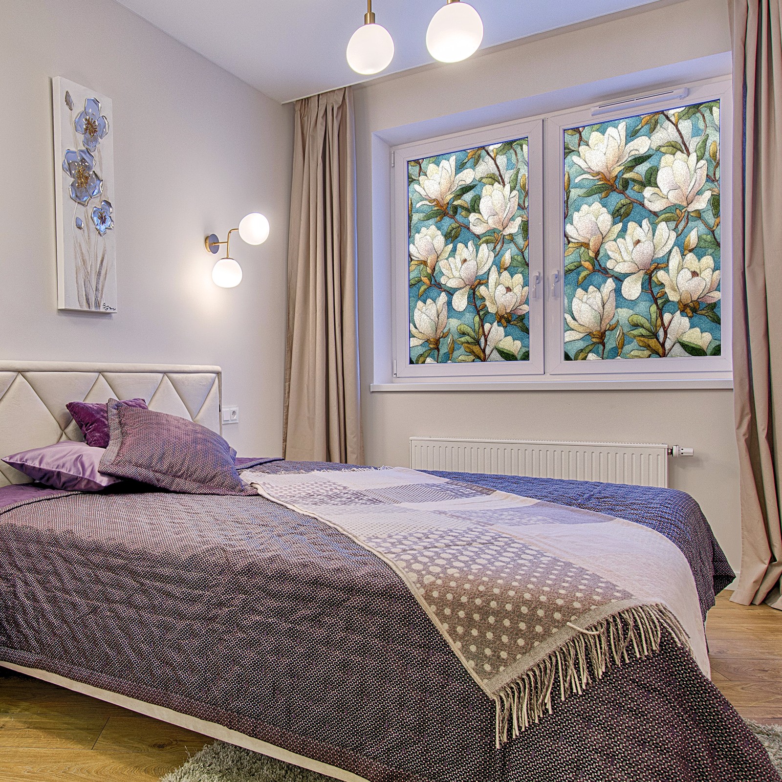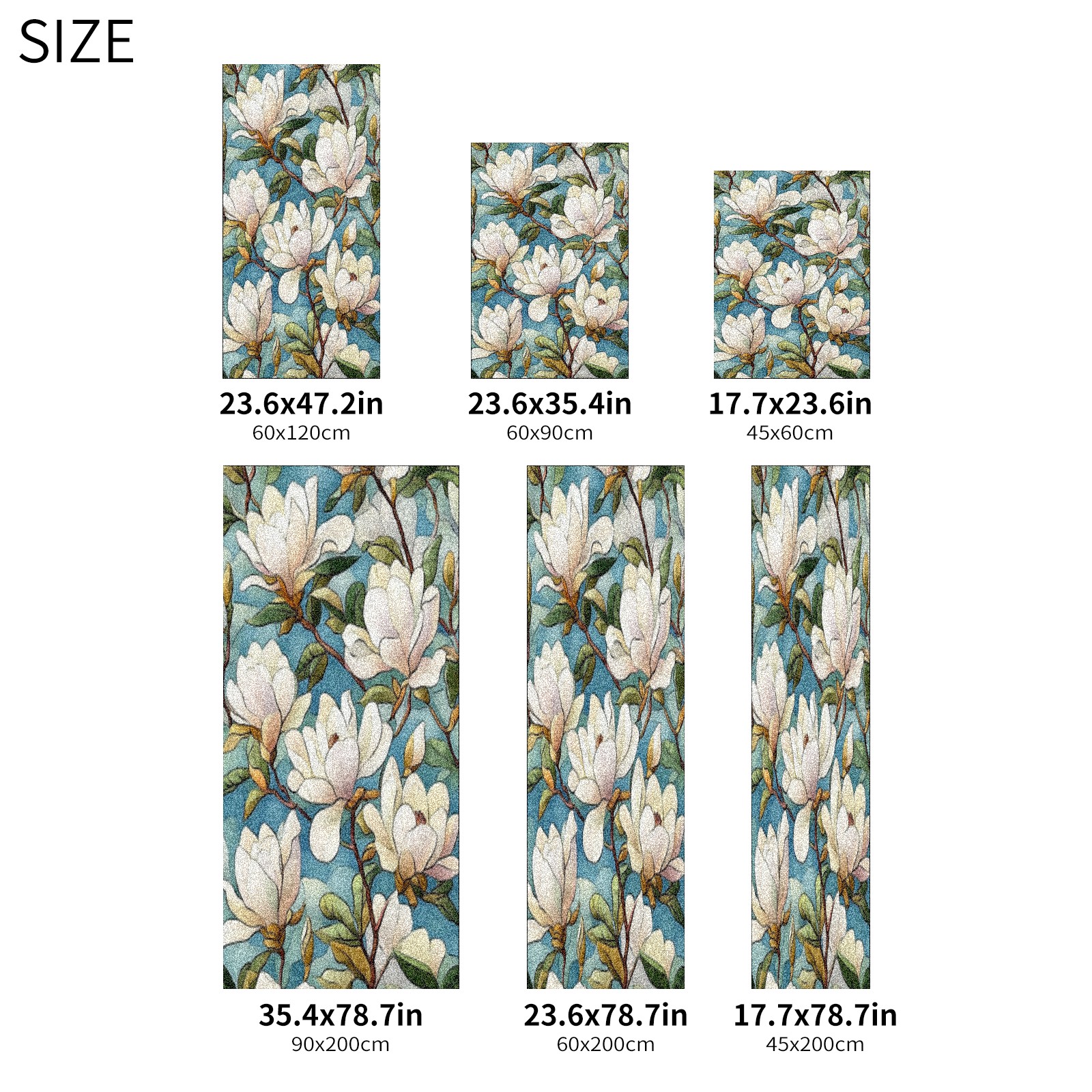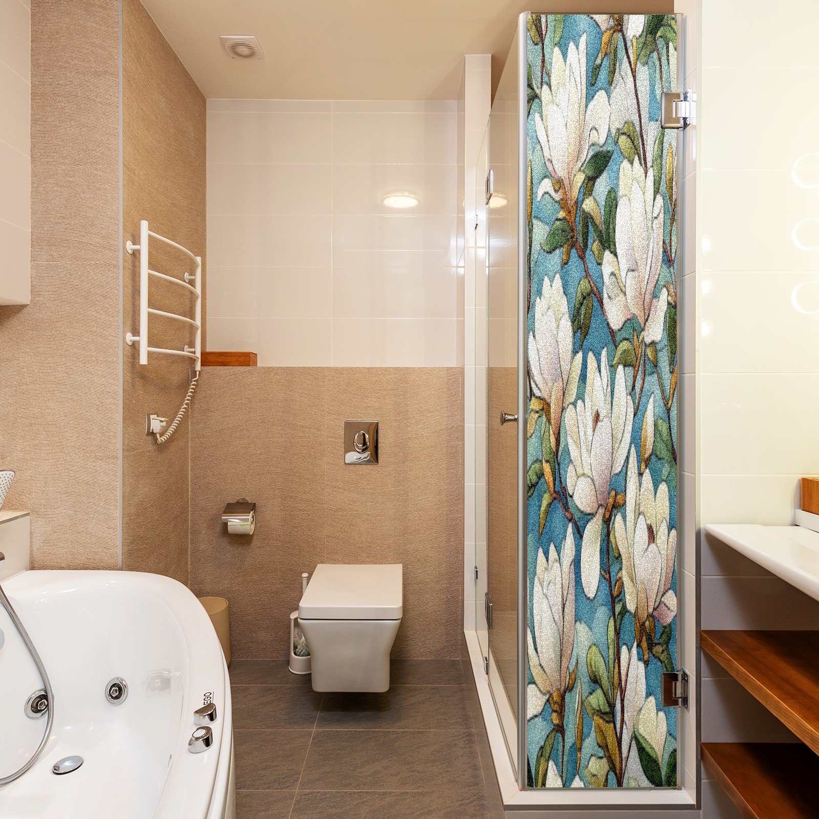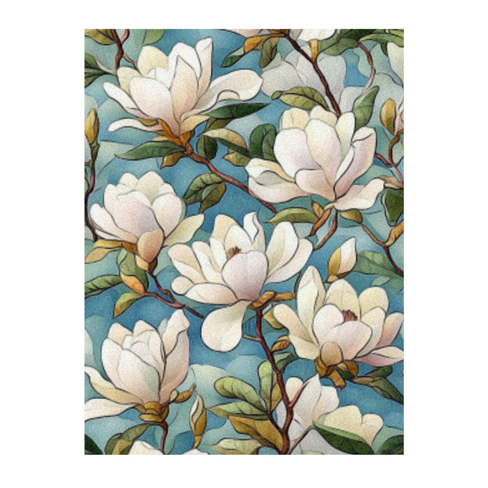 Frosted Glass Window Film Privacy Film Decorative Static Cling Window Film Stained Glass Decals for Bathroom Shower Door Non Adhesive Elegant White Magnolia Glass (17.7x23.6in)