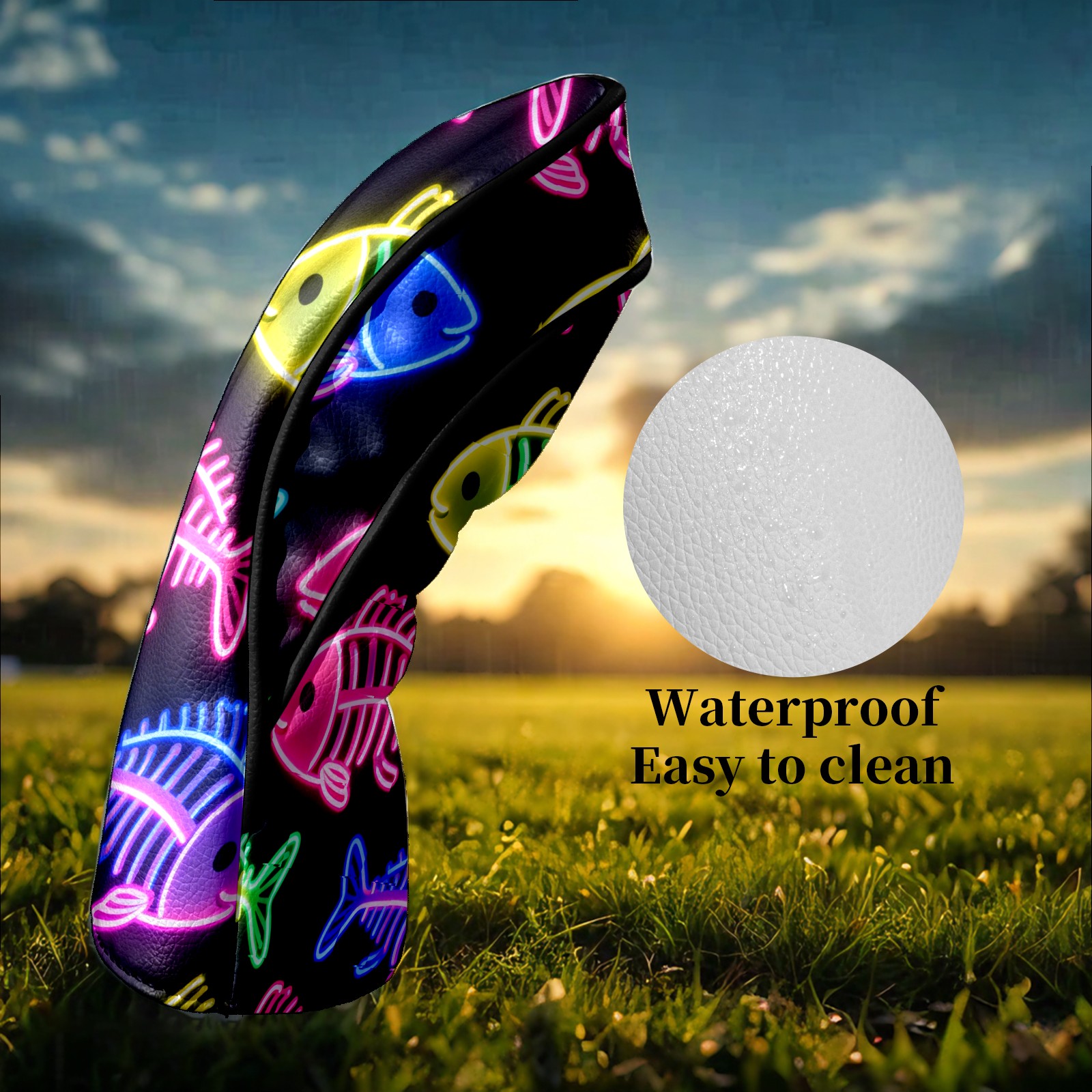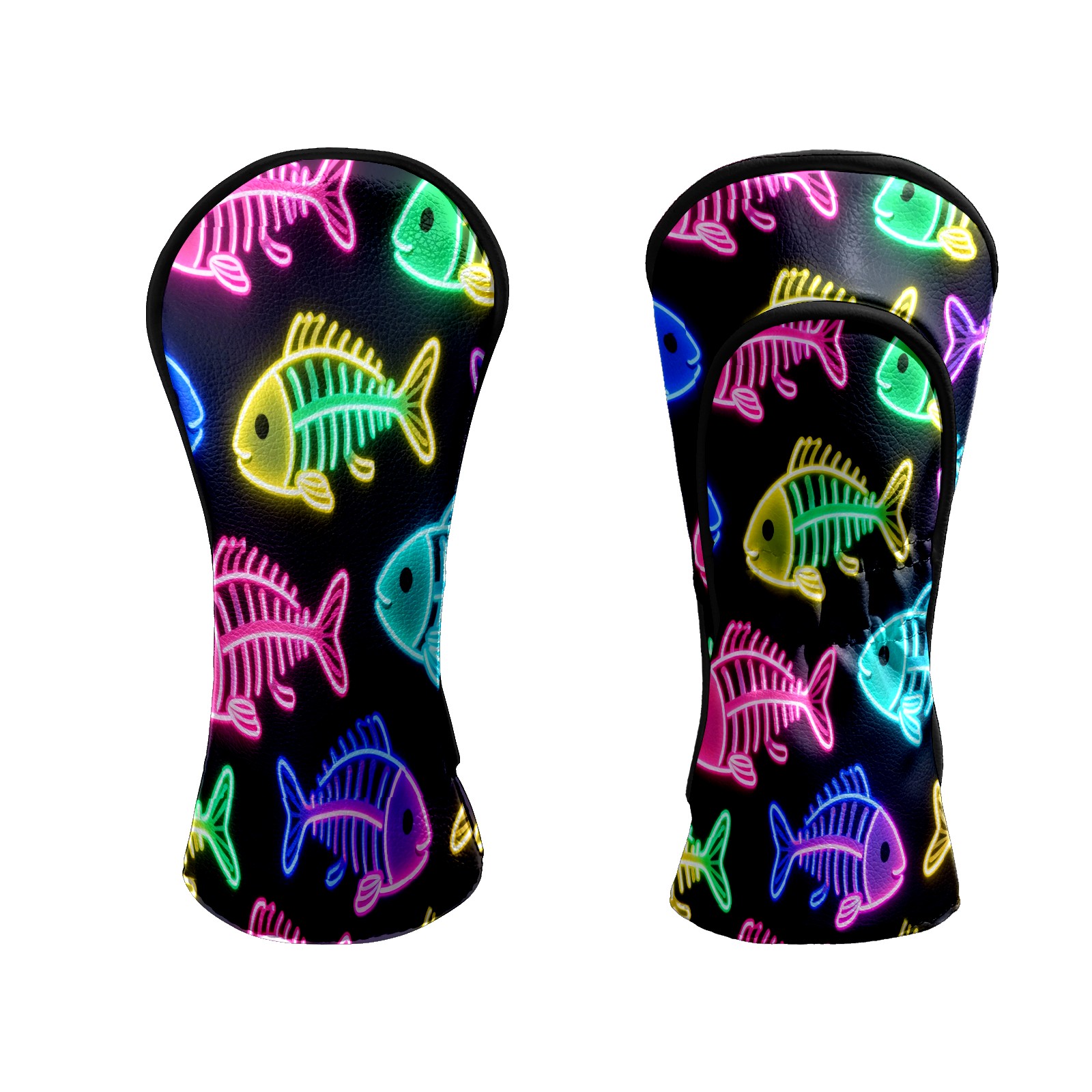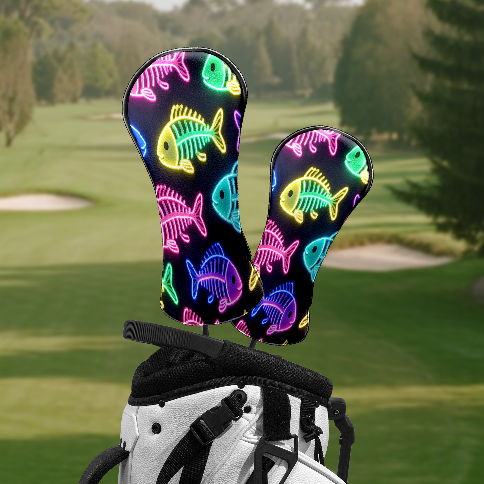 Golf Head Covers Leather Driver Head Cover, Premium Golf Club Covers with Soft Lining Fits Driver Hybrid Fairway 3/5 Wood for Women Men (Neon Fish)