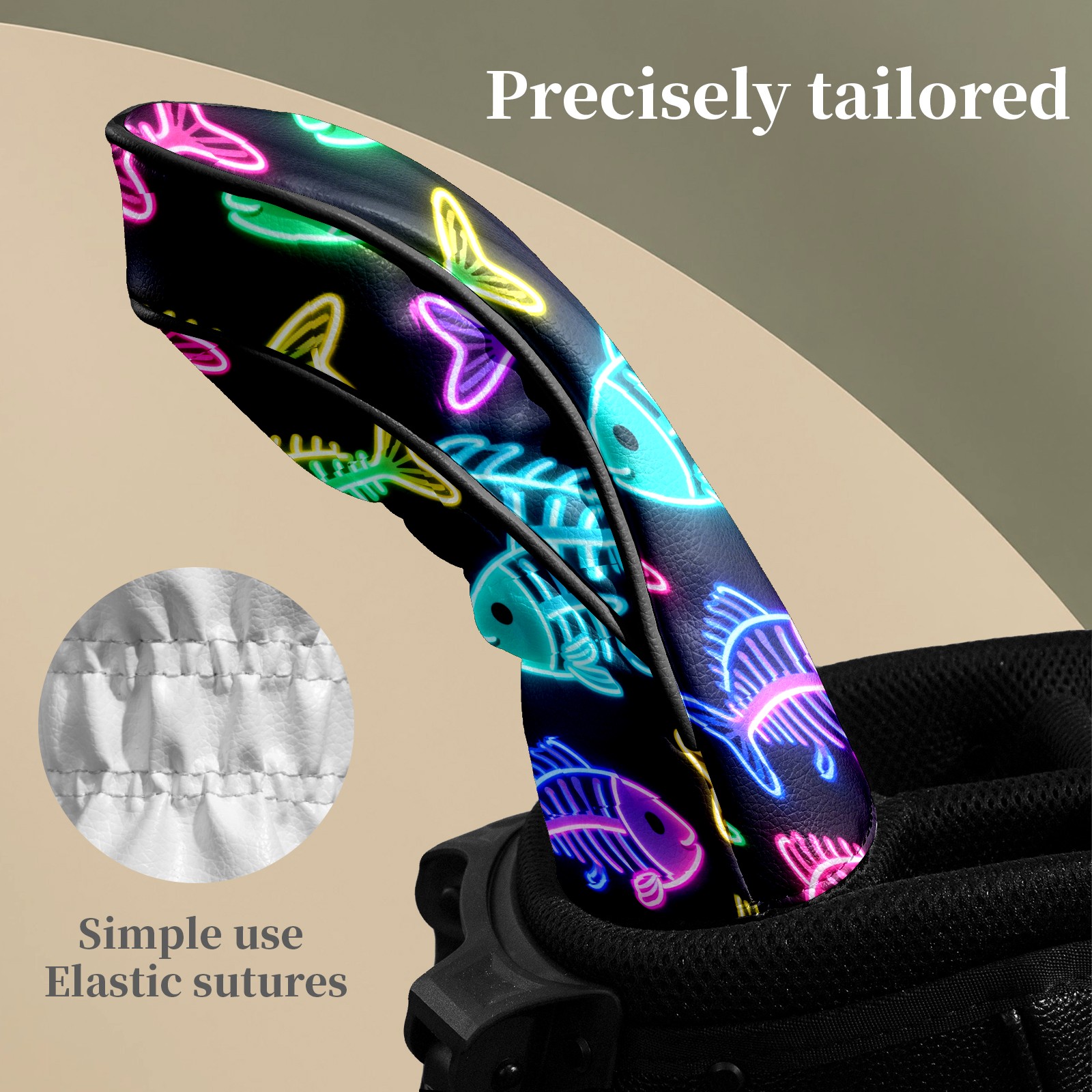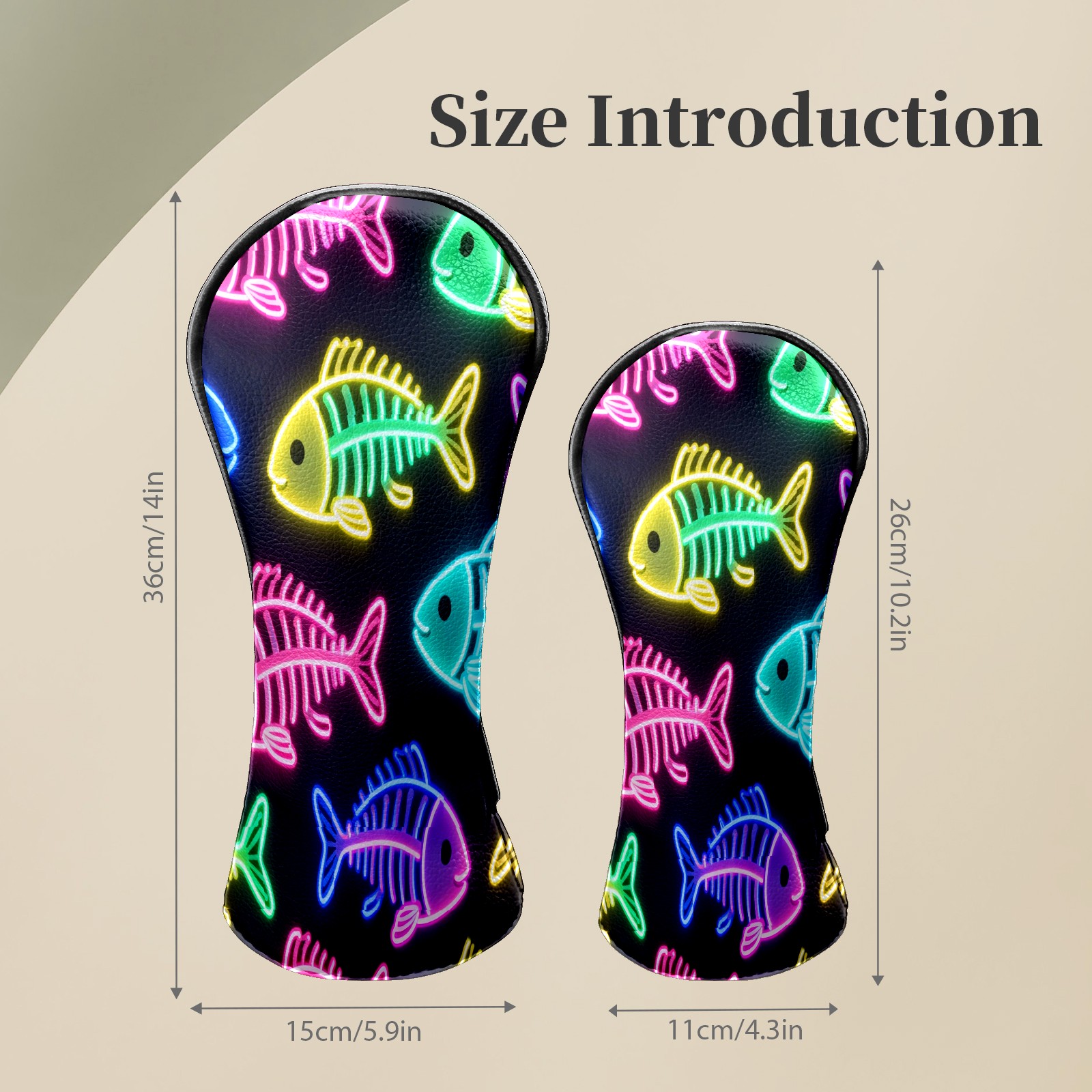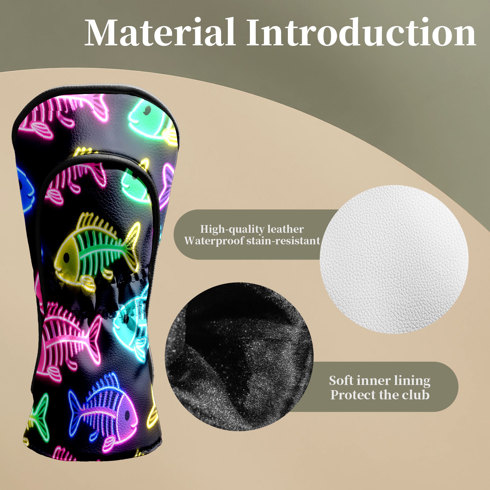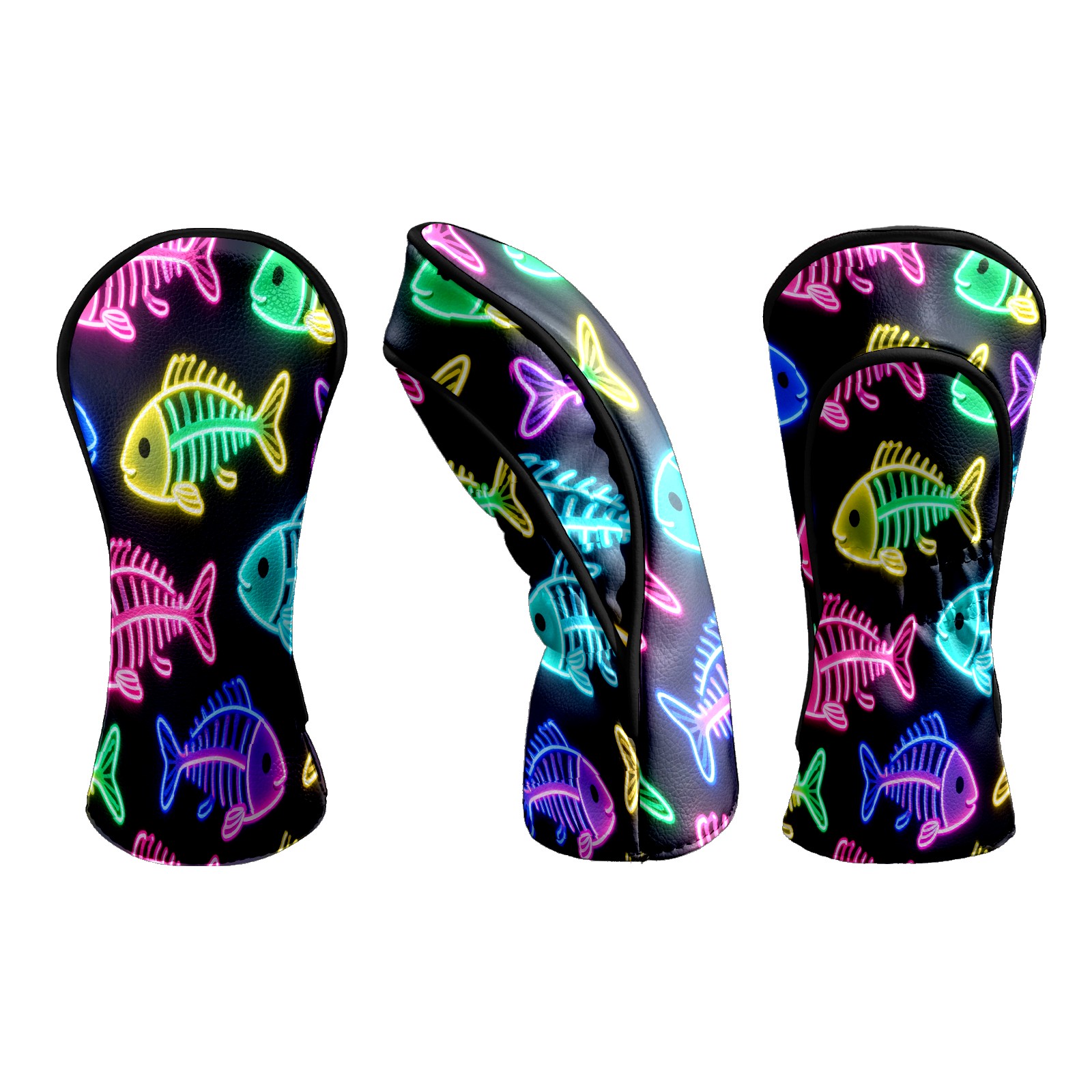 Golf Head Covers Leather Driver Head Cover, Premium Golf Club Covers with Soft Lining Fits Driver Hybrid Fairway 3/5 Wood for Women Men (Neon Fish)