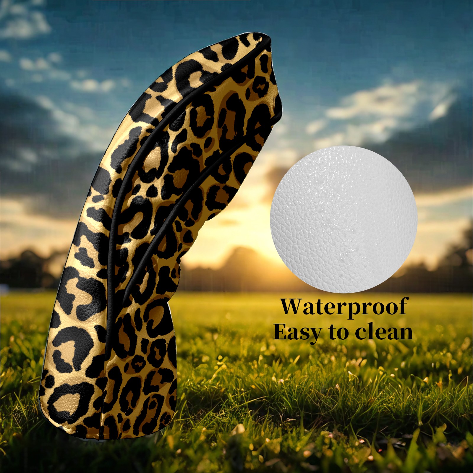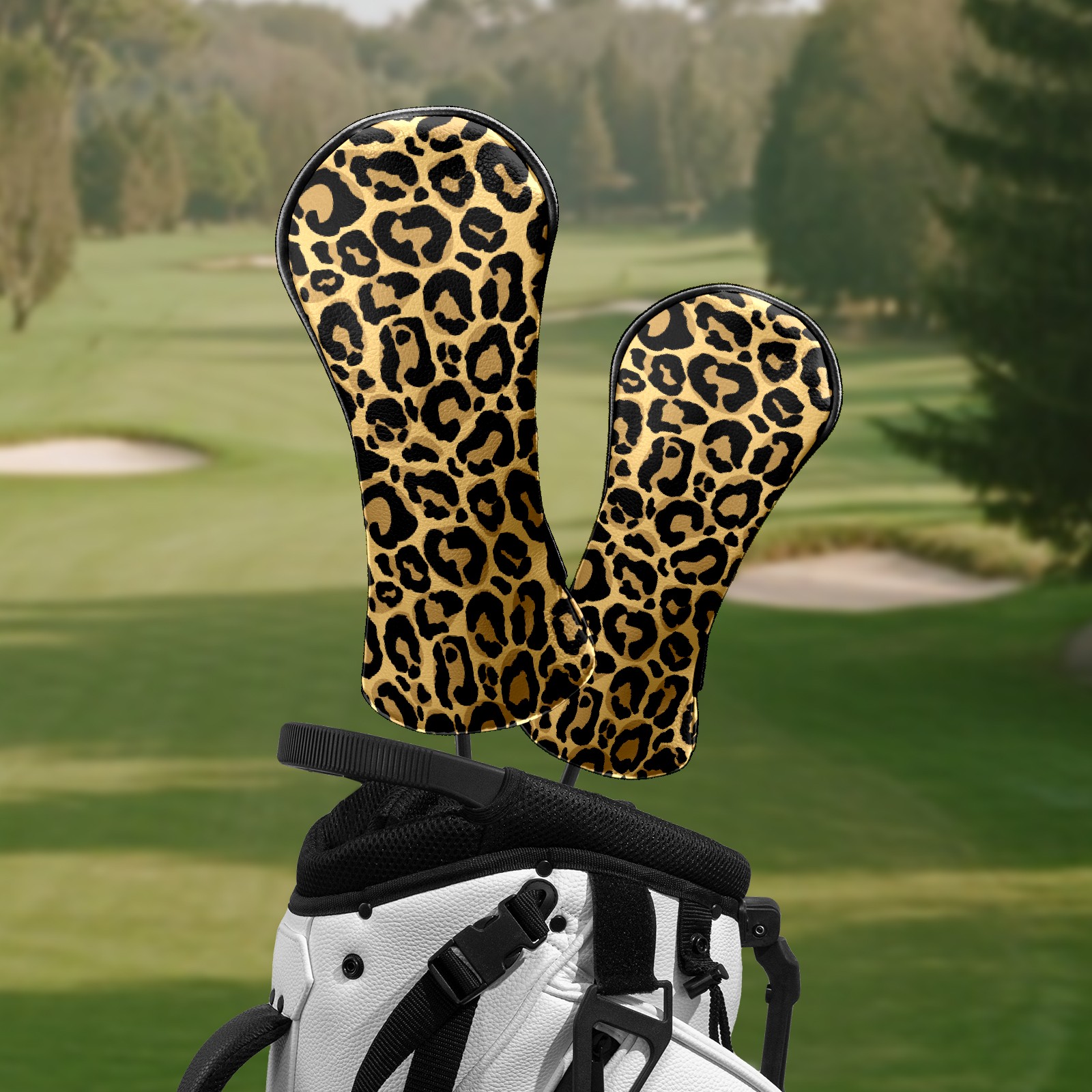 Golf Head Covers Leather Driver Head Cover, Premium Golf Club Covers with Soft Lining Fits Driver Hybrid Fairway 3/5 Wood for Women Men (Yellow Brown Leopard Print)
