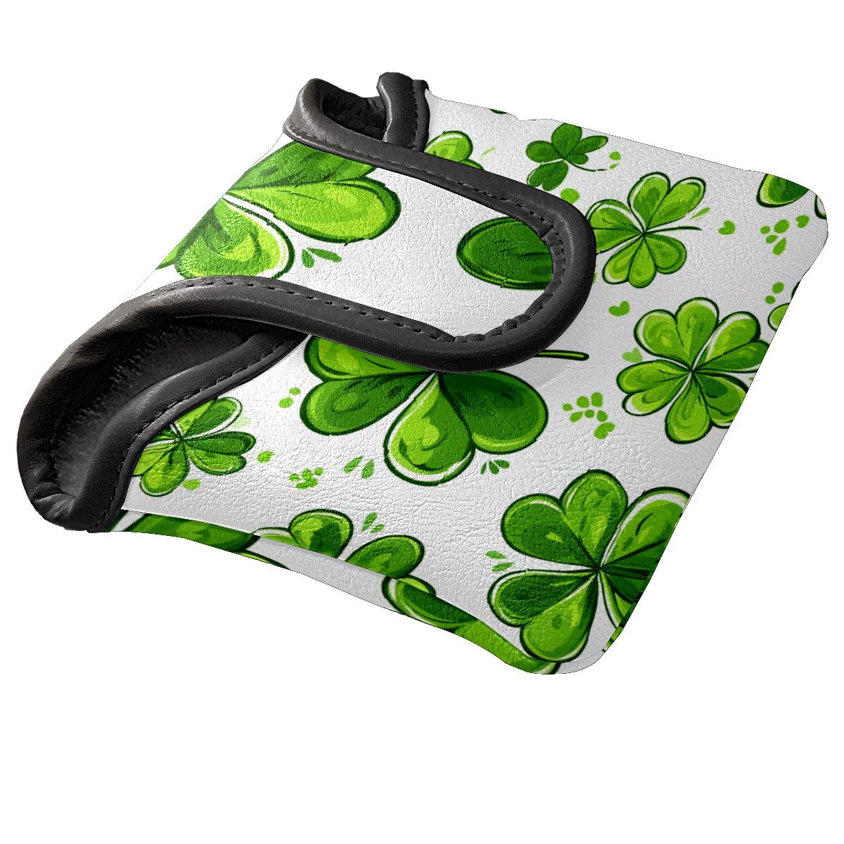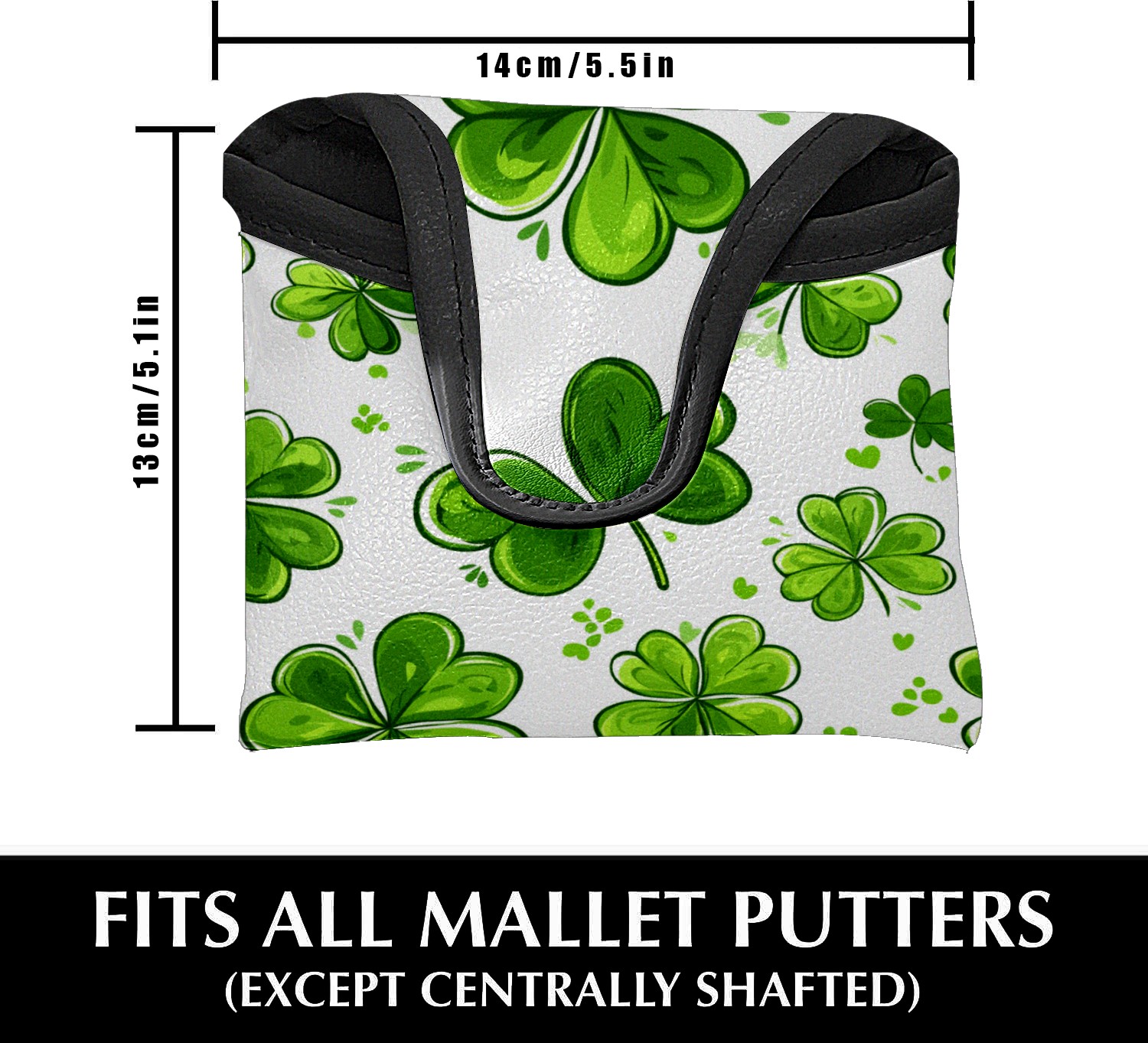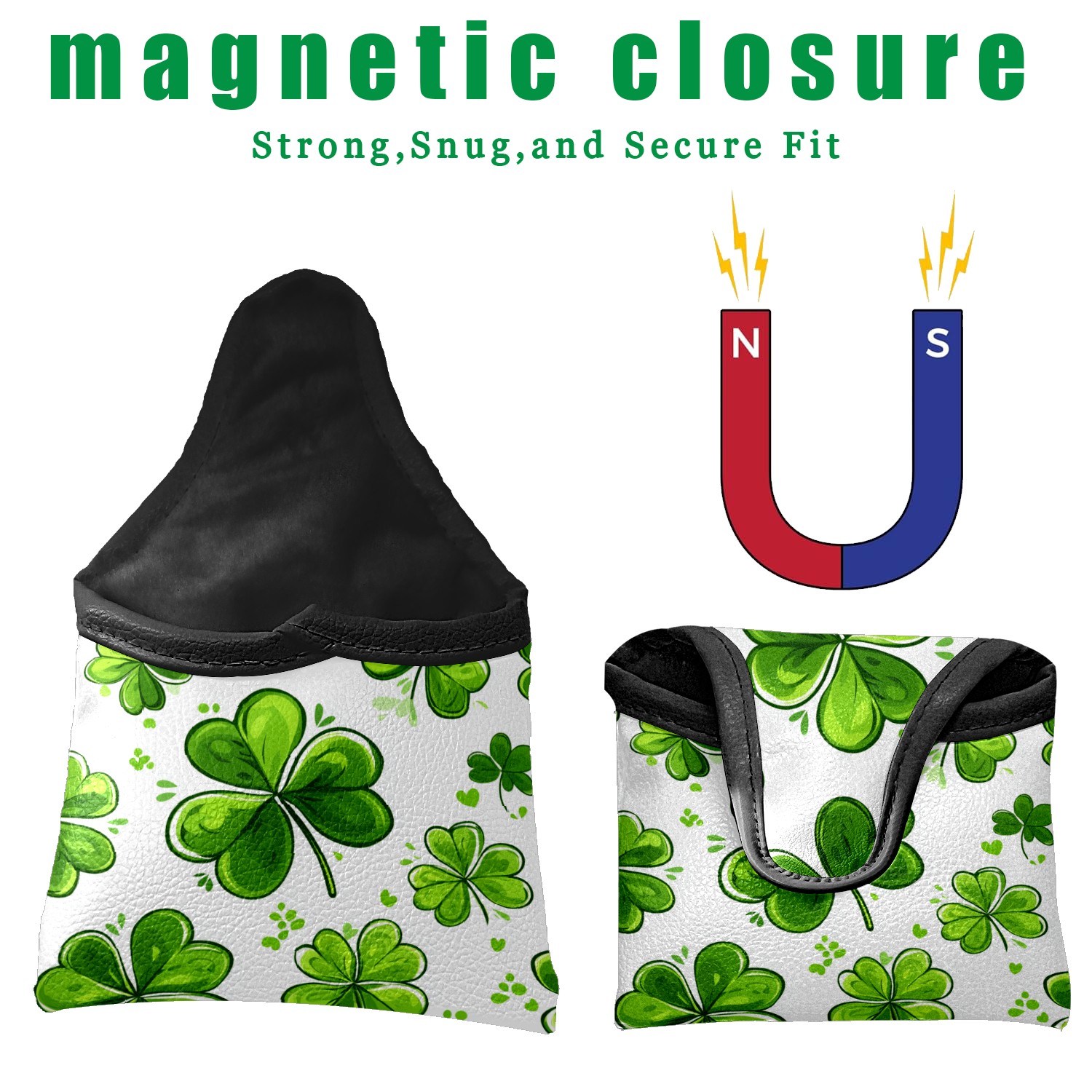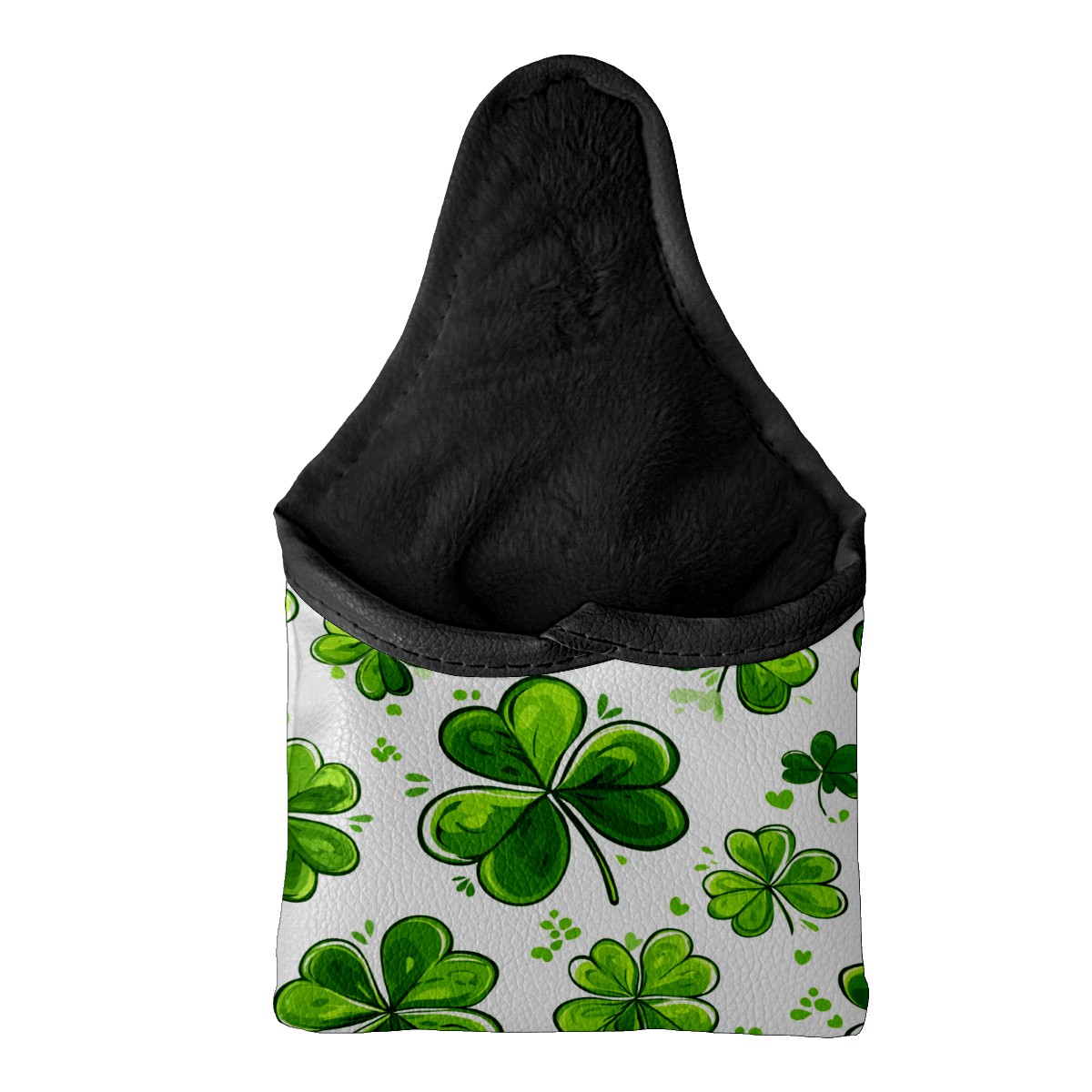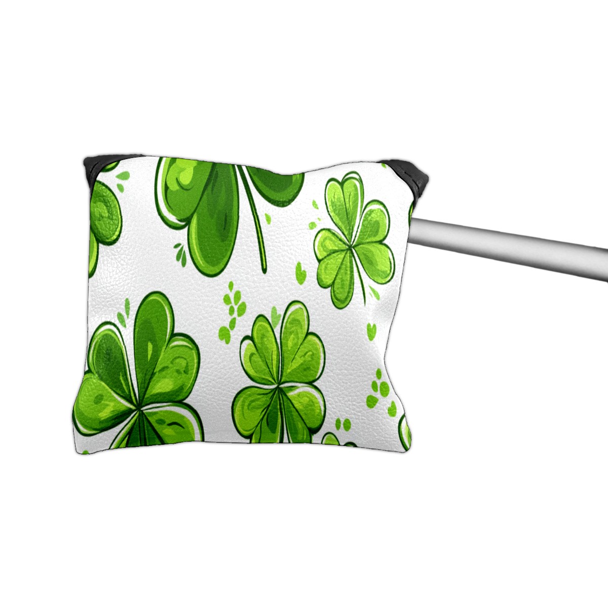 Mallet Putter Cover Magnetic Golf Headcovers PU Leather Waterproof Putter Club Head Covers Golf Protective Equipment with Velvet Lining Golf Club Covers for for Men Women Repeating Shamrock Pattern