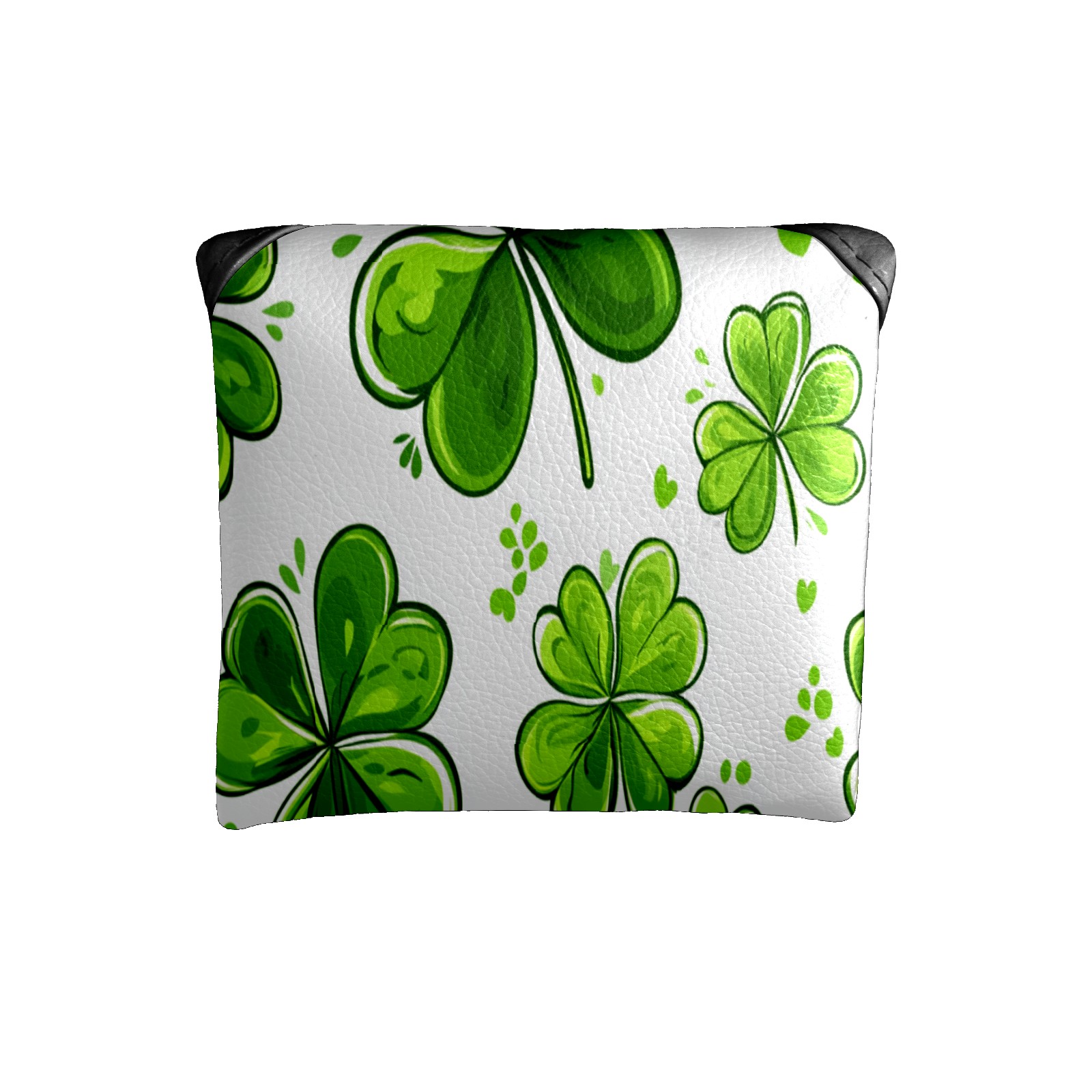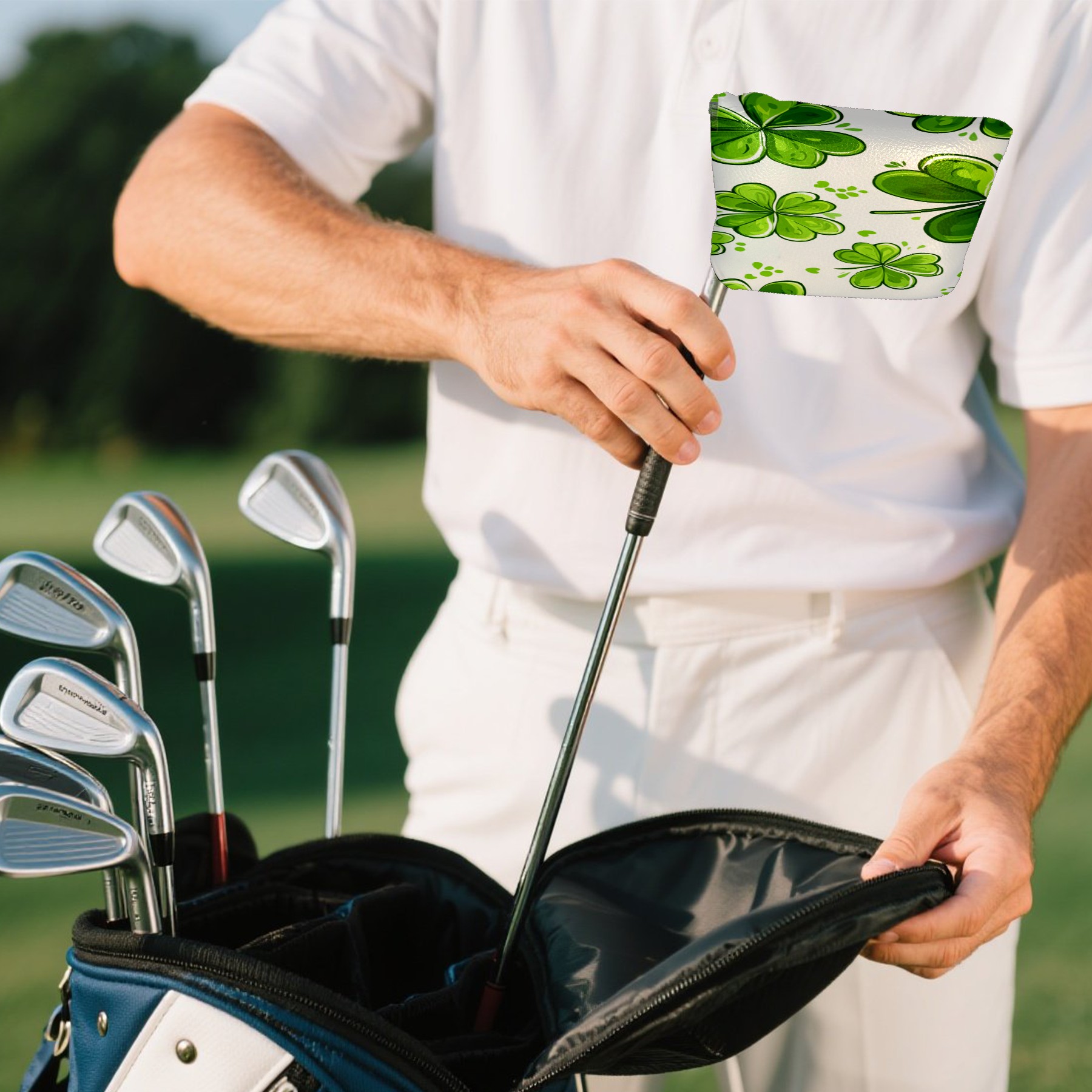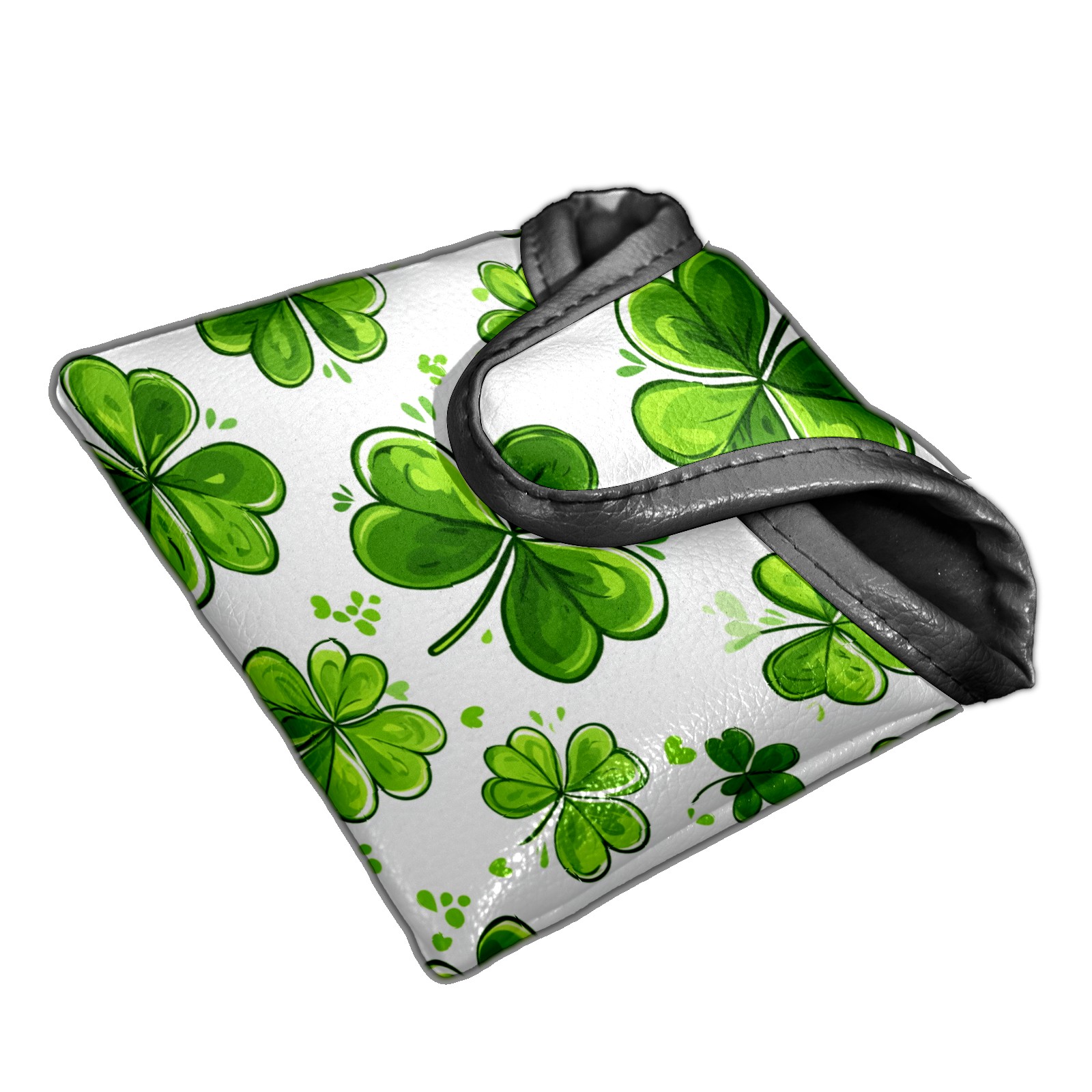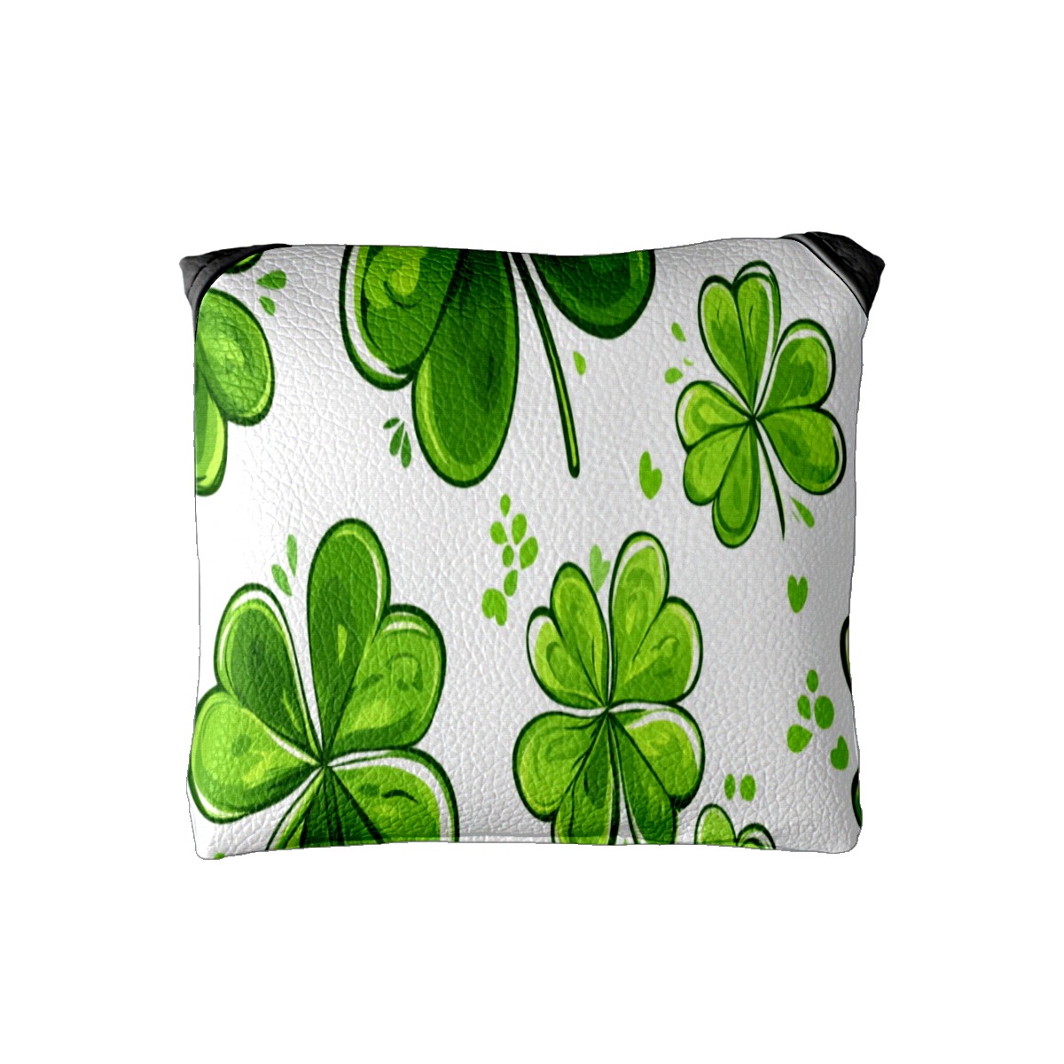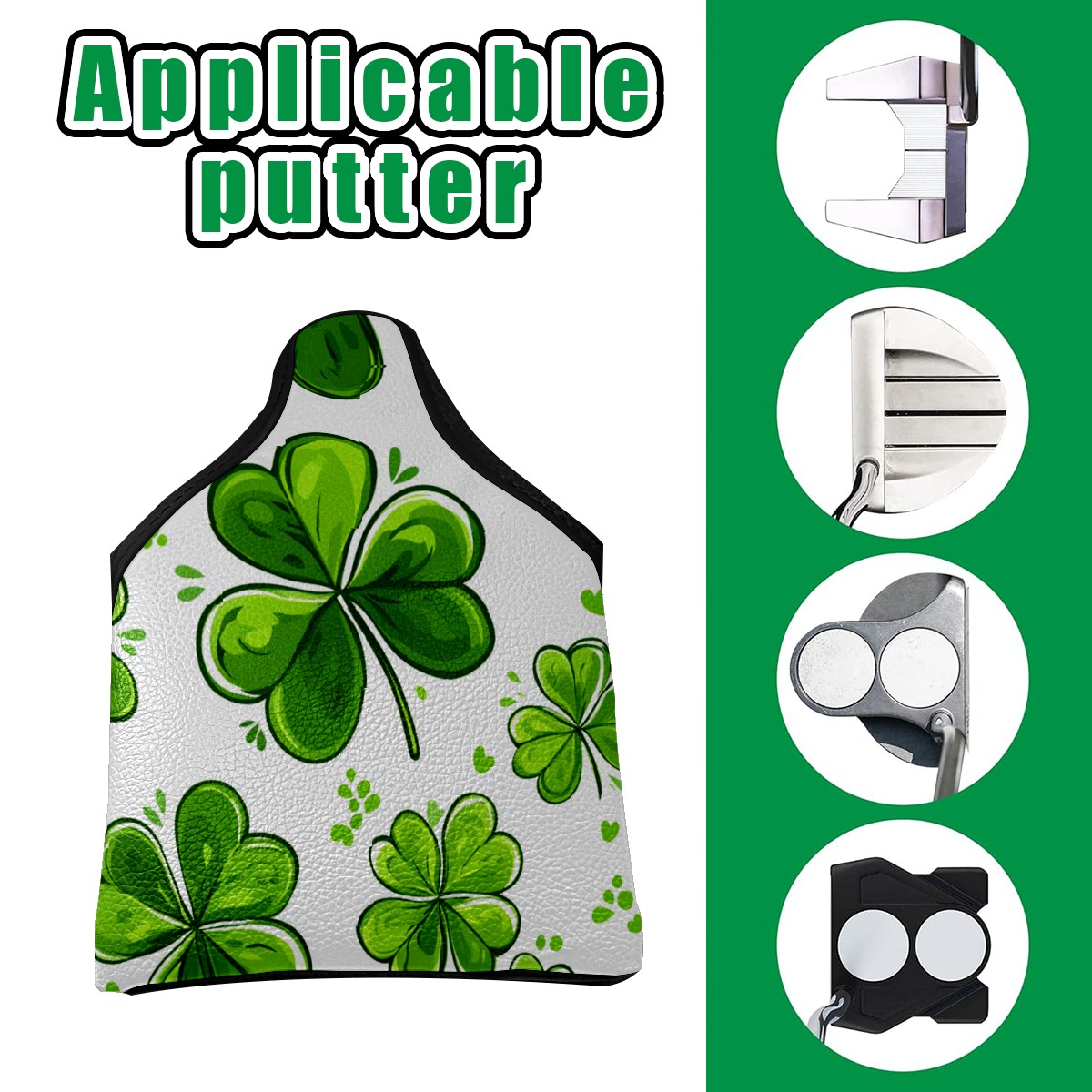 Mallet Putter Cover Magnetic Golf Headcovers PU Leather Waterproof Putter Club Head Covers Golf Protective Equipment with Velvet Lining Golf Club Covers for for Men Women Repeating Shamrock Pattern