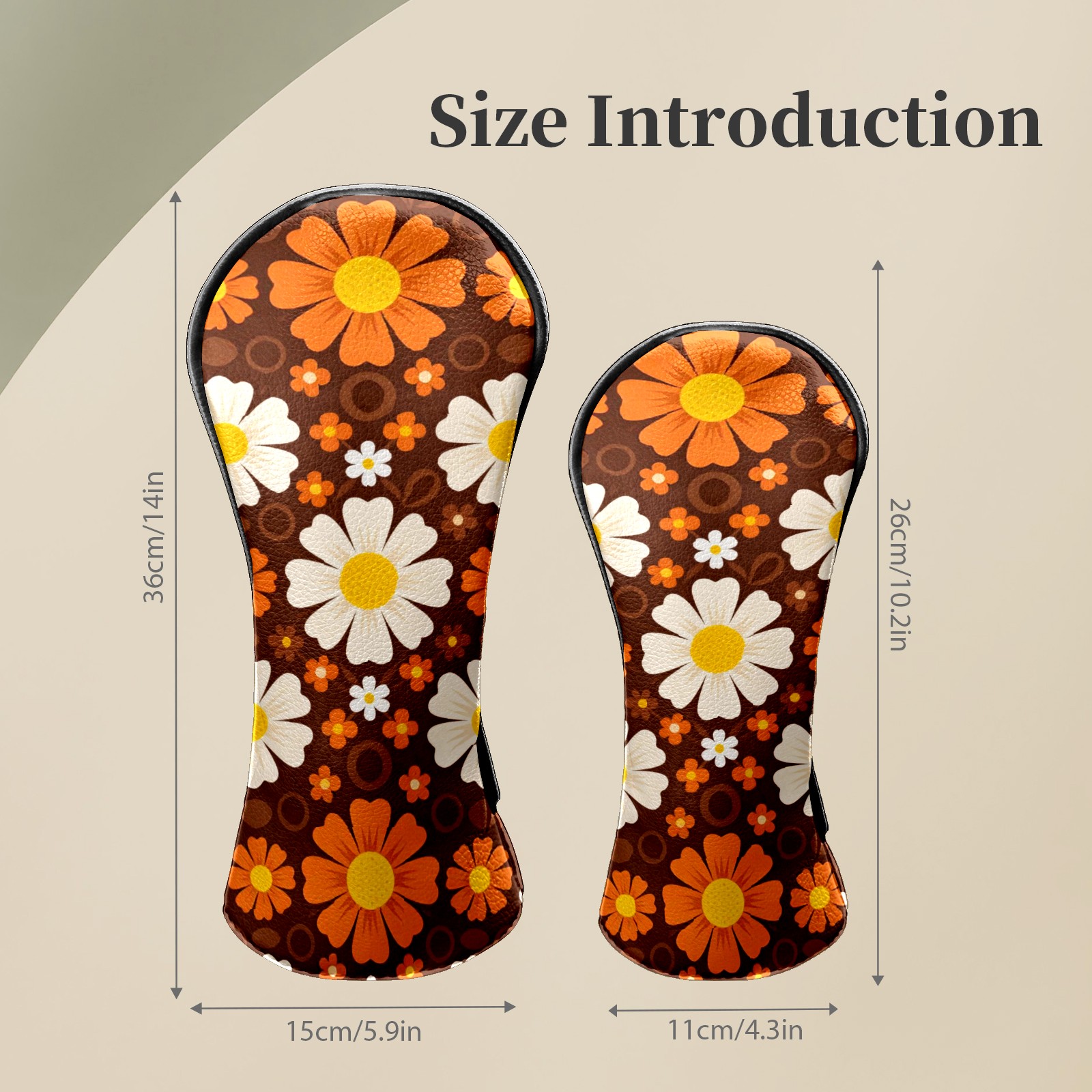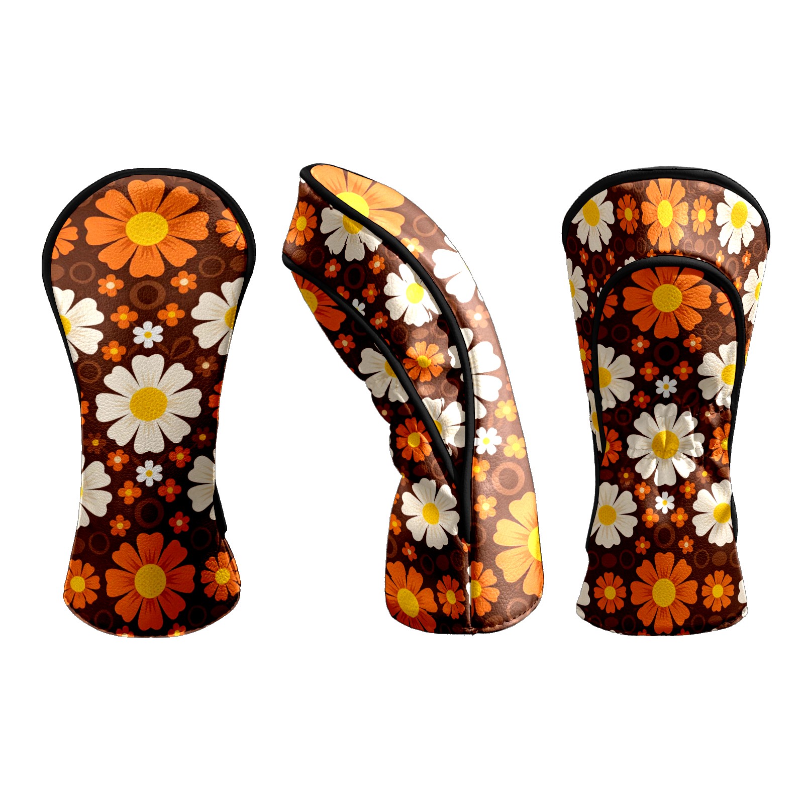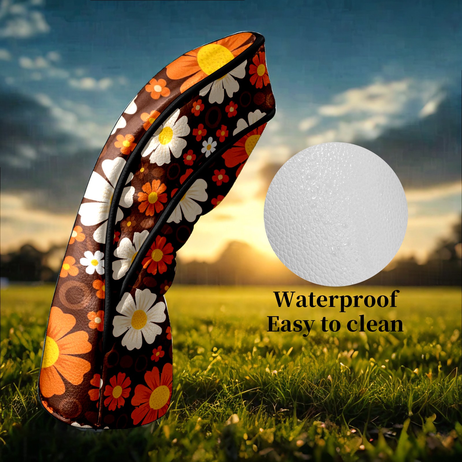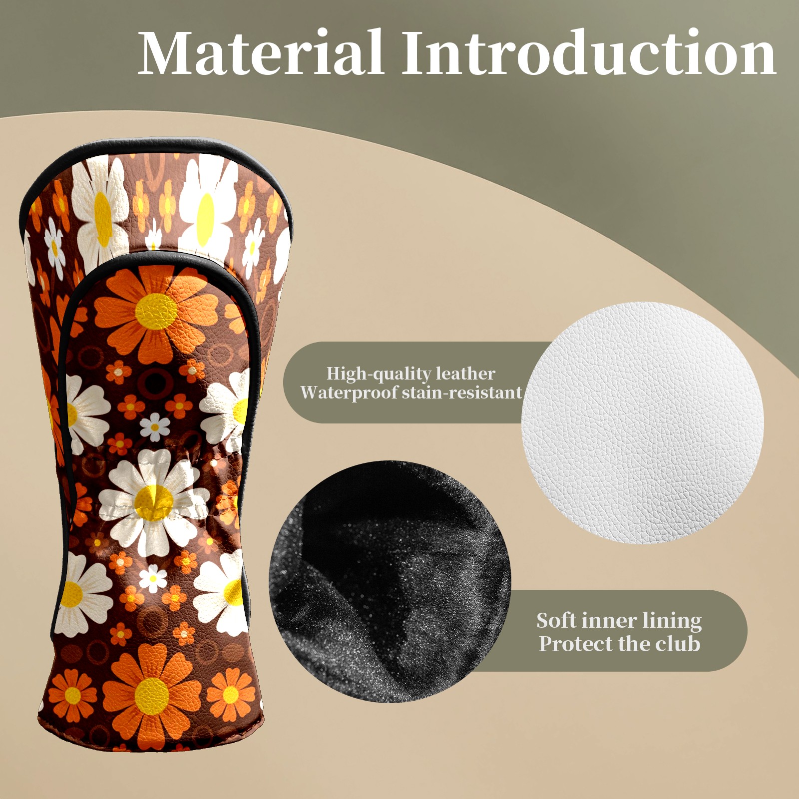 Golf Head Covers Leather Driver Head Cover, Premium Golf Club Covers with Soft Lining Fits Driver Hybrid Fairway 3/5 Wood for Women Men (Vintage Daisy Flowers)