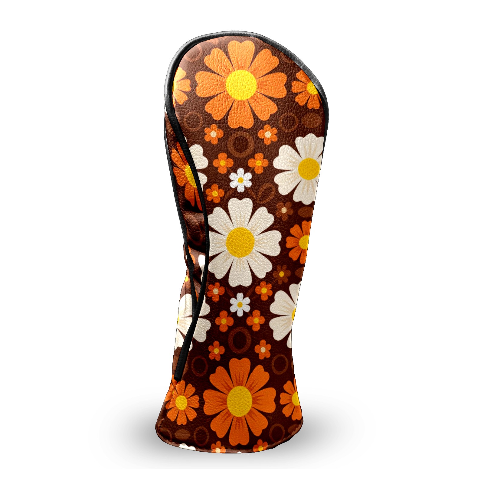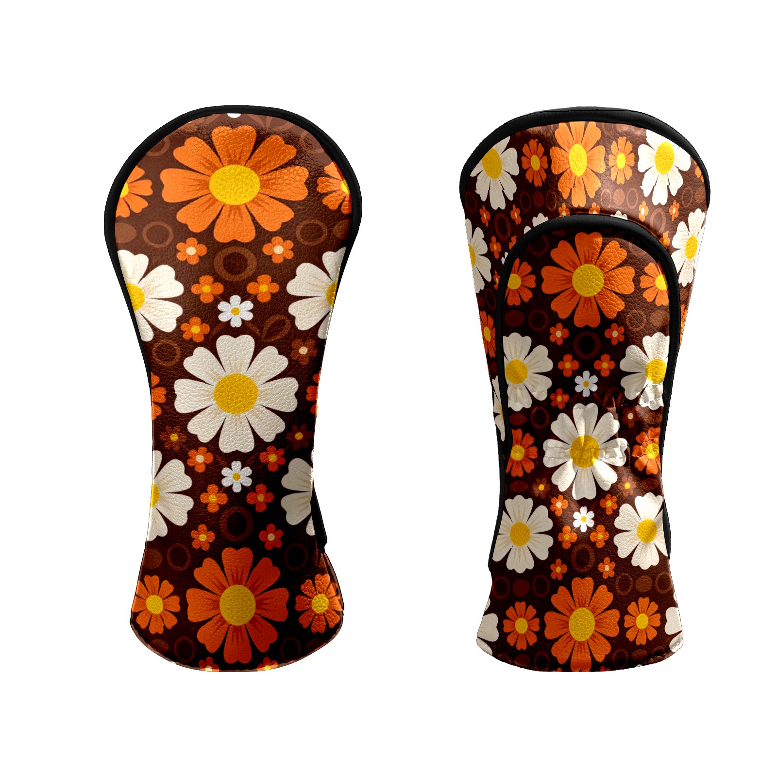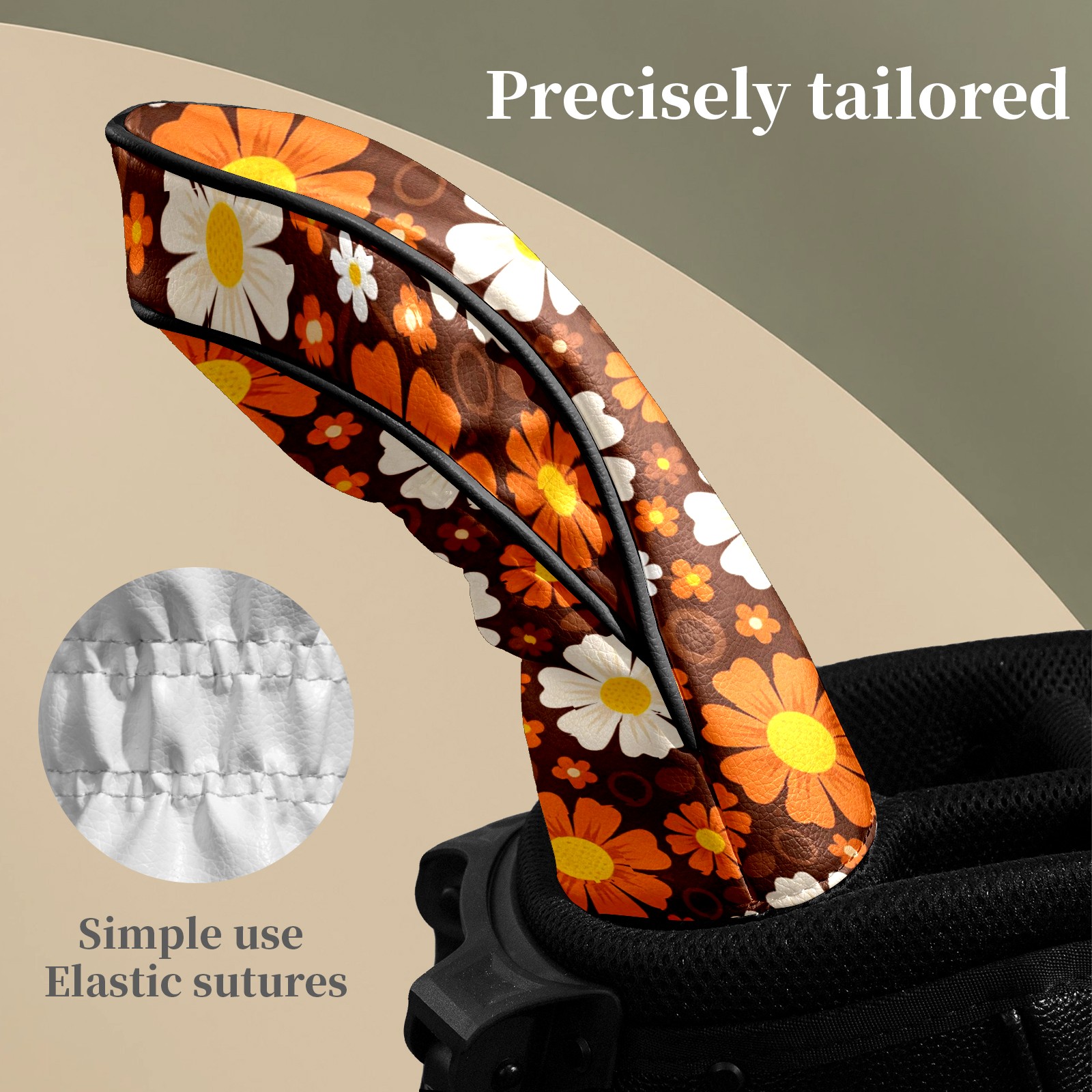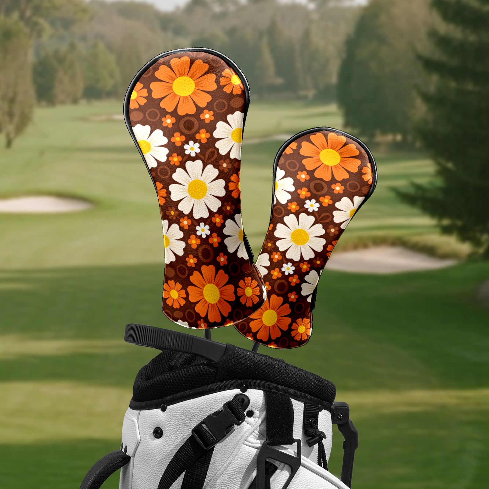 Golf Head Covers Leather Driver Head Cover, Premium Golf Club Covers with Soft Lining Fits Driver Hybrid Fairway 3/5 Wood for Women Men (Vintage Daisy Flowers)
