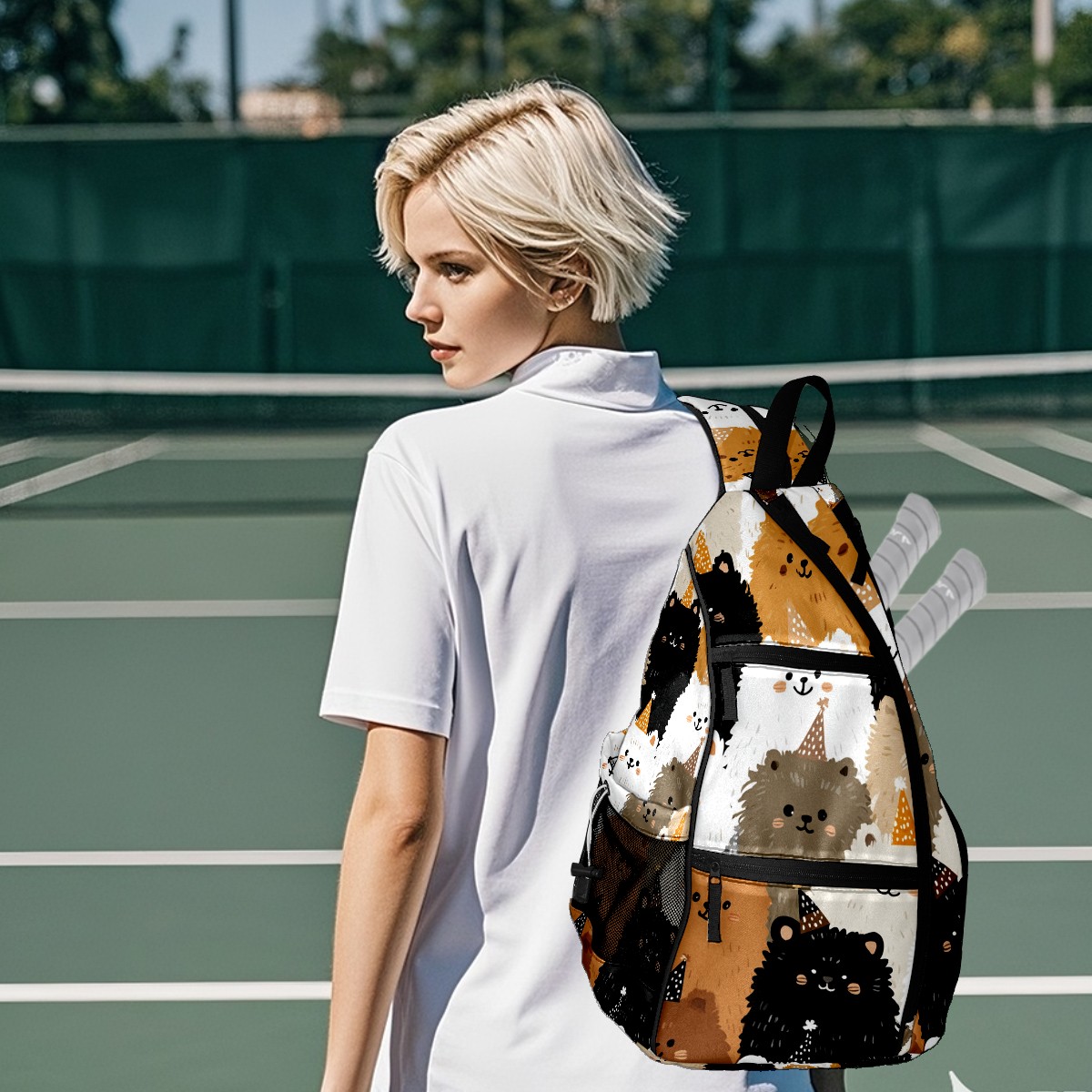 Pickleball Backpack Cute Cat Multi for Women Men - Multi-Pocket Sports Bag with Shoe Compartment | Versatile Tennis Bag & Gifts for Pickleball Lovers