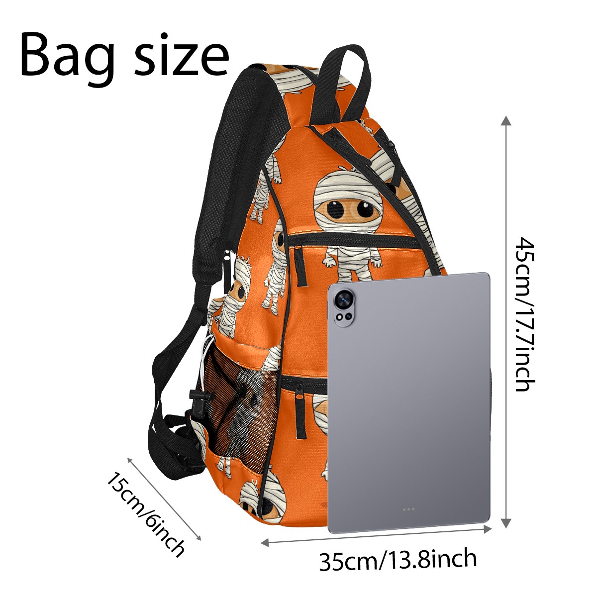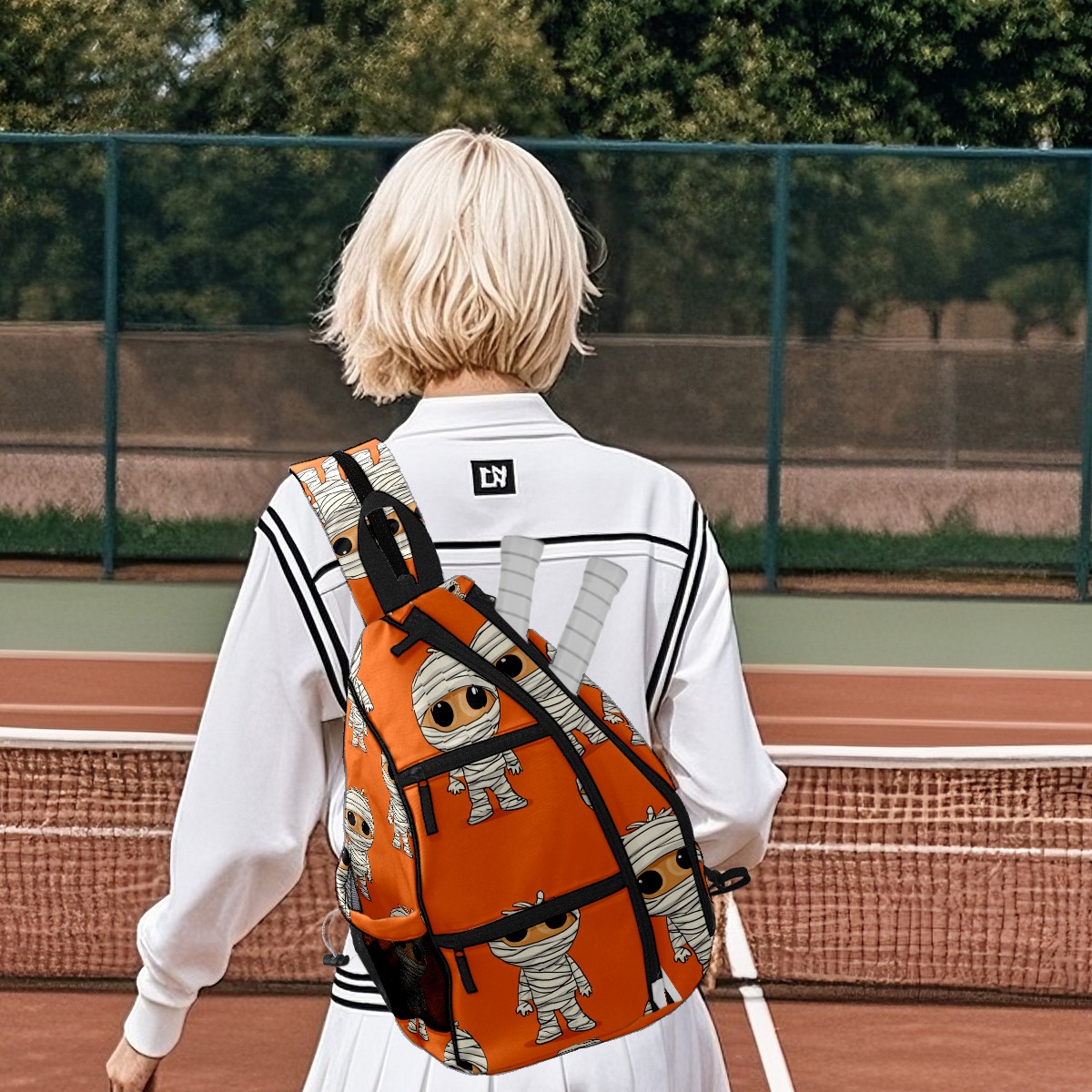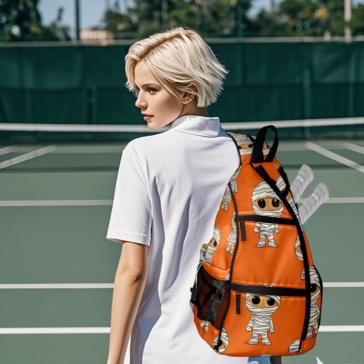 Pickleball Backpack Funny Mummy Orange for Women Men - Multi-Pocket Sports Bag with Shoe Compartment | Versatile Tennis Bag & Gifts for Pickleball Lovers