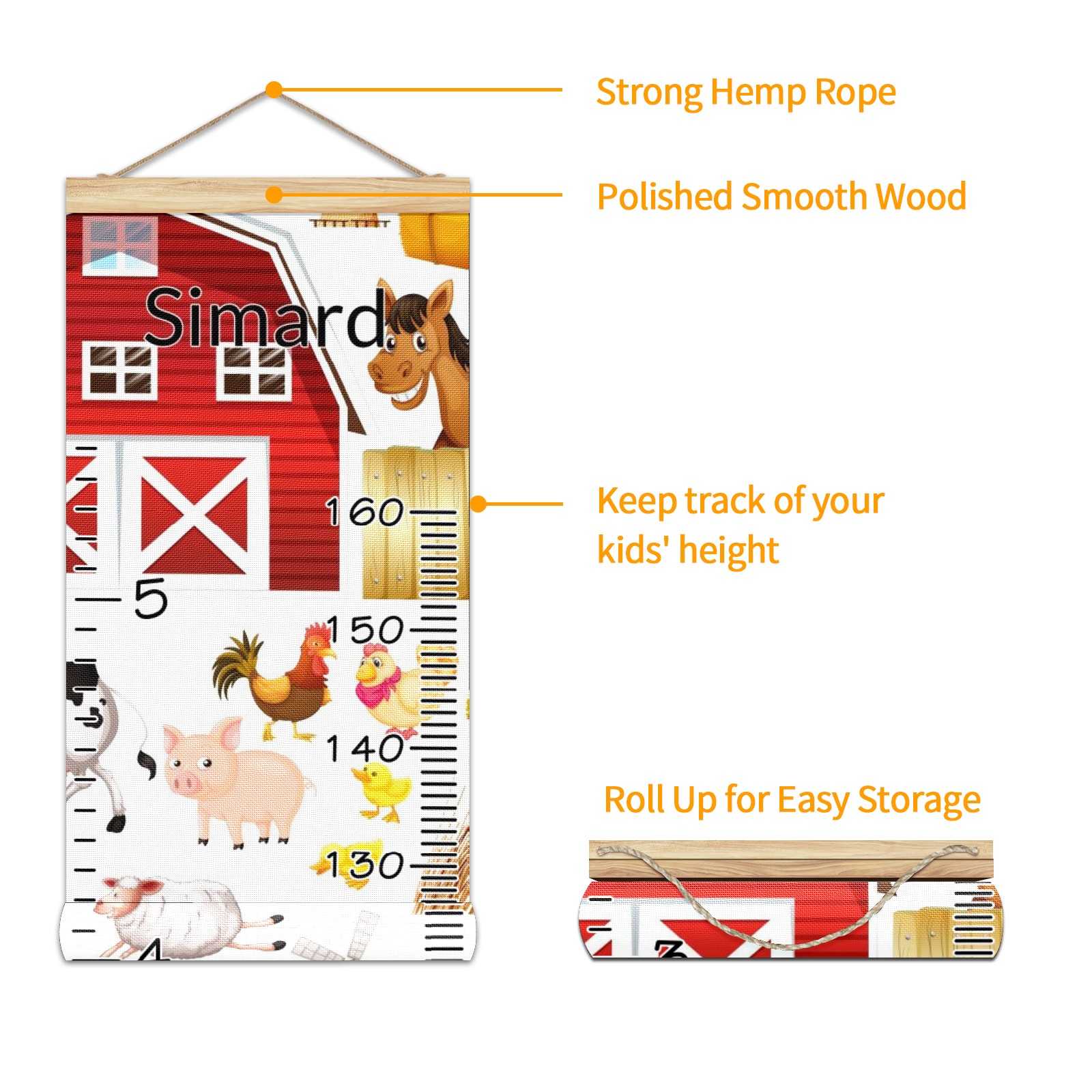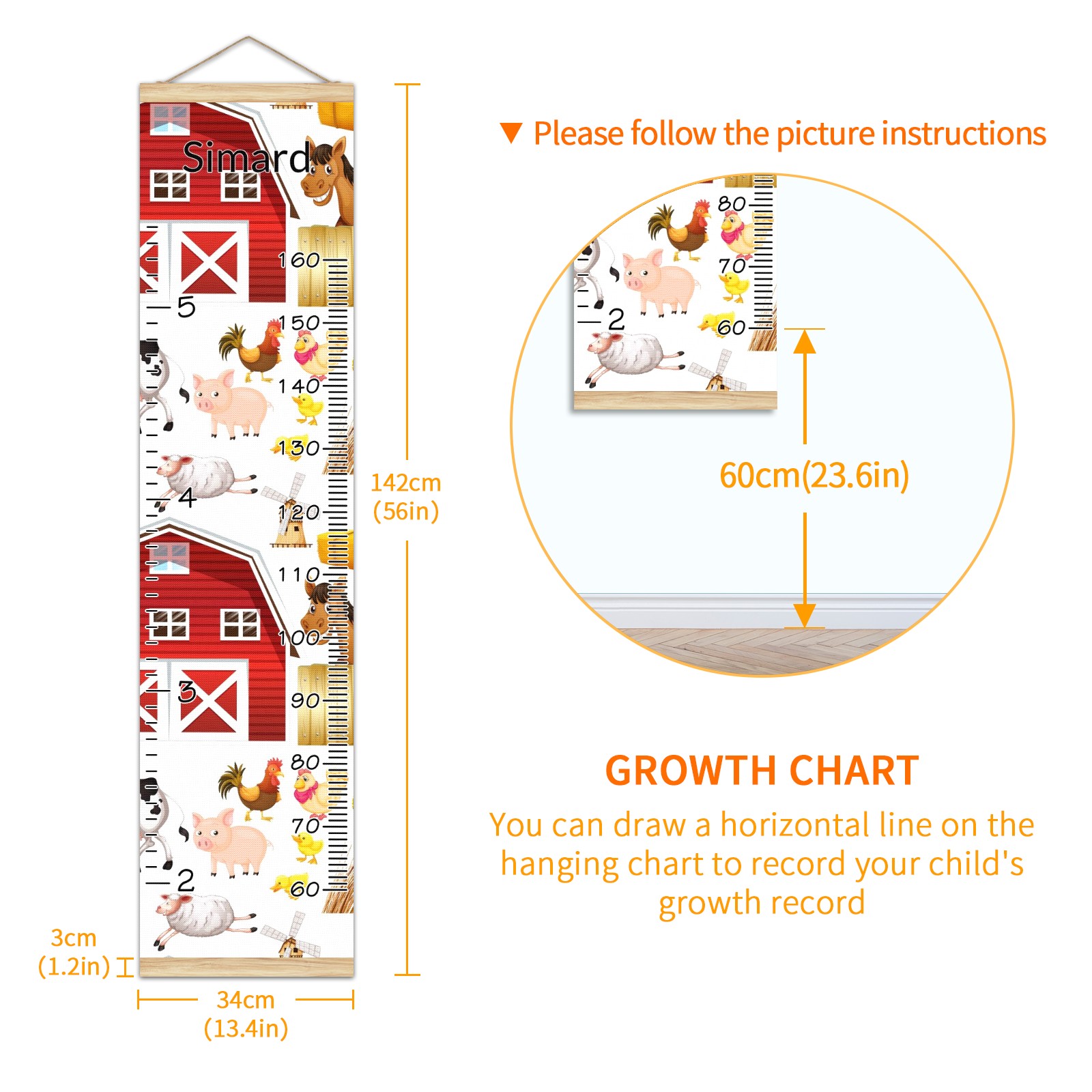 <p><b>Features:</b></p> <p>Rope for Hanging</p> <p>Material: Linen + Wood</p> <p>Dimensions: 13.4x56 inches</p> <p>Package Included: 1 * Baby Growth Chart</p> <p><b>Baby height growth chart can be used anywhere</b></p> <p>Ideal for kids nursery decoration, kids bedroom, interior walls or windows, playroom, living room, homedecoration.Add name and make the growth chart special!</p> <p><b>Easy to fold and carry</b></p> <p>With rope at the top of the growth chart, it is easy to install and remove.You can fold it and unfold any time any where.</p> <p><b>Perfect Gift Idea for Kids</b></p> <p>Environmental and non-toxic for kids use, it must be a perfect gift for baby, kids, girls, and boys.This is a best choice for your friend who have kids or baby as a popular gift.</p> <p><b>Easy to read</b></p> <p>Measurement accrate with 2 scales, Centimeters and feet. The letters are big enough, very easy to read.</p> <p><b>60cm(23.6inch) Over Ground Design</b></p> <p>Not only can protect from dust and other damage, but also will not interfere in floor cleaning.</p>