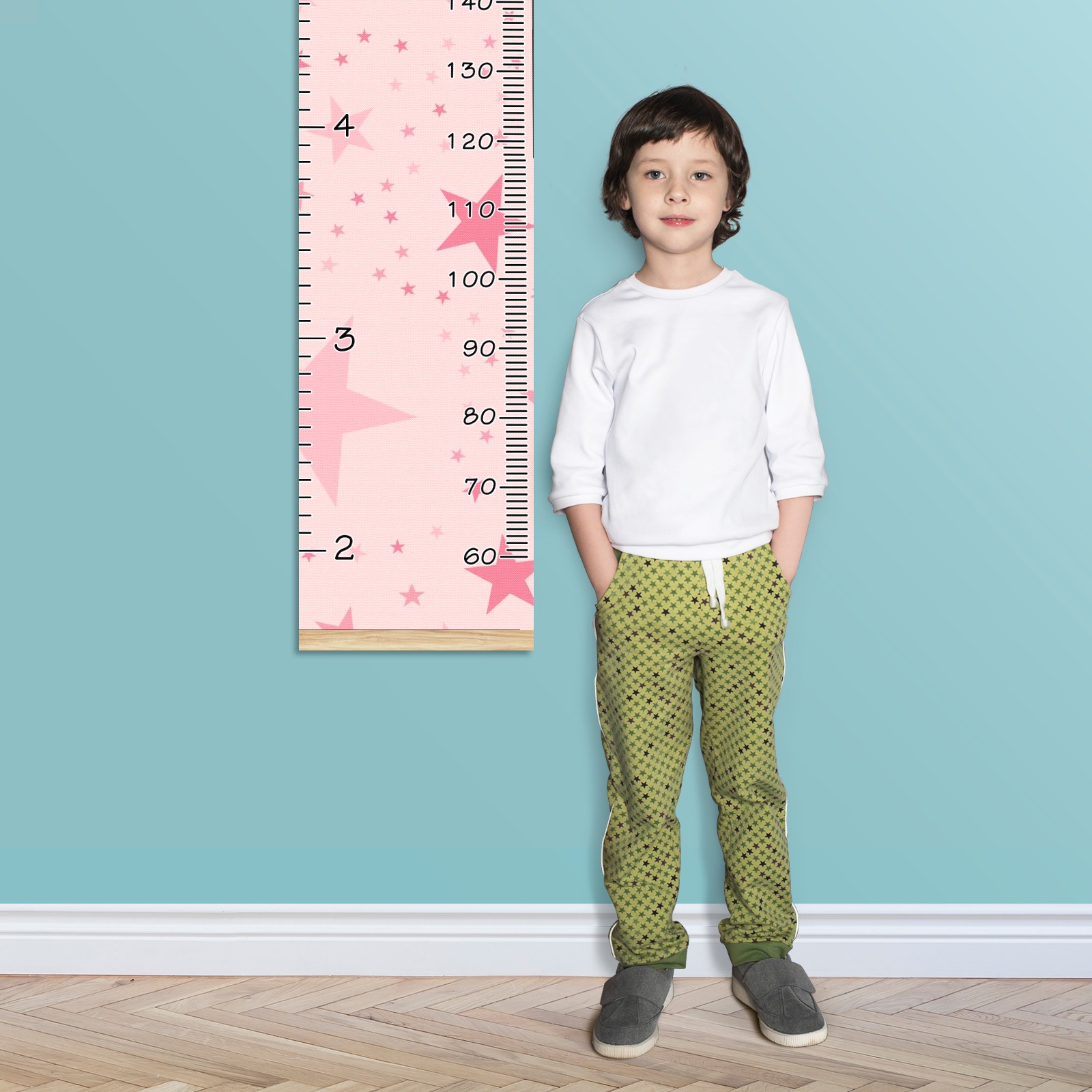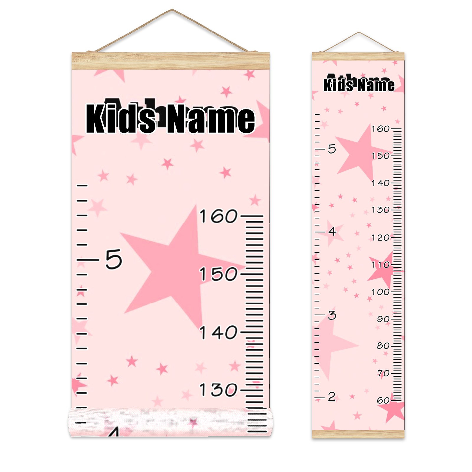 Personalized Kids Name Growth Chart Ruler for Wall Wood Frame Canvas Height Measure Chart 13.4x56 in Hanging Growth Chart Pink Stars12.16 Boys Girls Room Decor