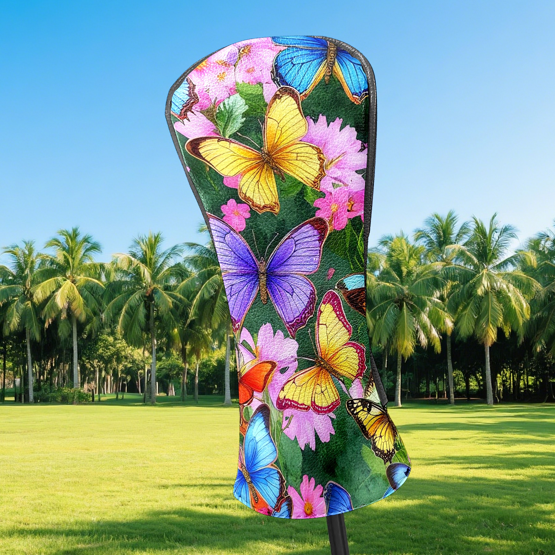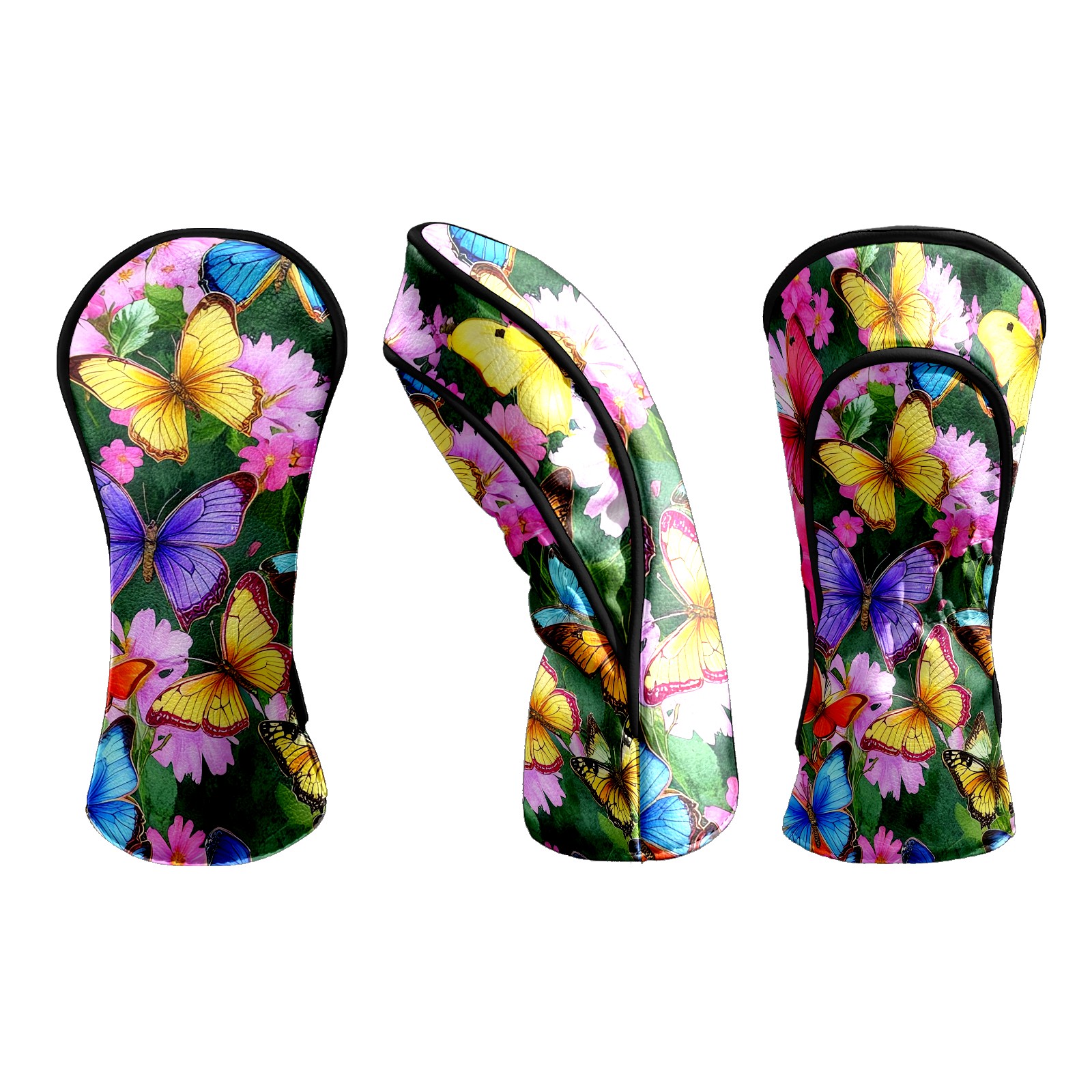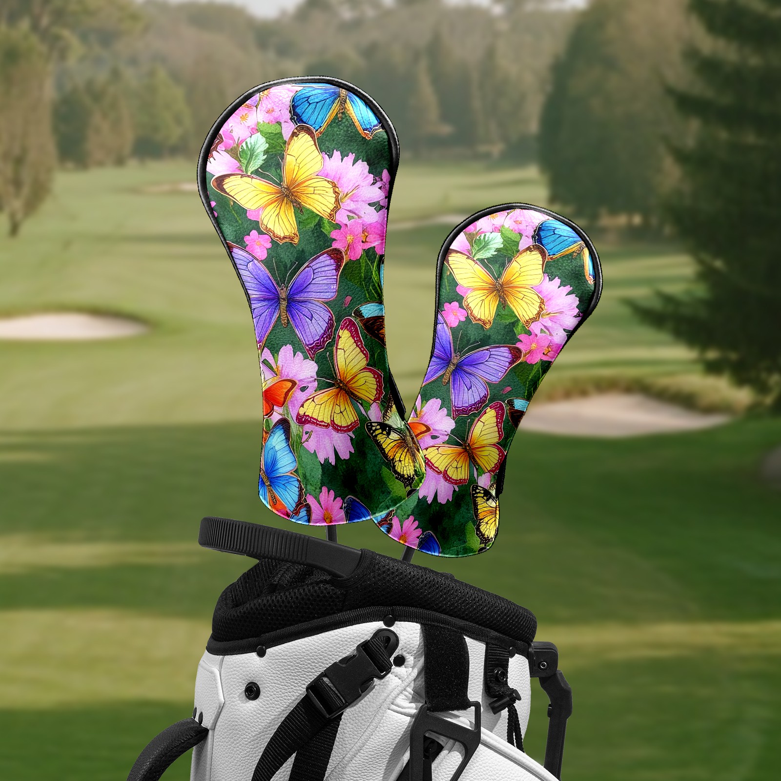 Golf Head Covers Leather Driver Head Cover, Premium Golf Club Covers with Soft Lining Fits Driver Hybrid Fairway 3/5 Wood for Women Men (Butterflies (2) (1))
