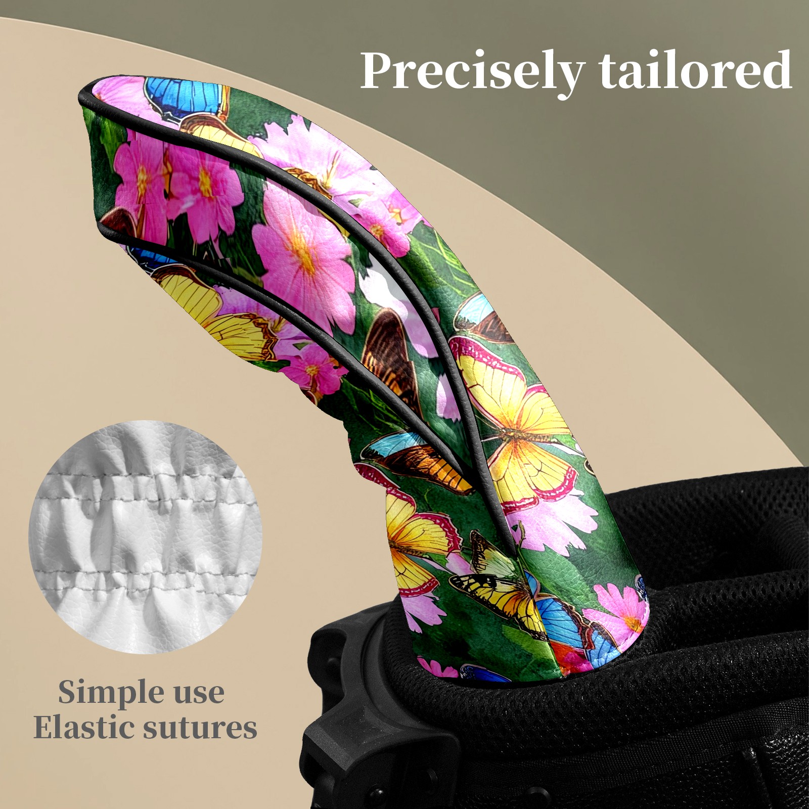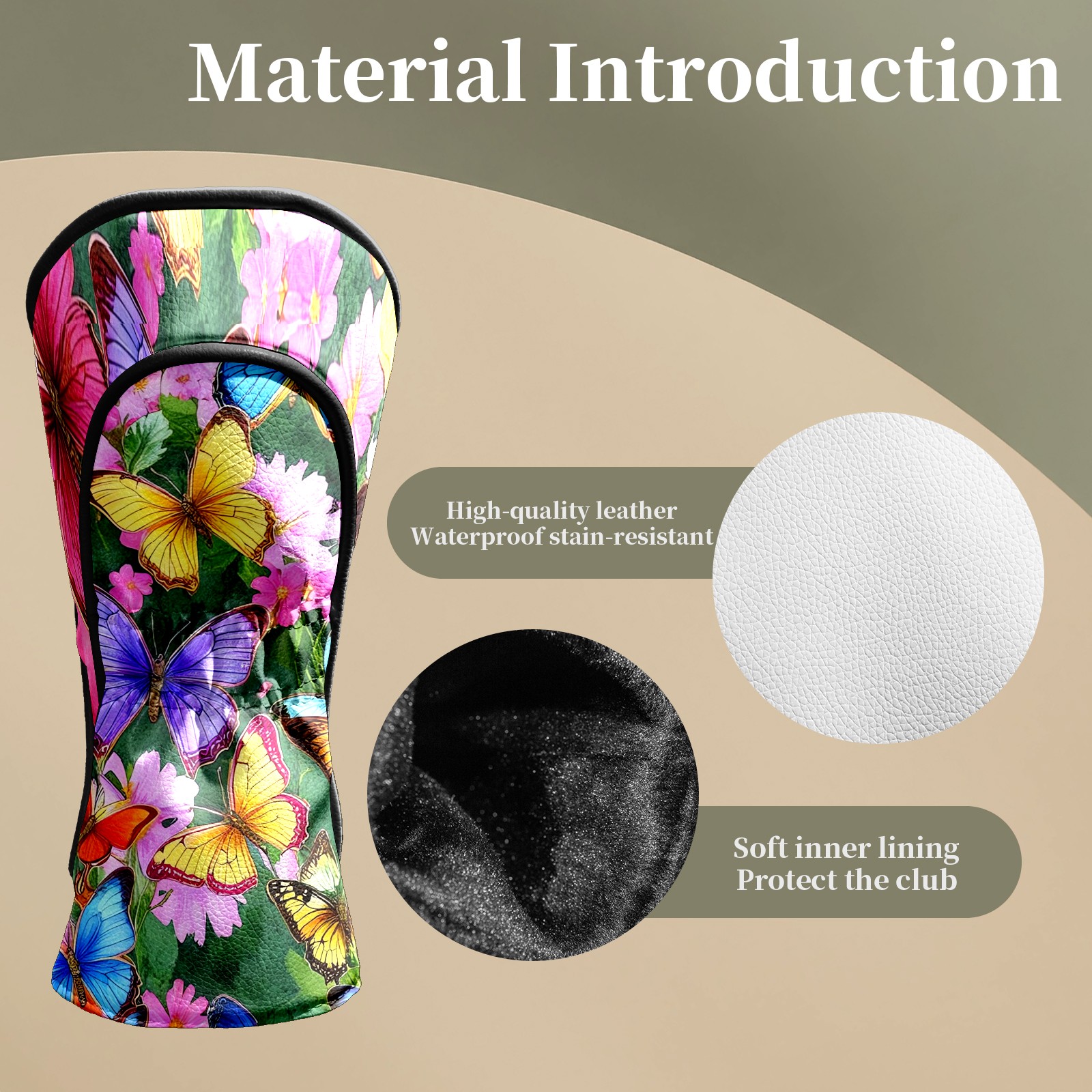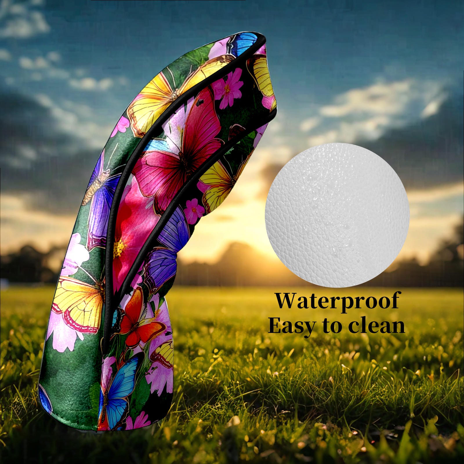 Golf Head Covers Leather Driver Head Cover, Premium Golf Club Covers with Soft Lining Fits Driver Hybrid Fairway 3/5 Wood for Women Men (Butterflies (2) (1))