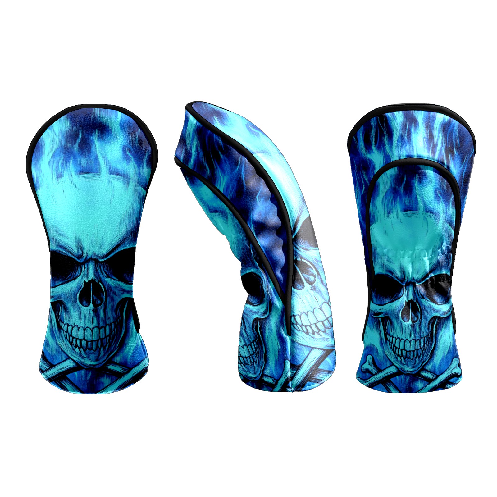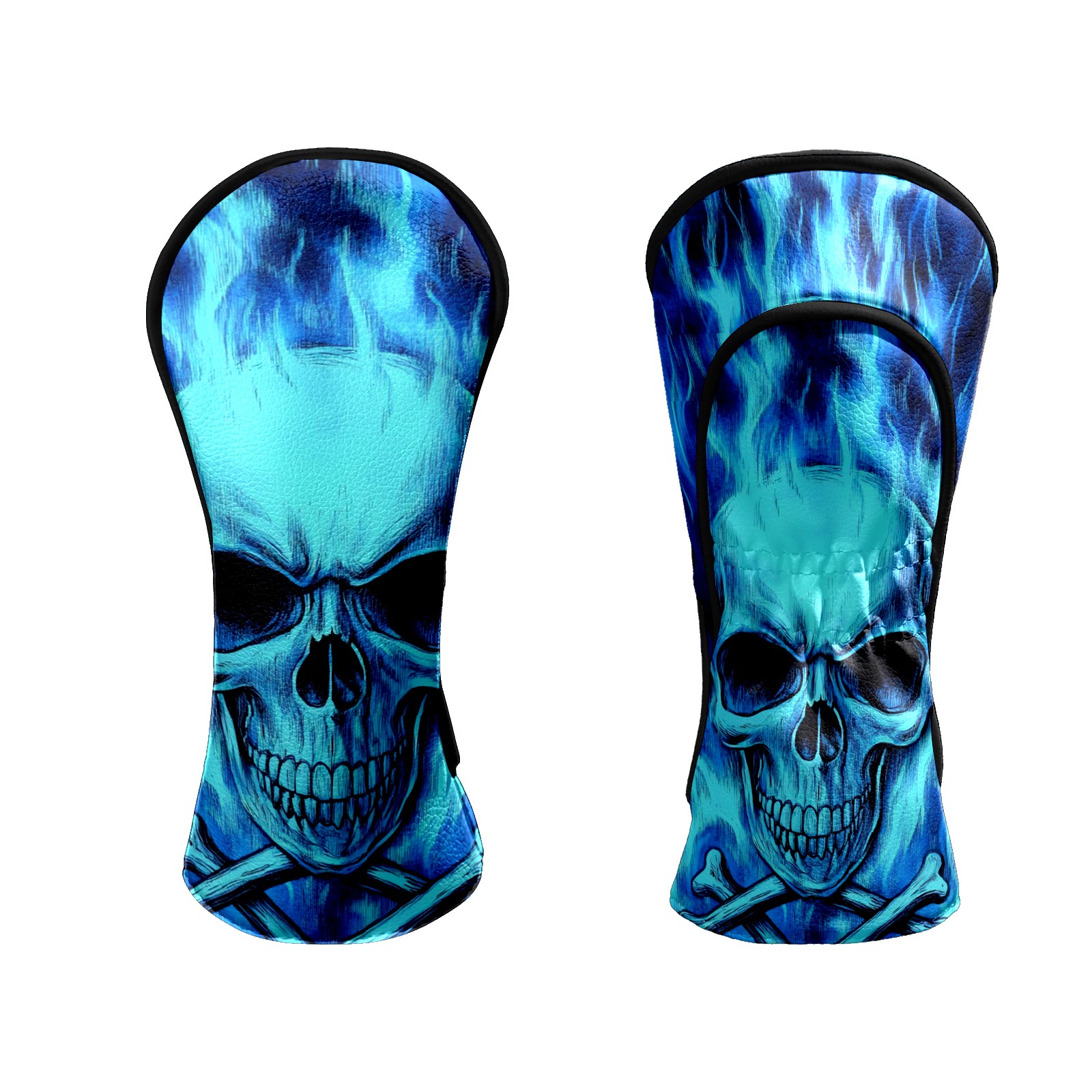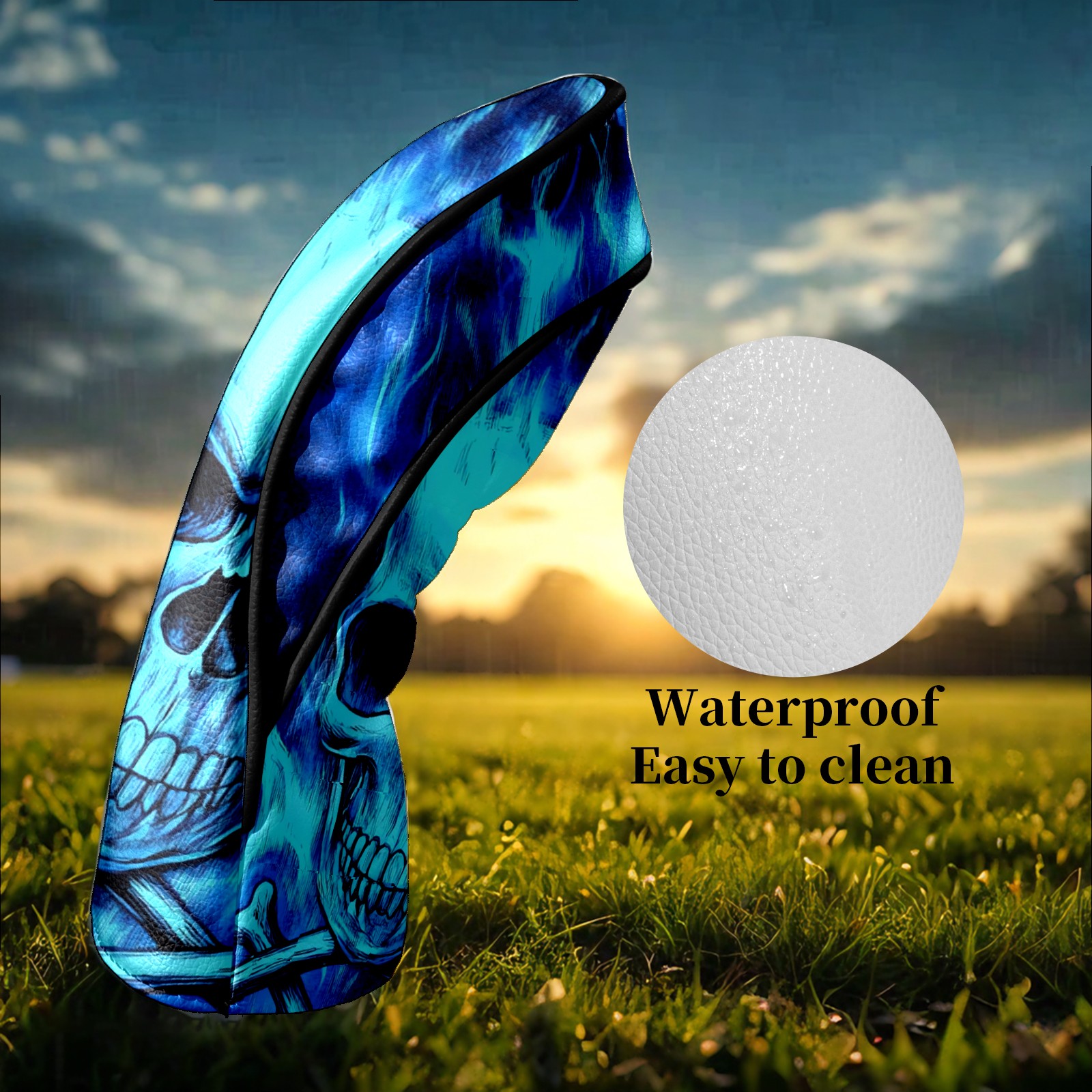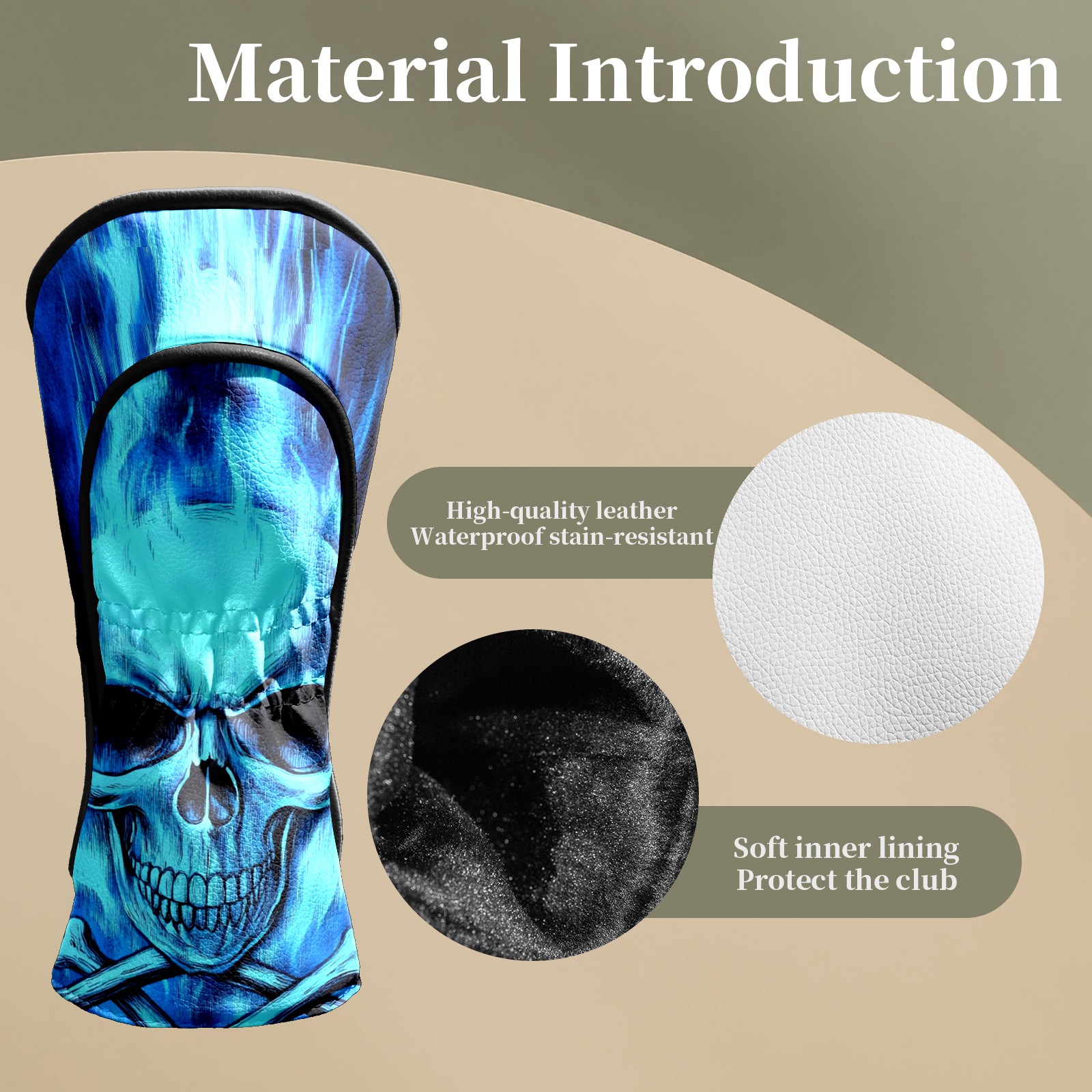 Golf Head Covers Leather Driver Head Cover, Premium Golf Club Covers with Soft Lining Fits Driver Hybrid Fairway 3/5 Wood for Women Men (Skull Blue Flame (1))