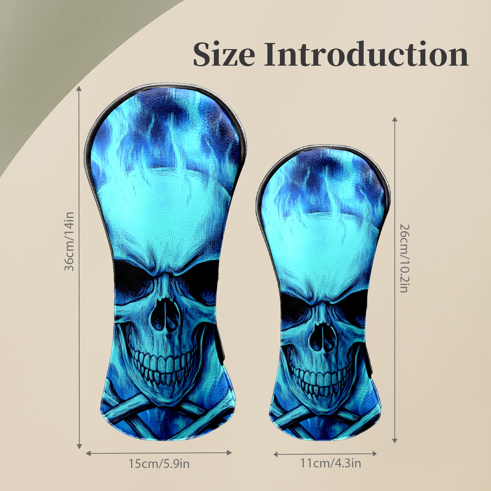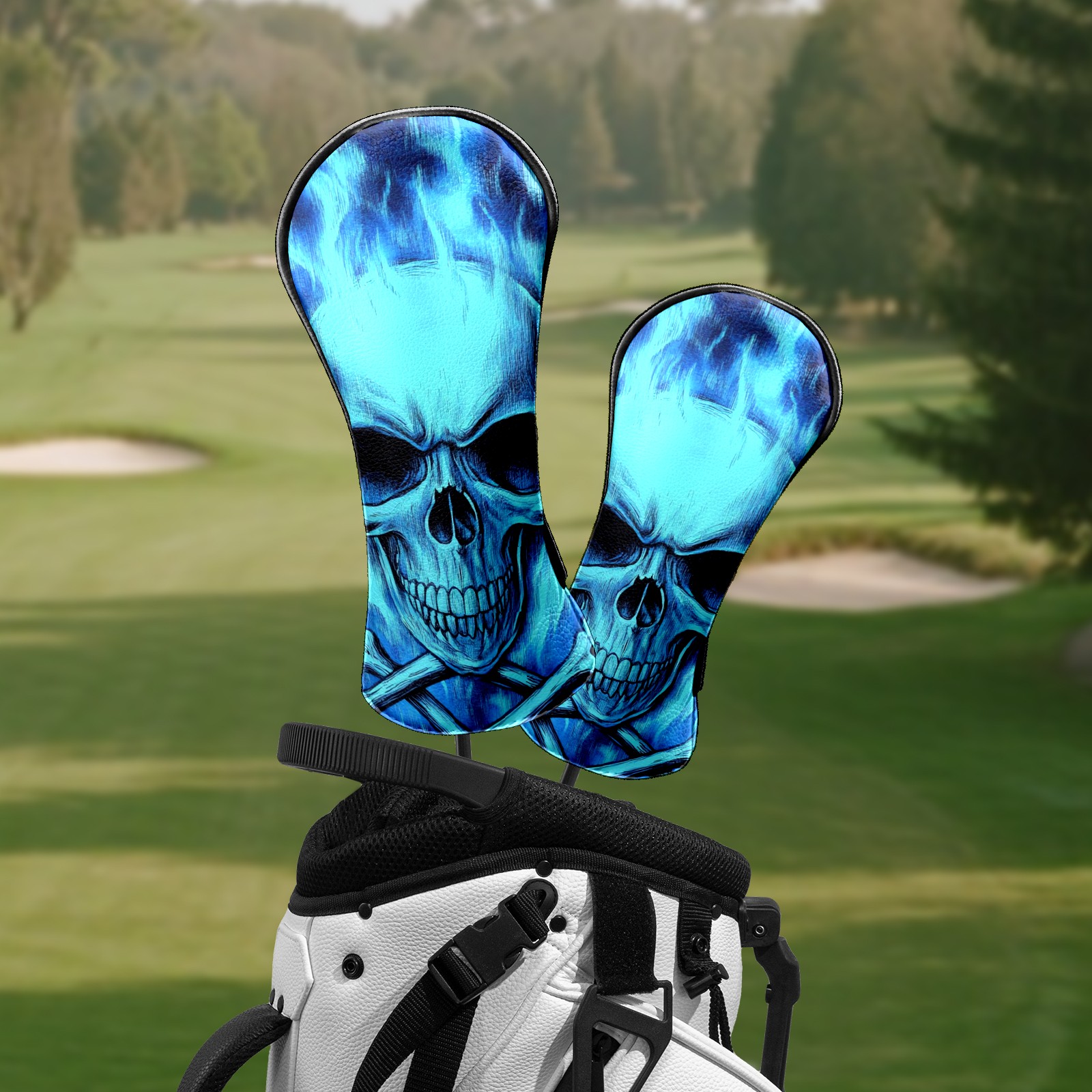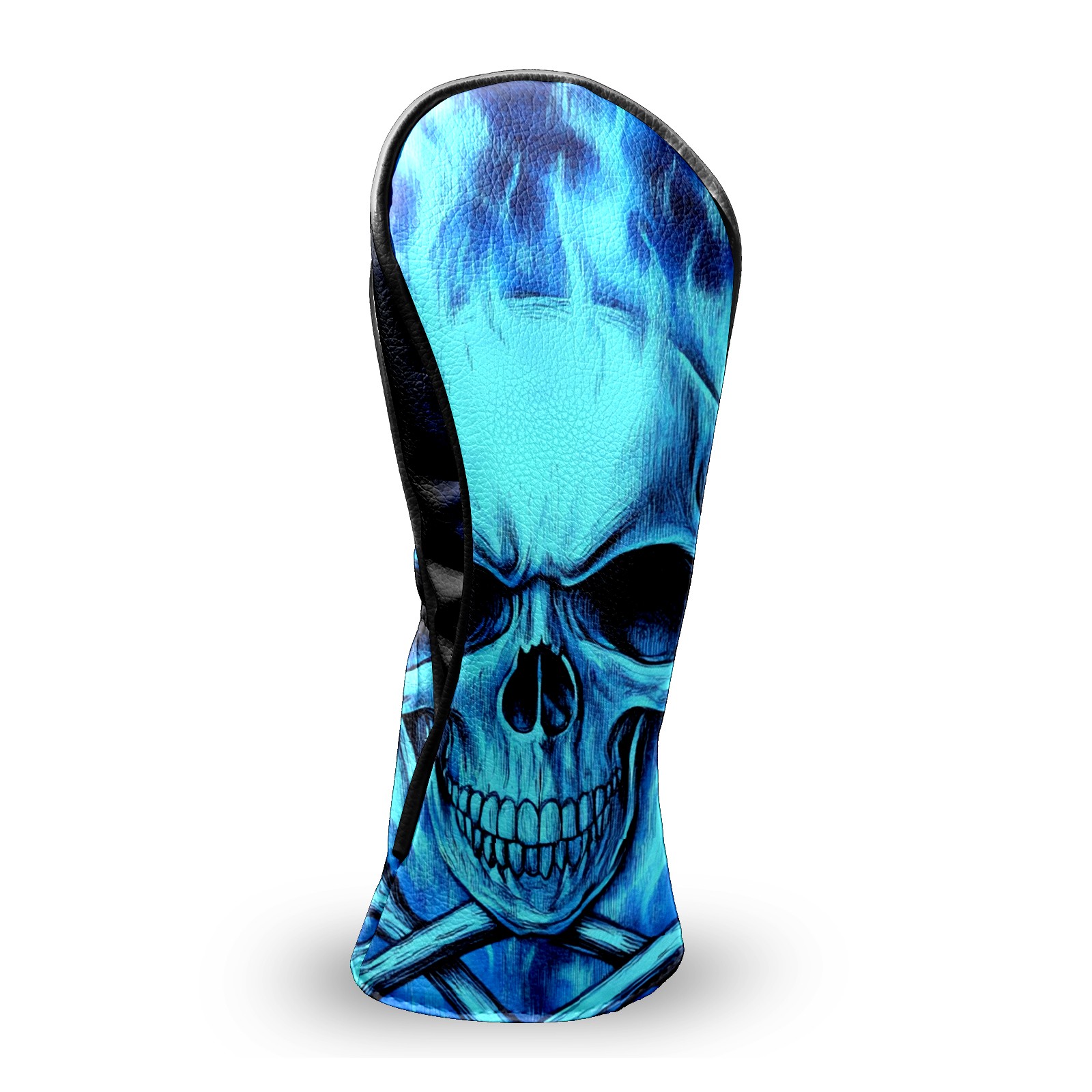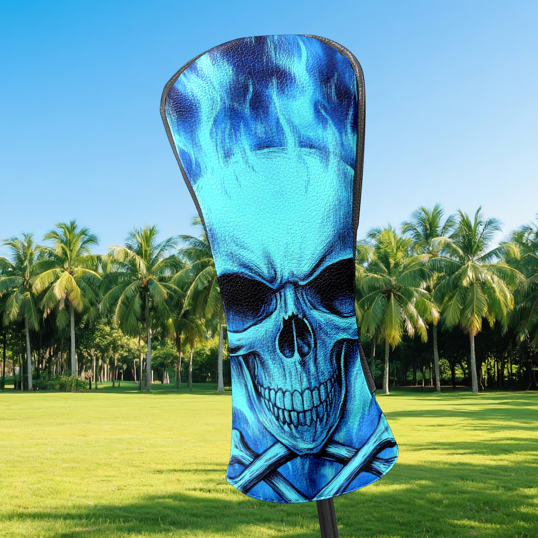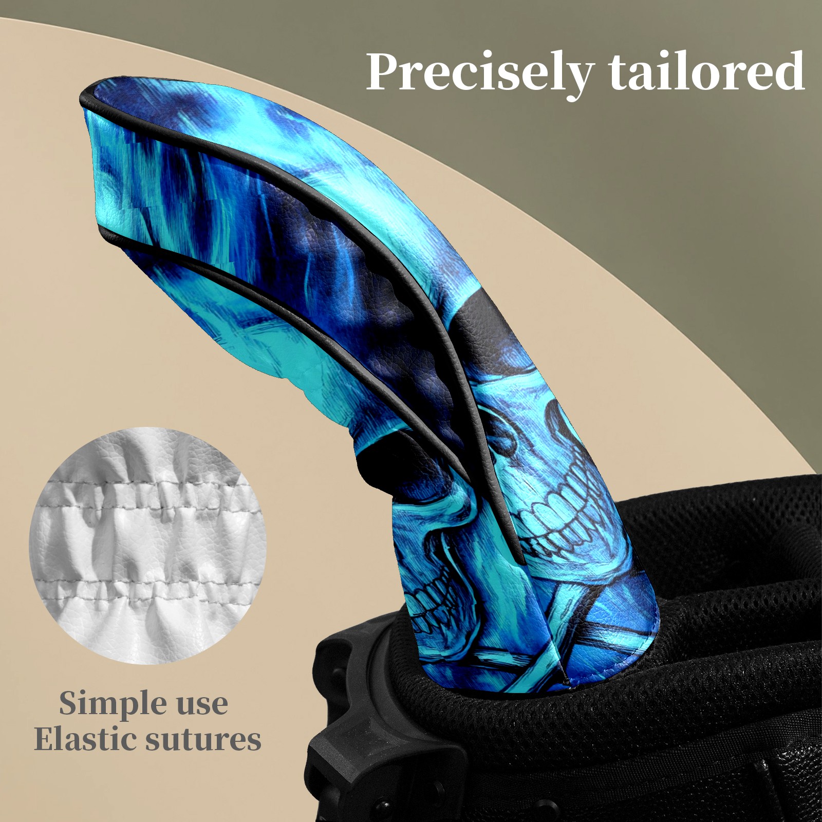 Golf Head Covers Leather Driver Head Cover, Premium Golf Club Covers with Soft Lining Fits Driver Hybrid Fairway 3/5 Wood for Women Men (Skull Blue Flame (1))