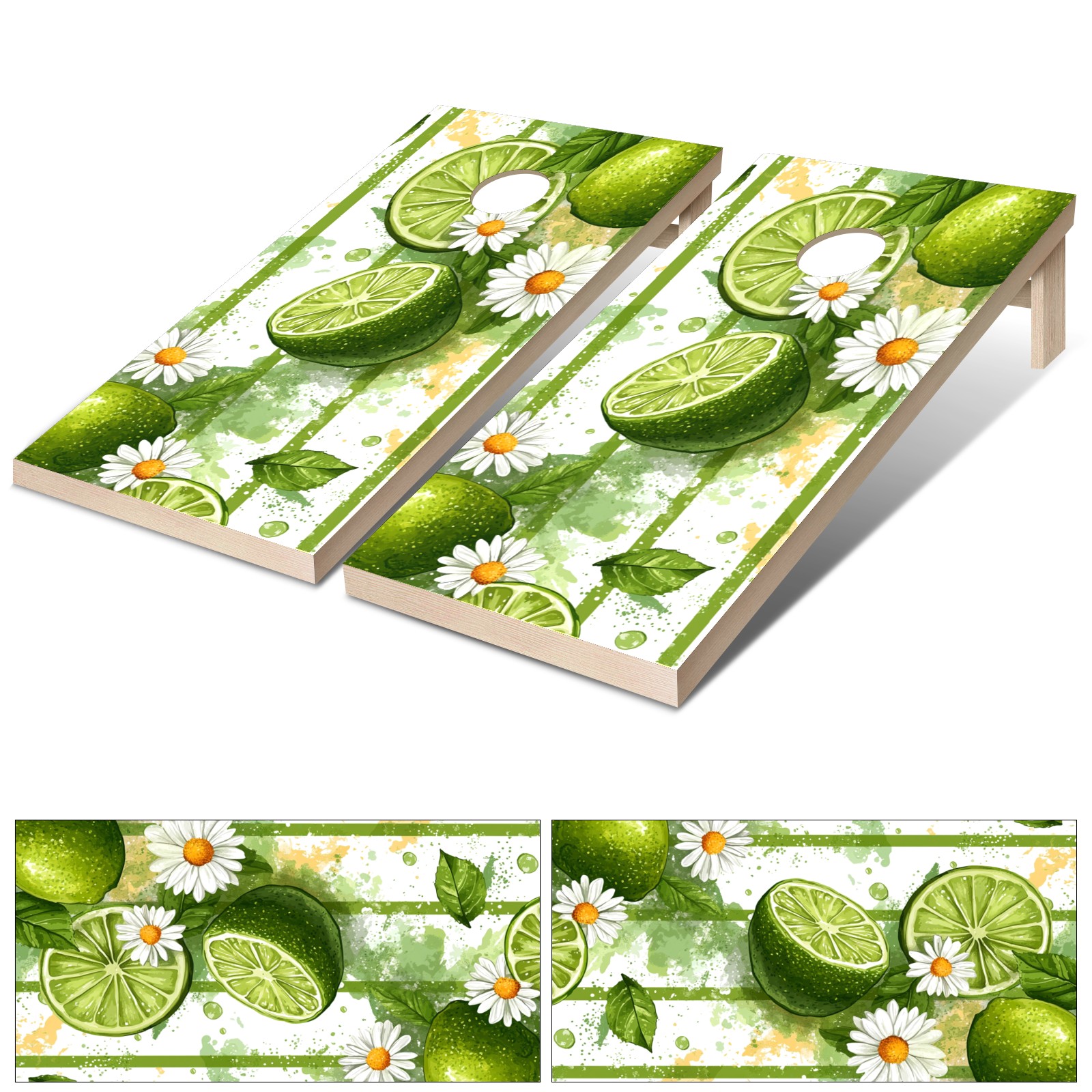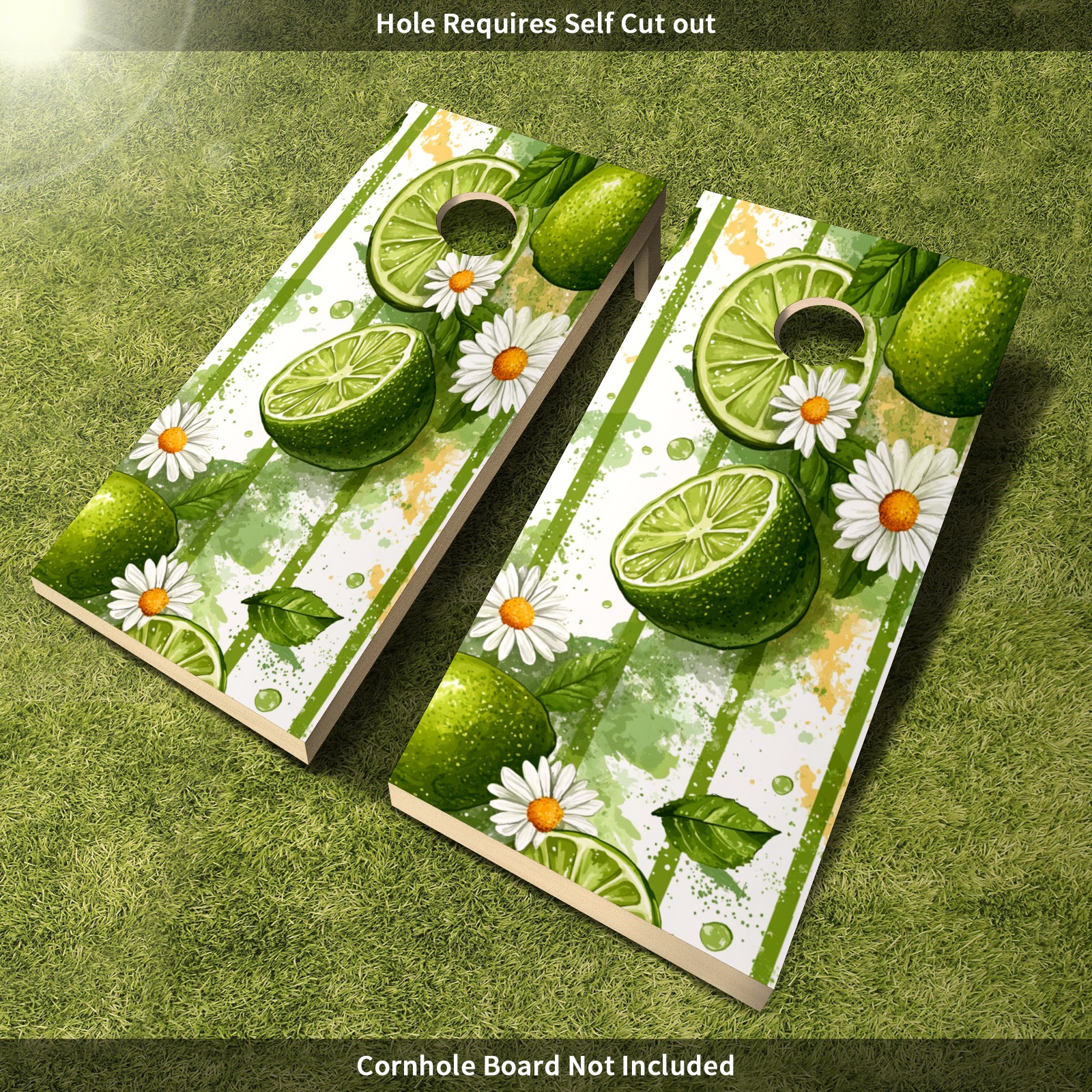 Portable 4x2 Ft Cornhole Boards Set with Two-piece Game Sticker(Decals ONLY), Easy to Apply - Corn Hole Games for Adults Outdoor Bean Bag Toss Game Lime Daisy Pattern3