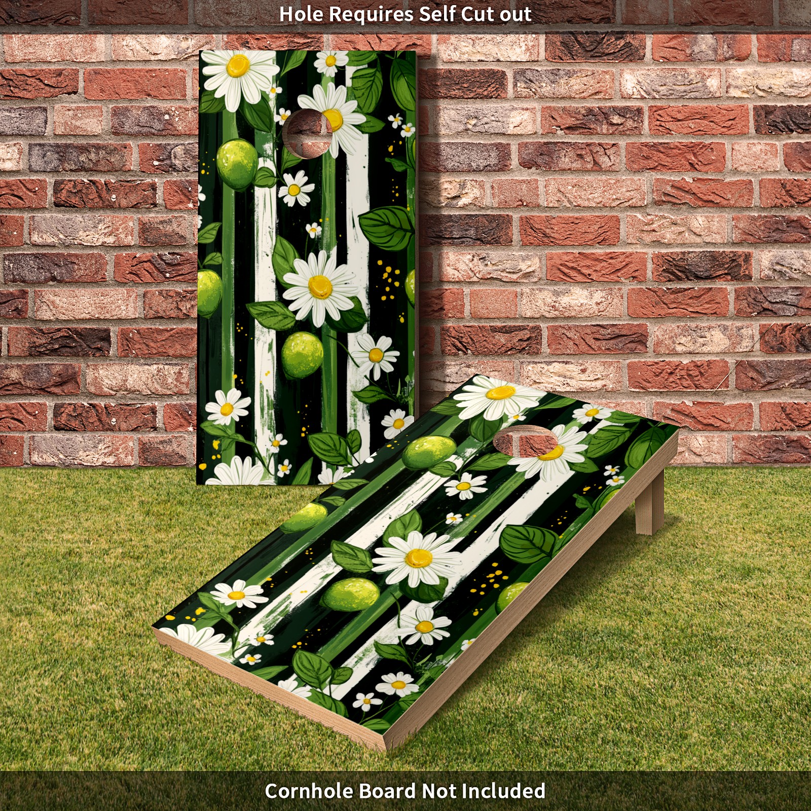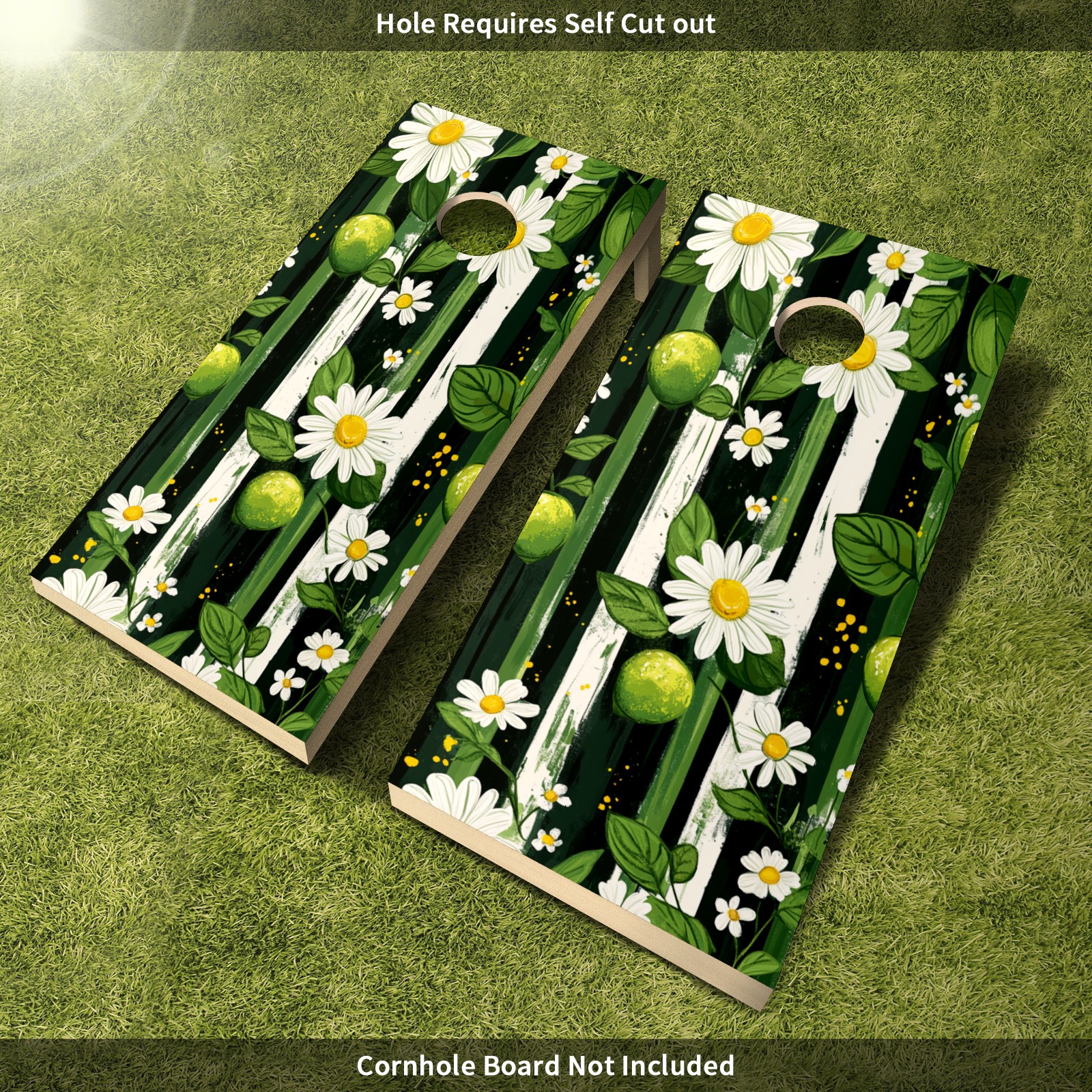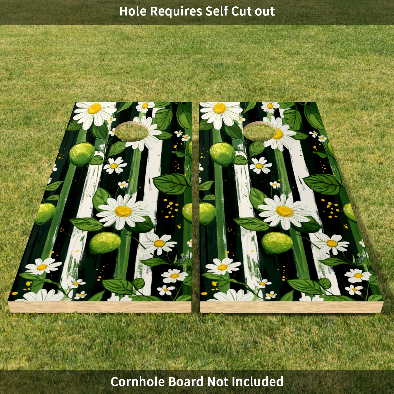 Portable 4x2 Ft Cornhole Boards Set with Two-piece Game Sticker(Decals ONLY), Easy to Apply - Corn Hole Games for Adults Outdoor Bean Bag Toss Game Lime Daisy Pattern1
