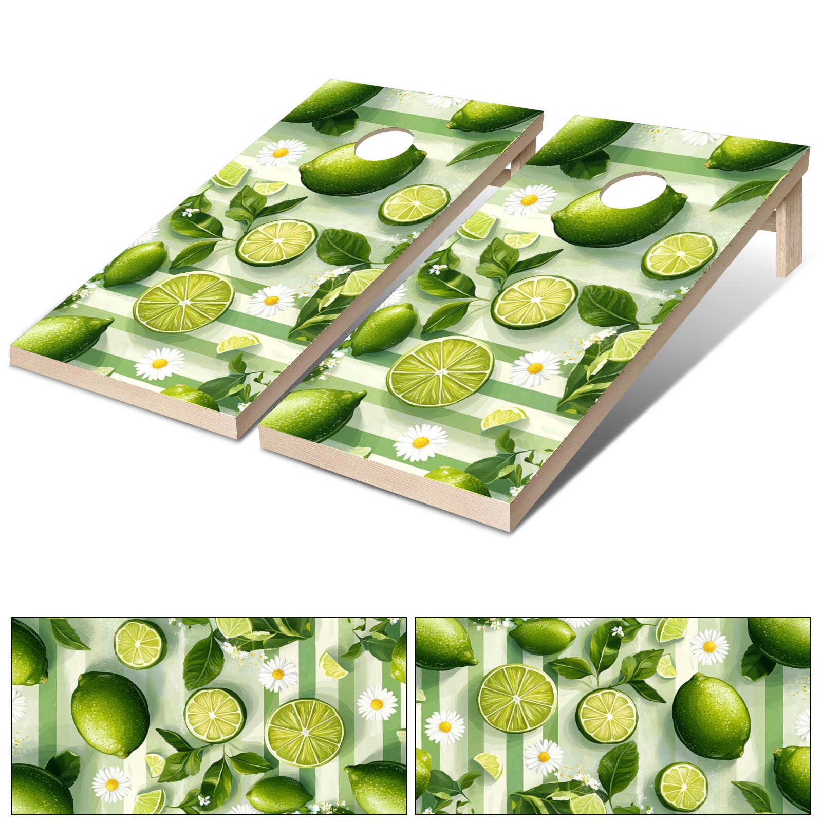 Portable 4x2 Ft Cornhole Boards Set with Two-piece Game Sticker(Decals ONLY), Easy to Apply - Corn Hole Games for Adults Outdoor Bean Bag Toss Game Lime Daisy Pattern7