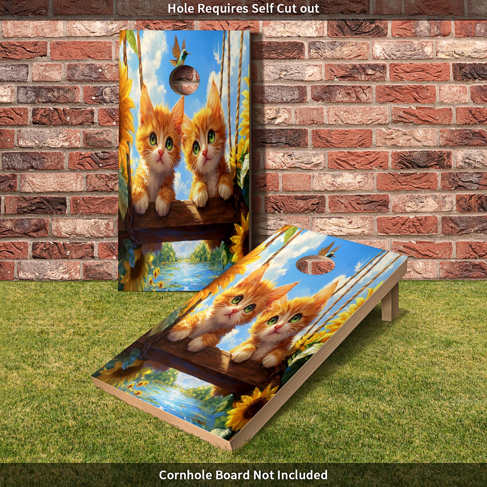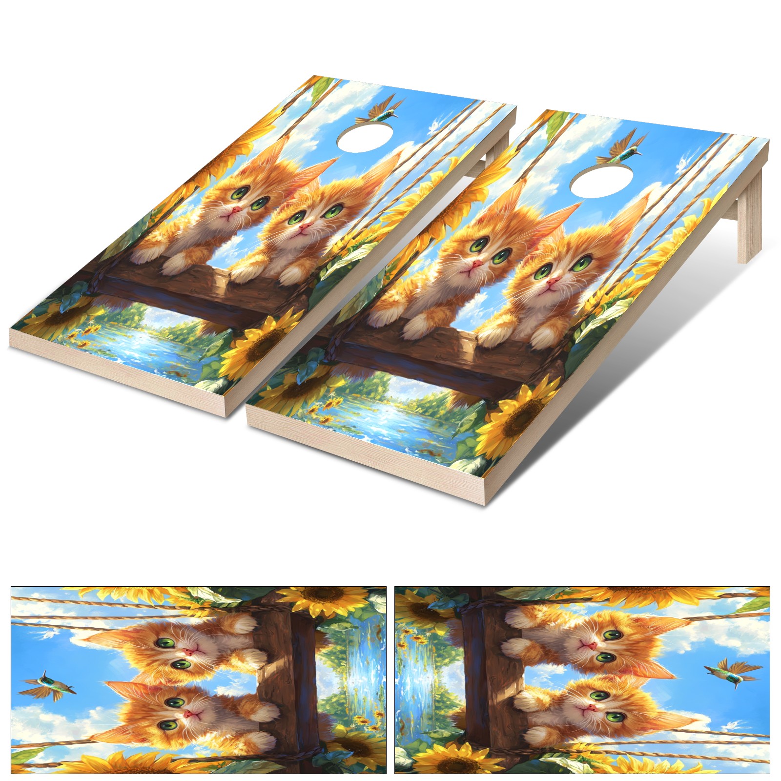 Portable 4x2 Ft Cornhole Boards Set with Two-piece Game Sticker(Decals ONLY), Easy to Apply - Corn Hole Games for Adults Outdoor Bean Bag Toss Game Cat Swing Pattern