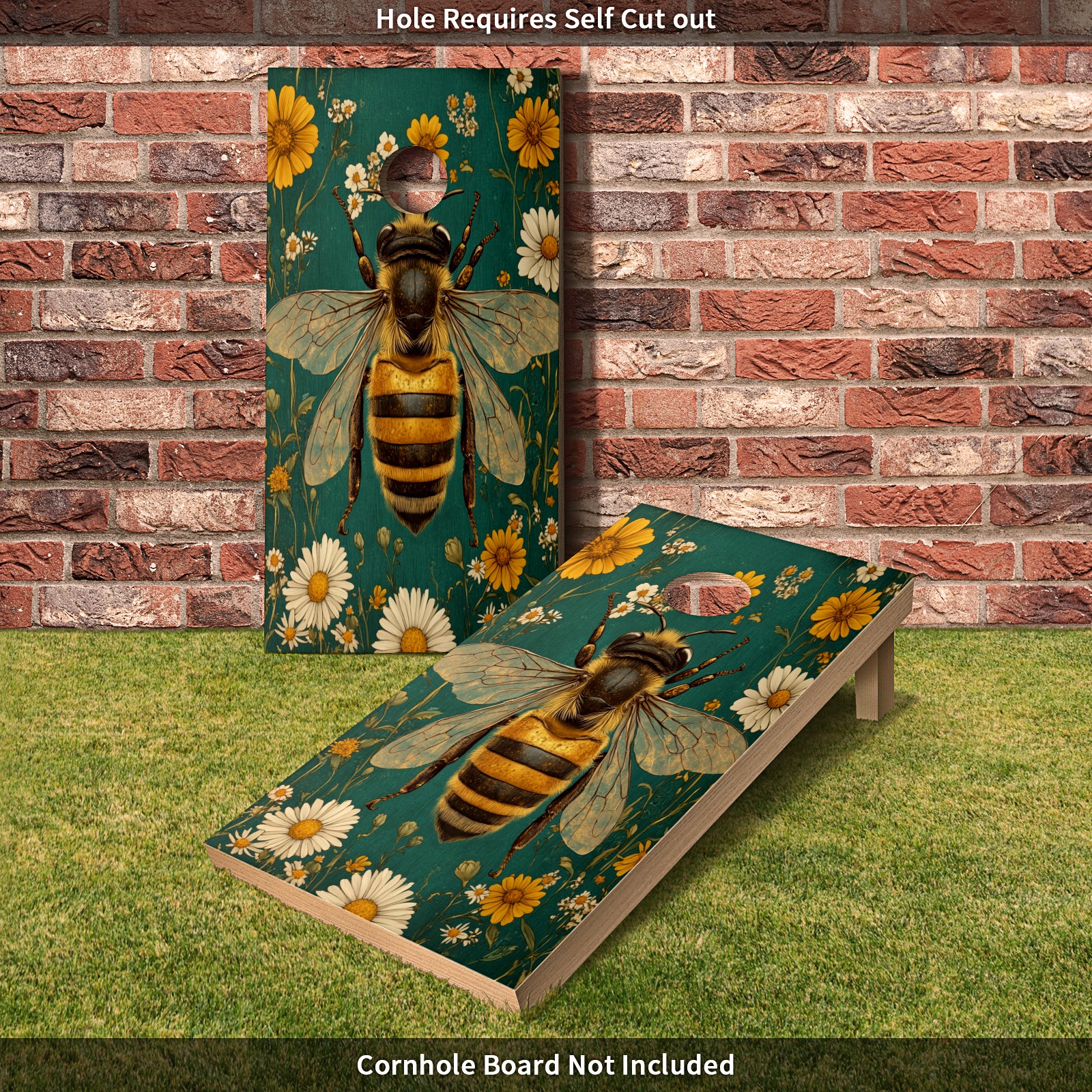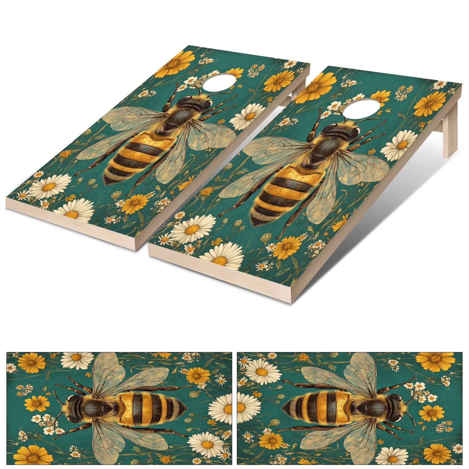 Portable 4x2 Ft Cornhole Boards Set with Two-piece Game Sticker(Decals ONLY), Easy to Apply - Corn Hole Games for Adults Outdoor Bean Bag Toss Game Big Bee Pattern2