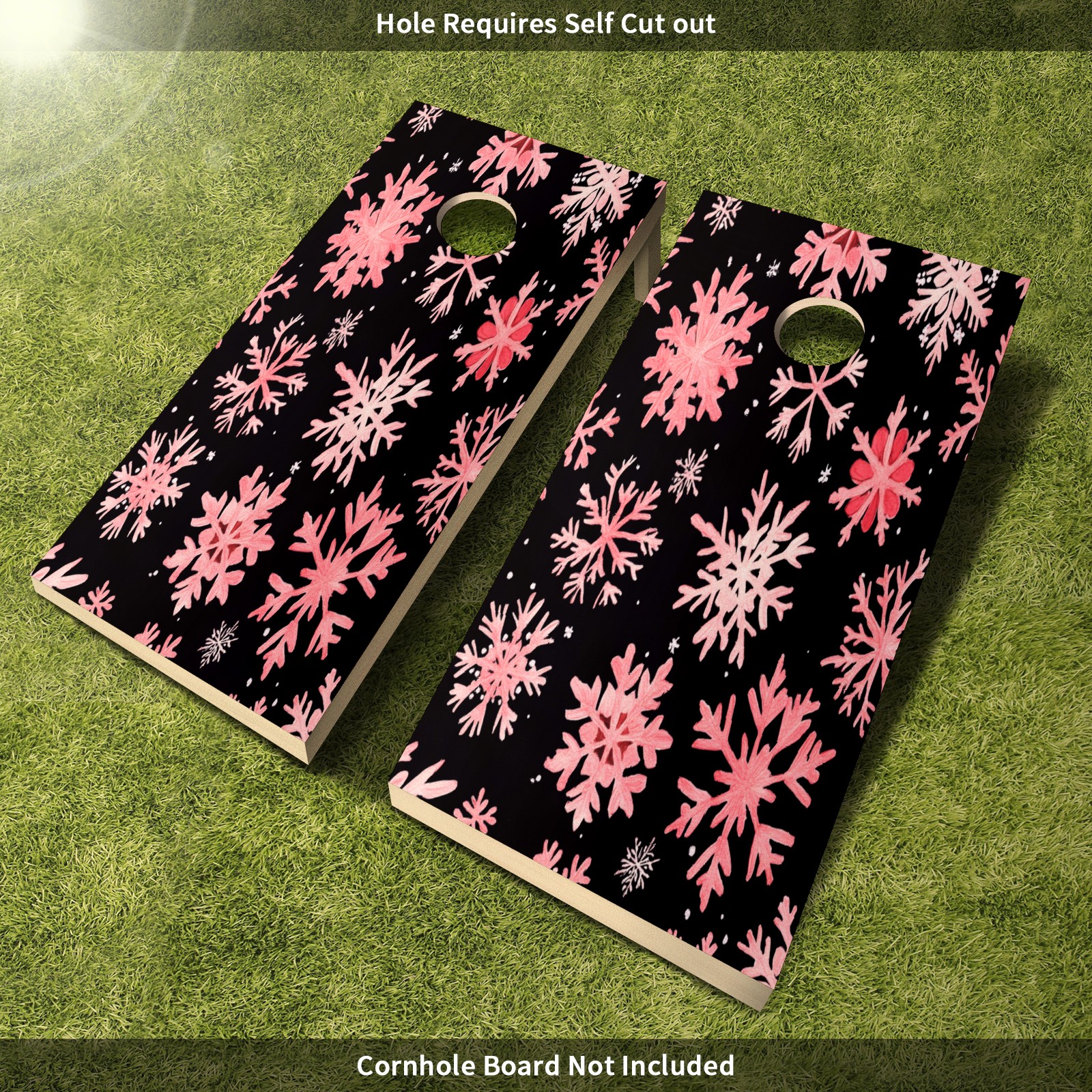 Portable 4x2 Ft Cornhole Boards Set with Two-piece Game Sticker(Decals ONLY), Easy to Apply - Corn Hole Games for Adults Outdoor Bean Bag Toss Game Pink Snowflake Pattern