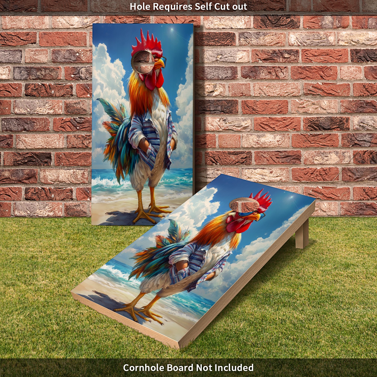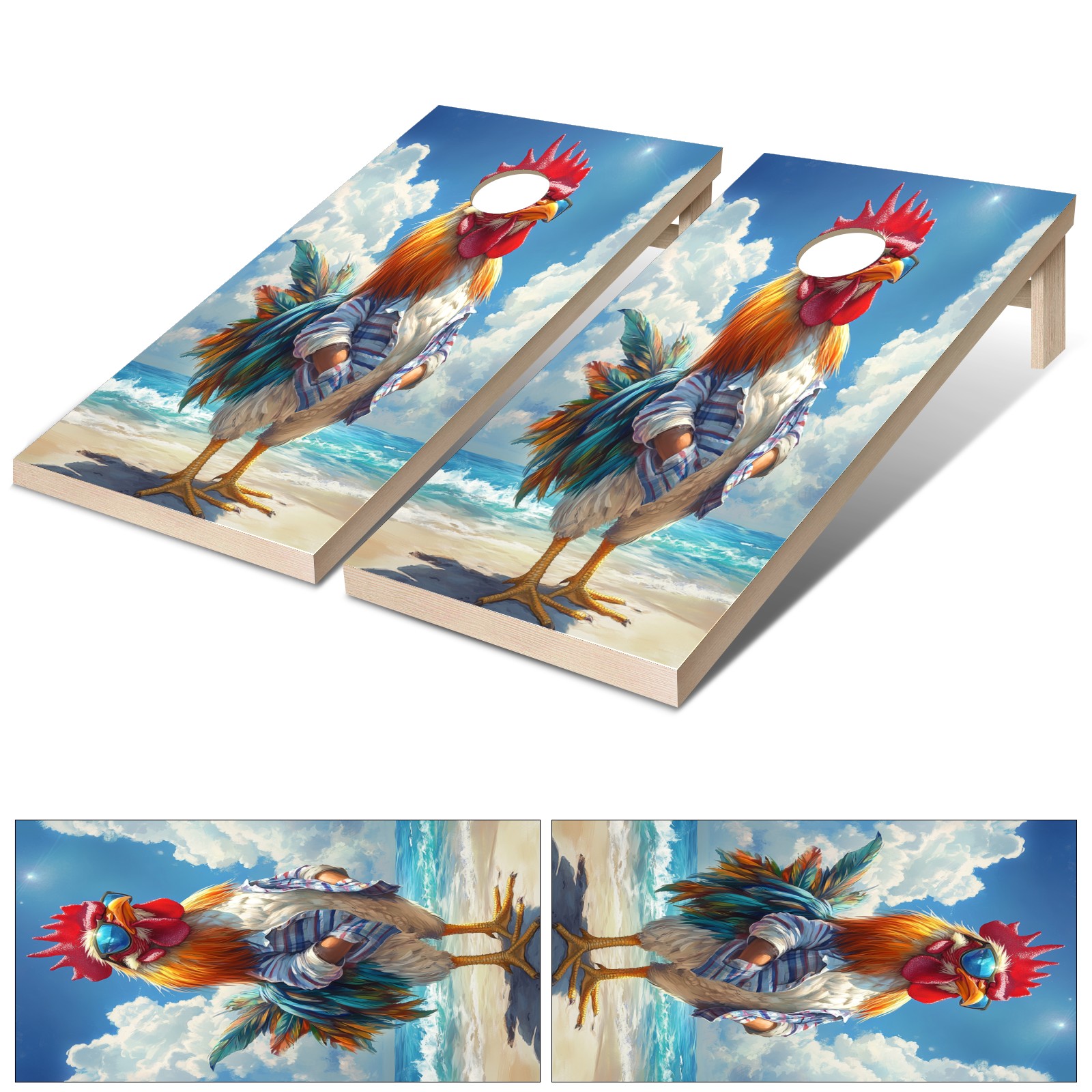 Portable 4x2 Ft Cornhole Boards Set with Two-piece Game Sticker(Decals ONLY), Easy to Apply - Corn Hole Games for Adults Outdoor Bean Bag Toss Game Rooster Pattern1
