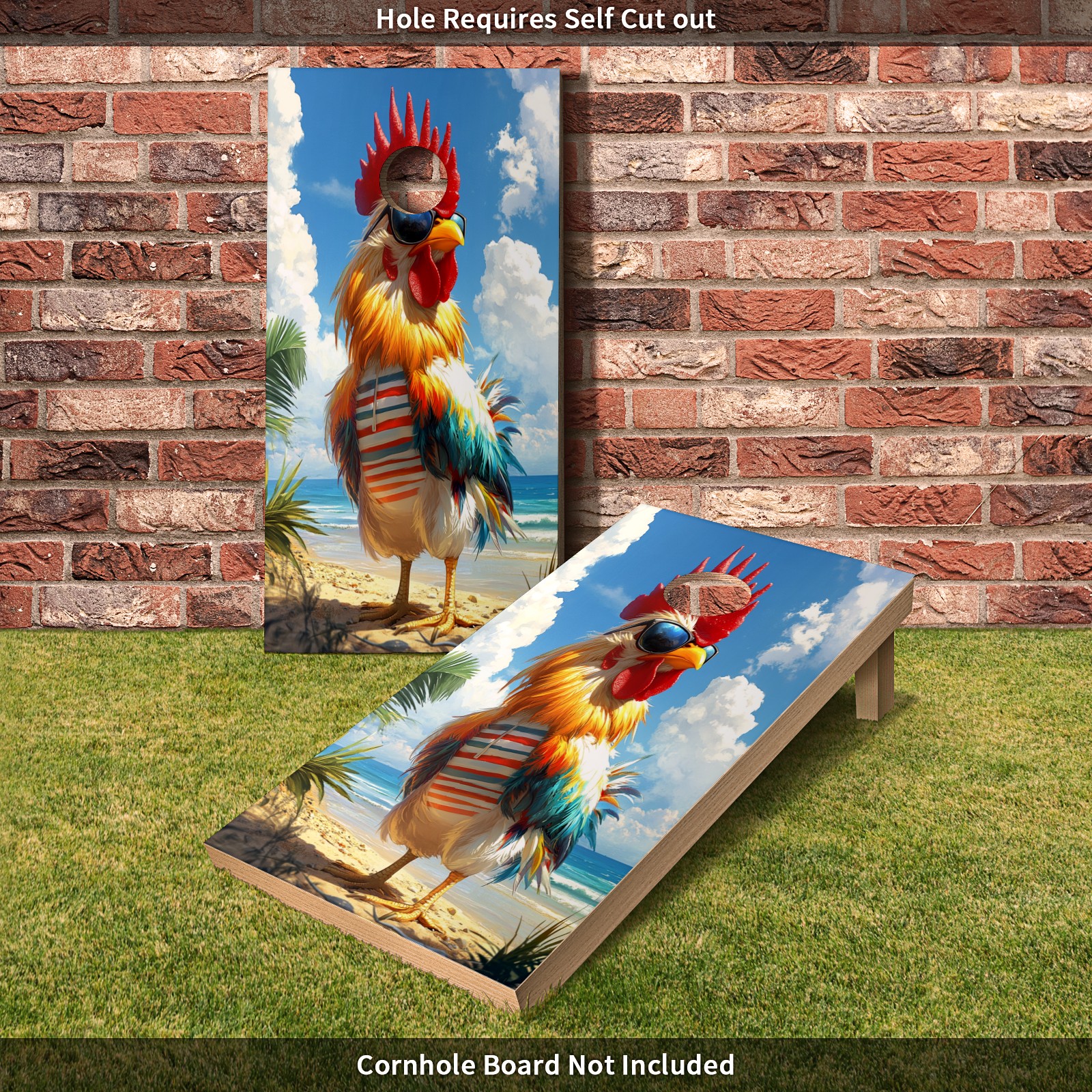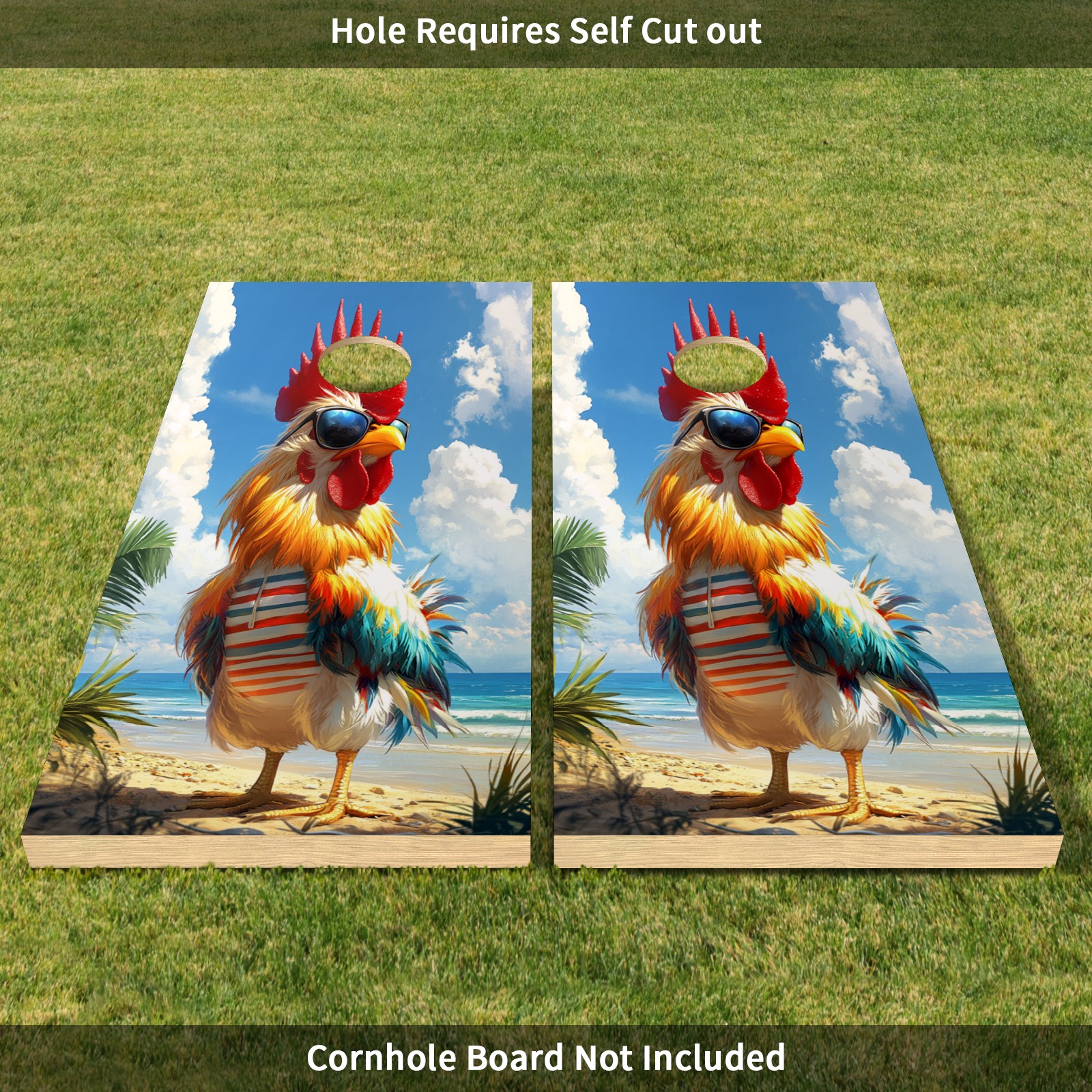 Portable 4x2 Ft Cornhole Boards Set with Two-piece Game Sticker(Decals ONLY), Easy to Apply - Corn Hole Games for Adults Outdoor Bean Bag Toss Game Rooster Pattern