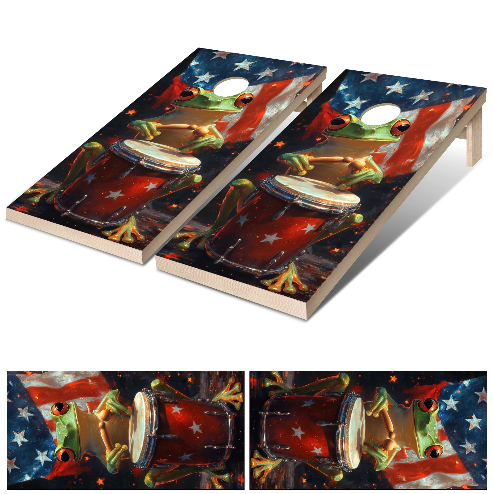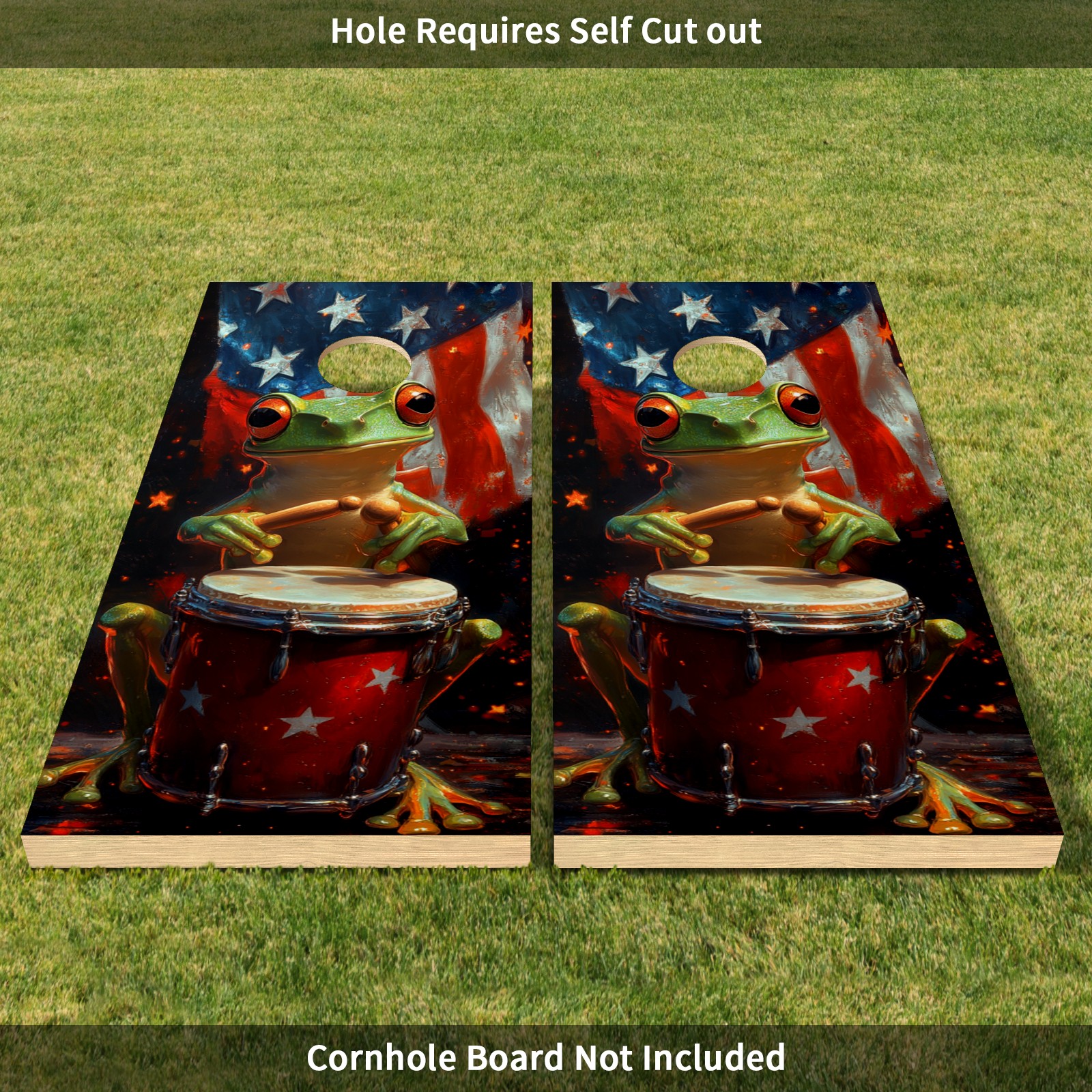 Portable 4x2 Ft Cornhole Boards Set with Two-piece Game Sticker(Decals ONLY), Easy to Apply - Corn Hole Games for Adults Outdoor Bean Bag Toss Game Drumming Frog Pattern2