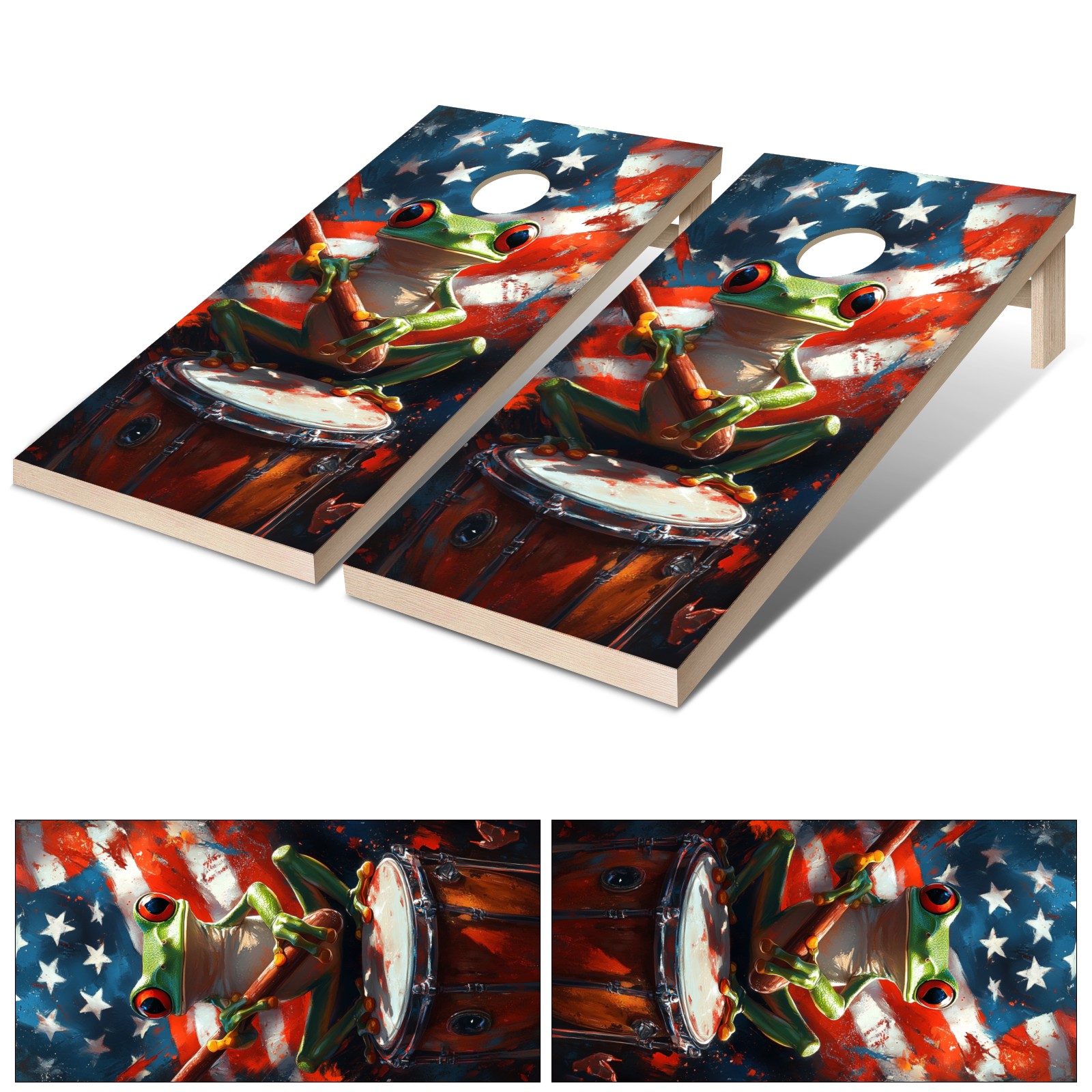 Portable 4x2 Ft Cornhole Boards Set with Two-piece Game Sticker(Decals ONLY), Easy to Apply - Corn Hole Games for Adults Outdoor Bean Bag Toss Game Drumming Frog Pattern1