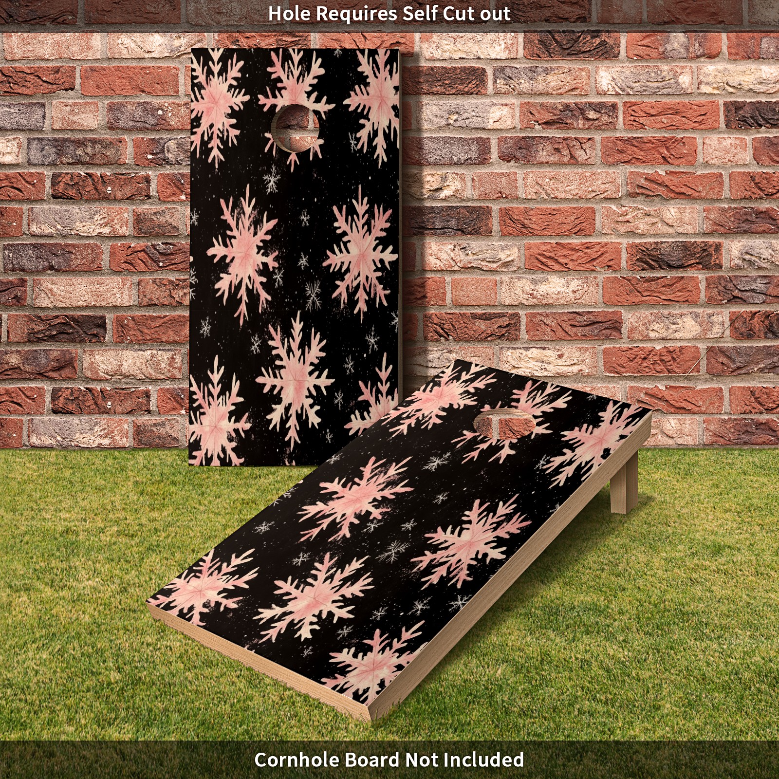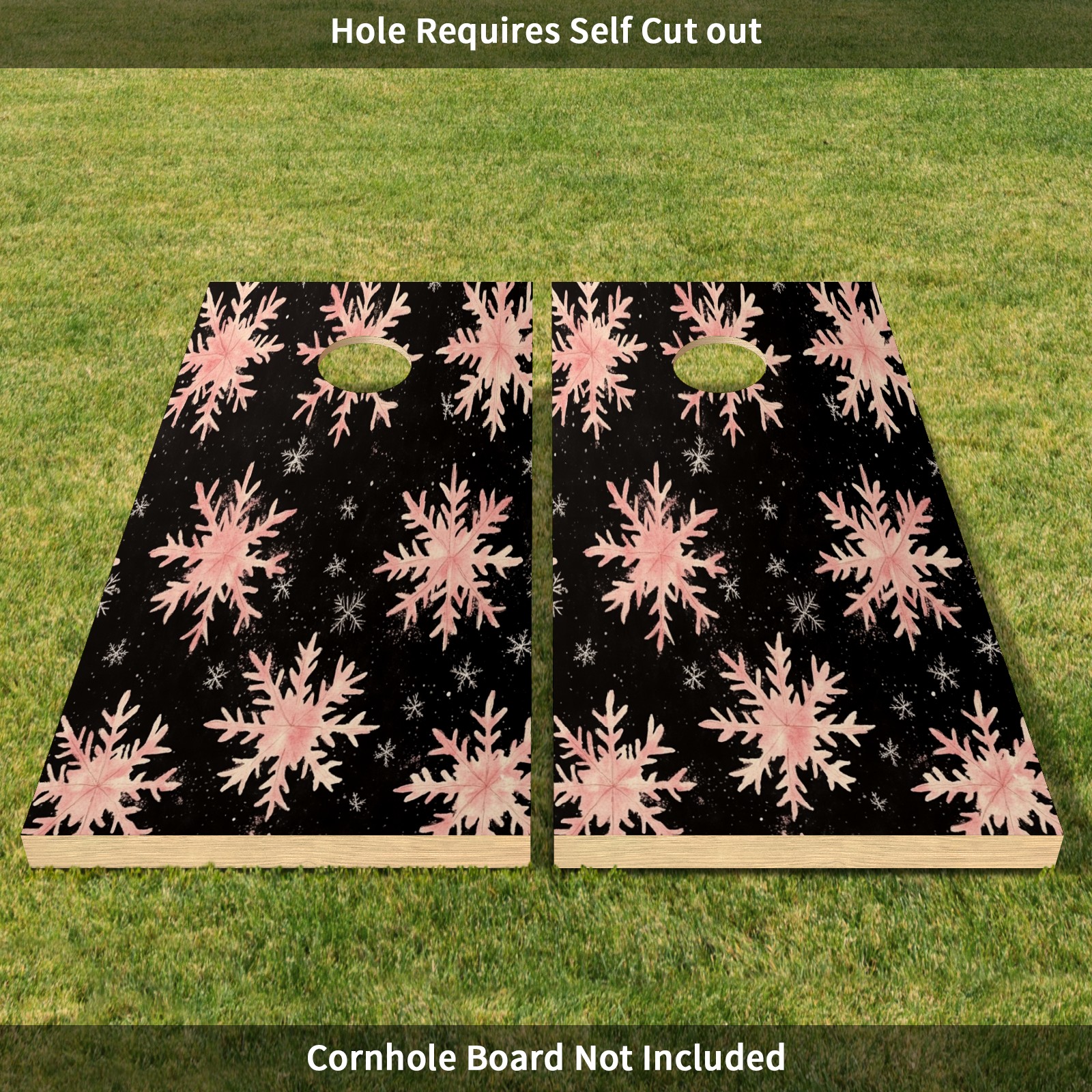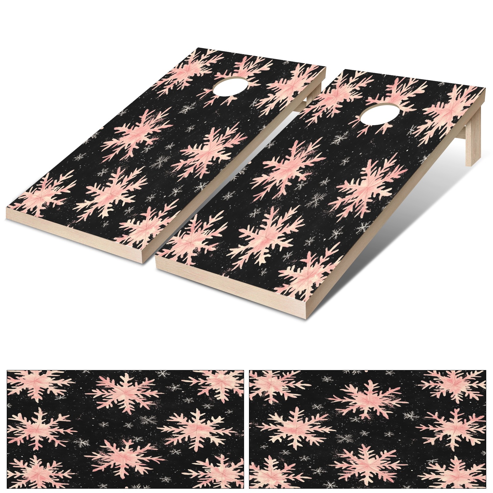 Portable 4x2 Ft Cornhole Boards Set with Two-piece Game Sticker(Decals ONLY), Easy to Apply - Corn Hole Games for Adults Outdoor Bean Bag Toss Game Pink Snowflake Pattern1