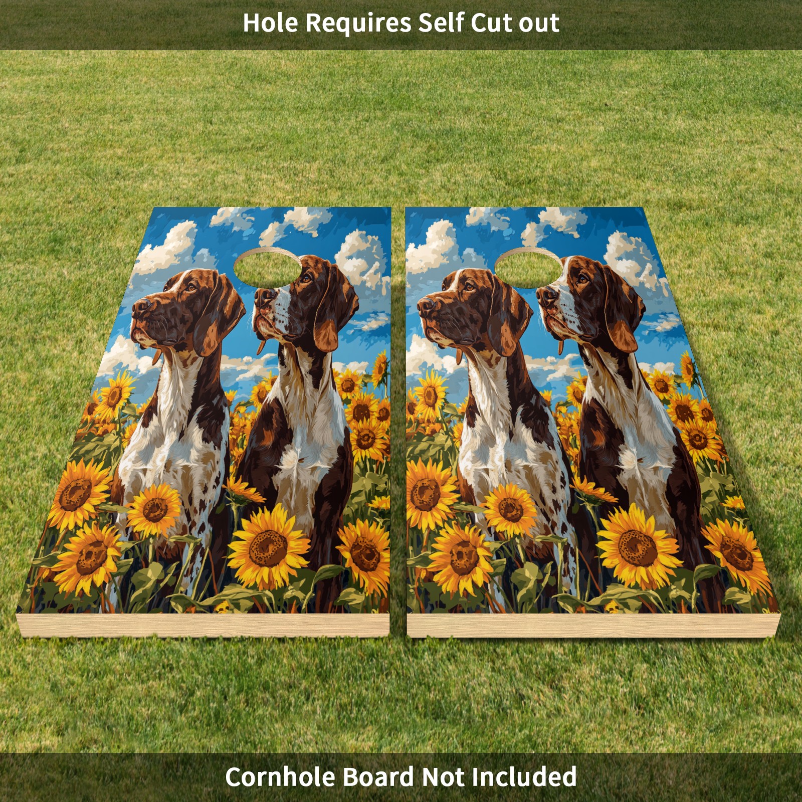 Portable 4x2 Ft Cornhole Boards Set with Two-piece Game Sticker(Decals ONLY), Easy to Apply - Corn Hole Games for Adults Outdoor Bean Bag Toss Game Oil Painting Dog Pattern