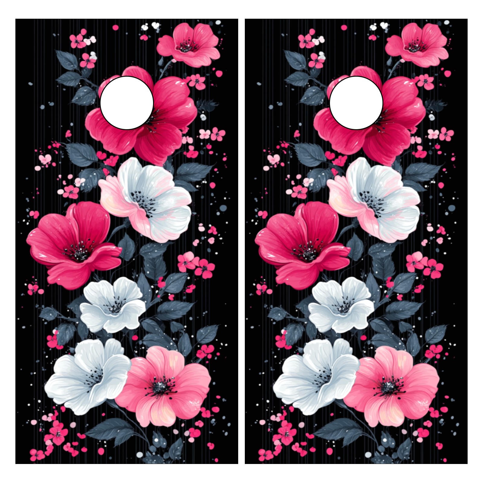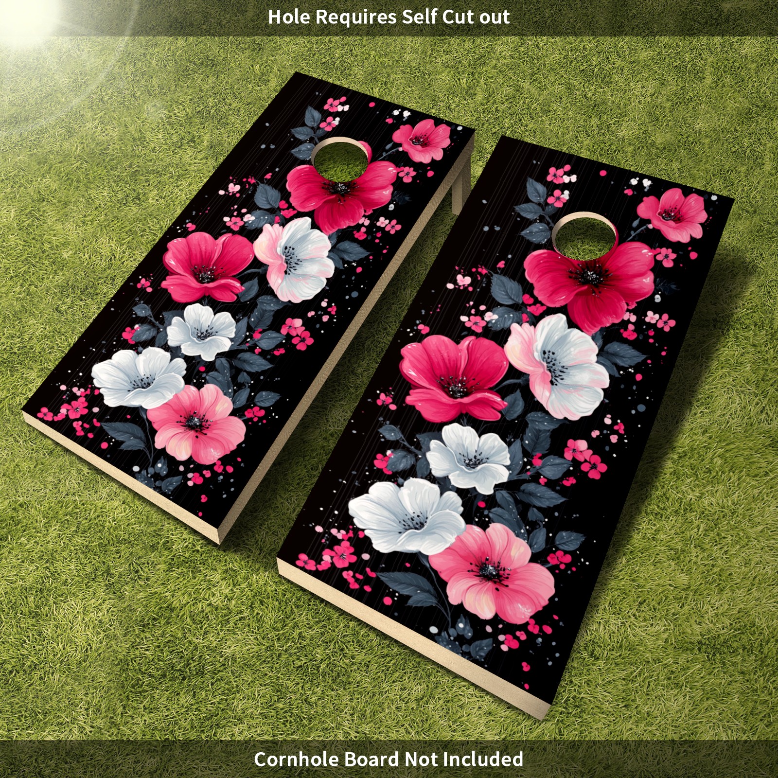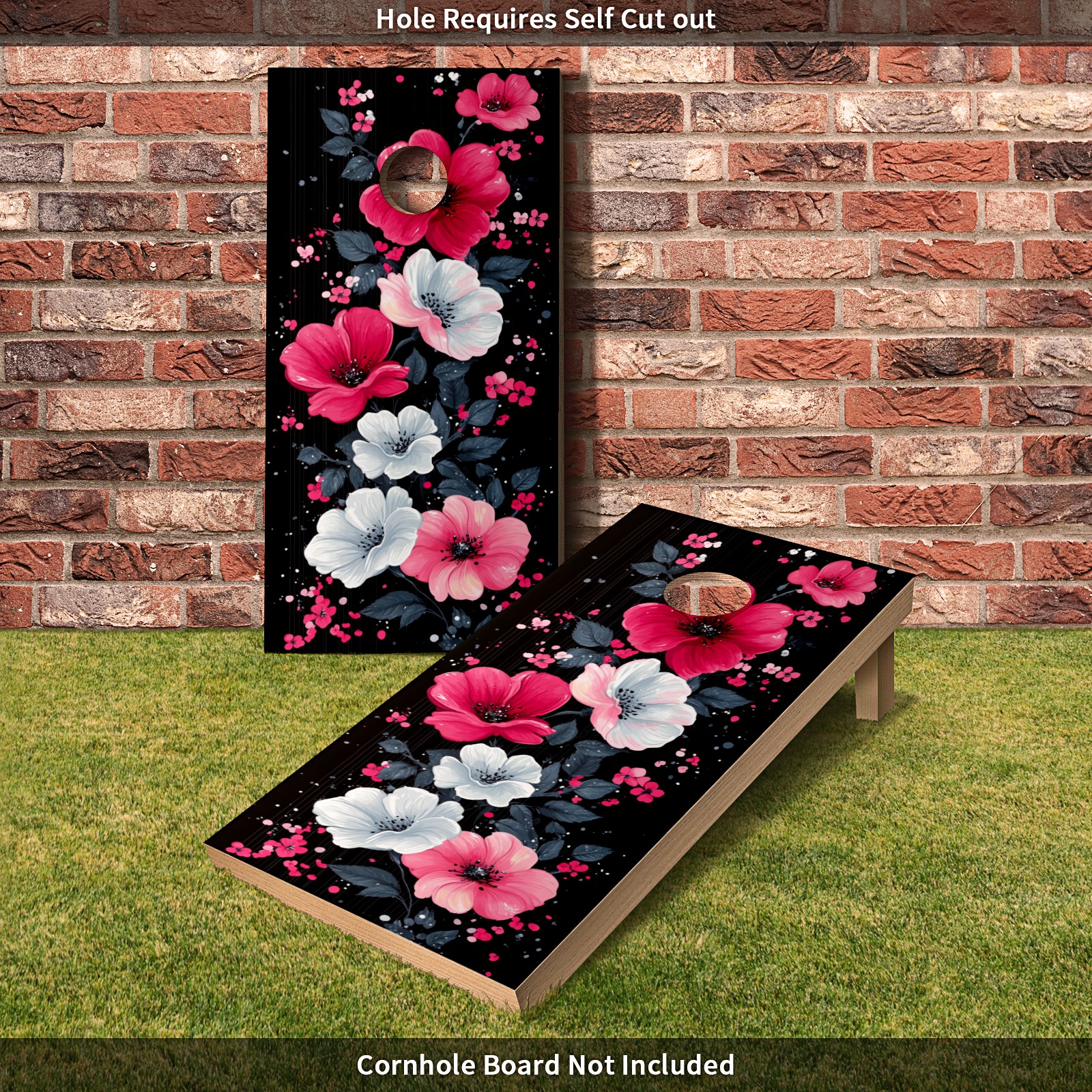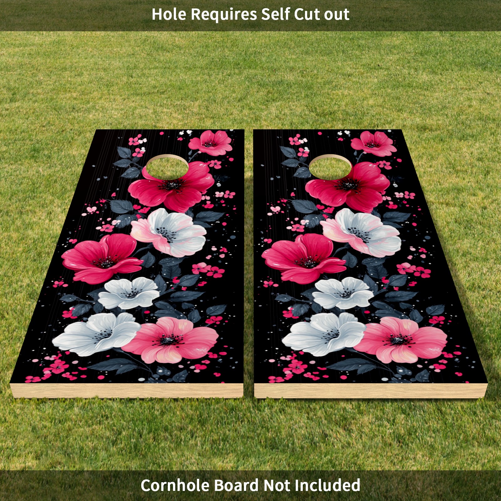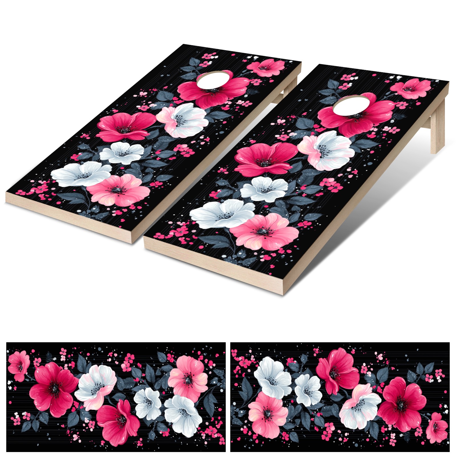 Portable 4x2 Ft Cornhole Boards Set with Two-piece Game Sticker(Decals ONLY), Easy to Apply - Corn Hole Games for Adults Outdoor Bean Bag Toss Game Pink Floral Pattern2