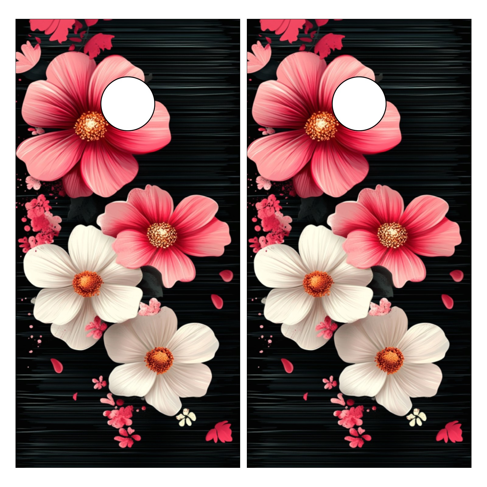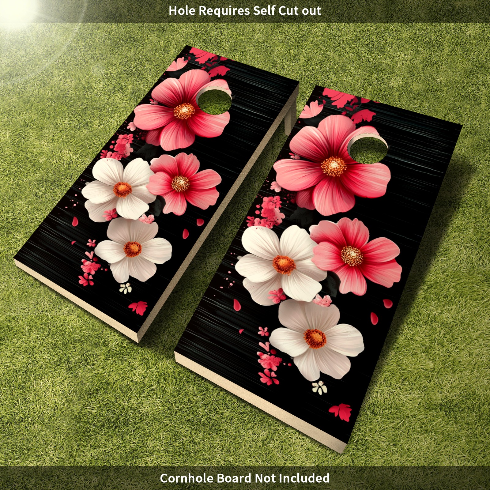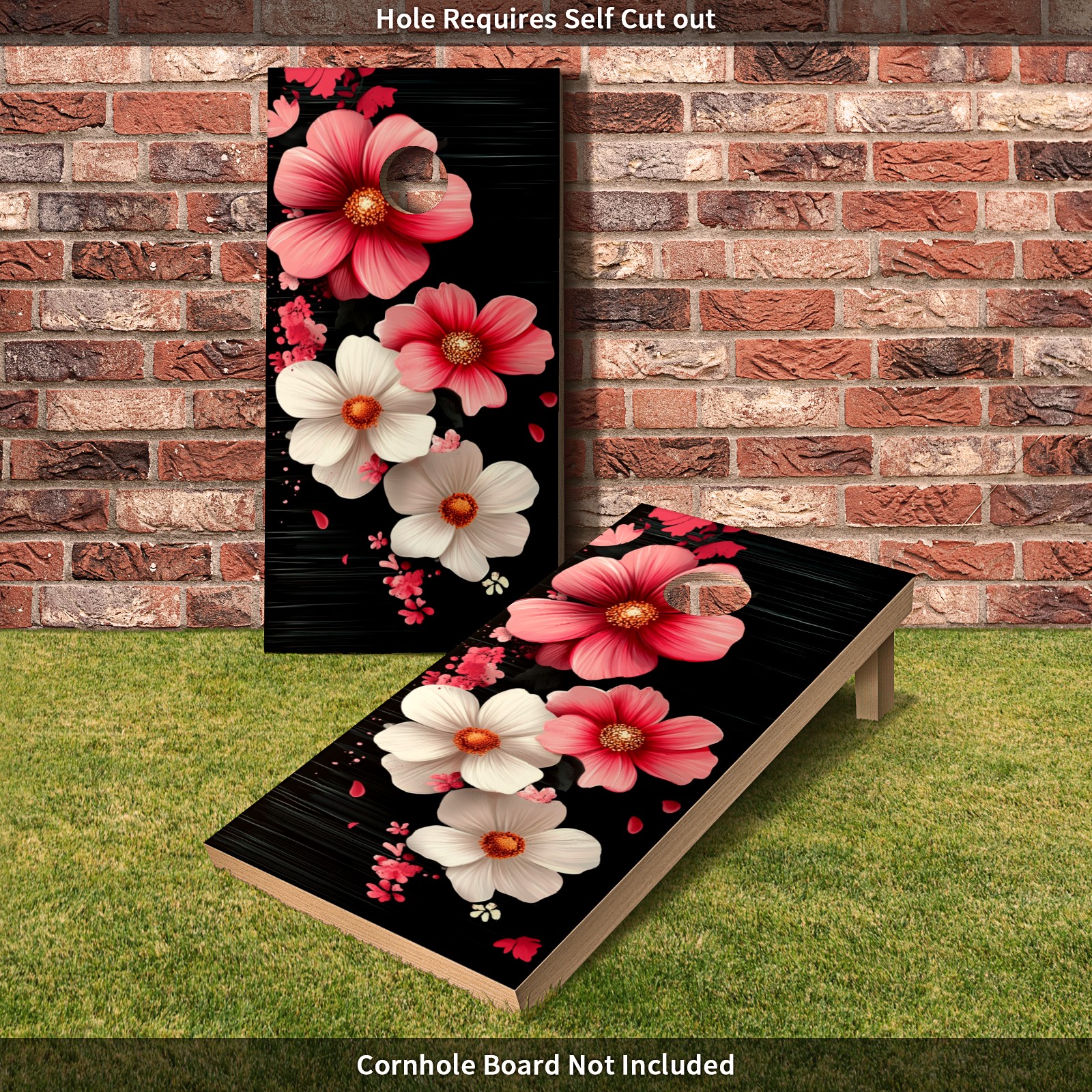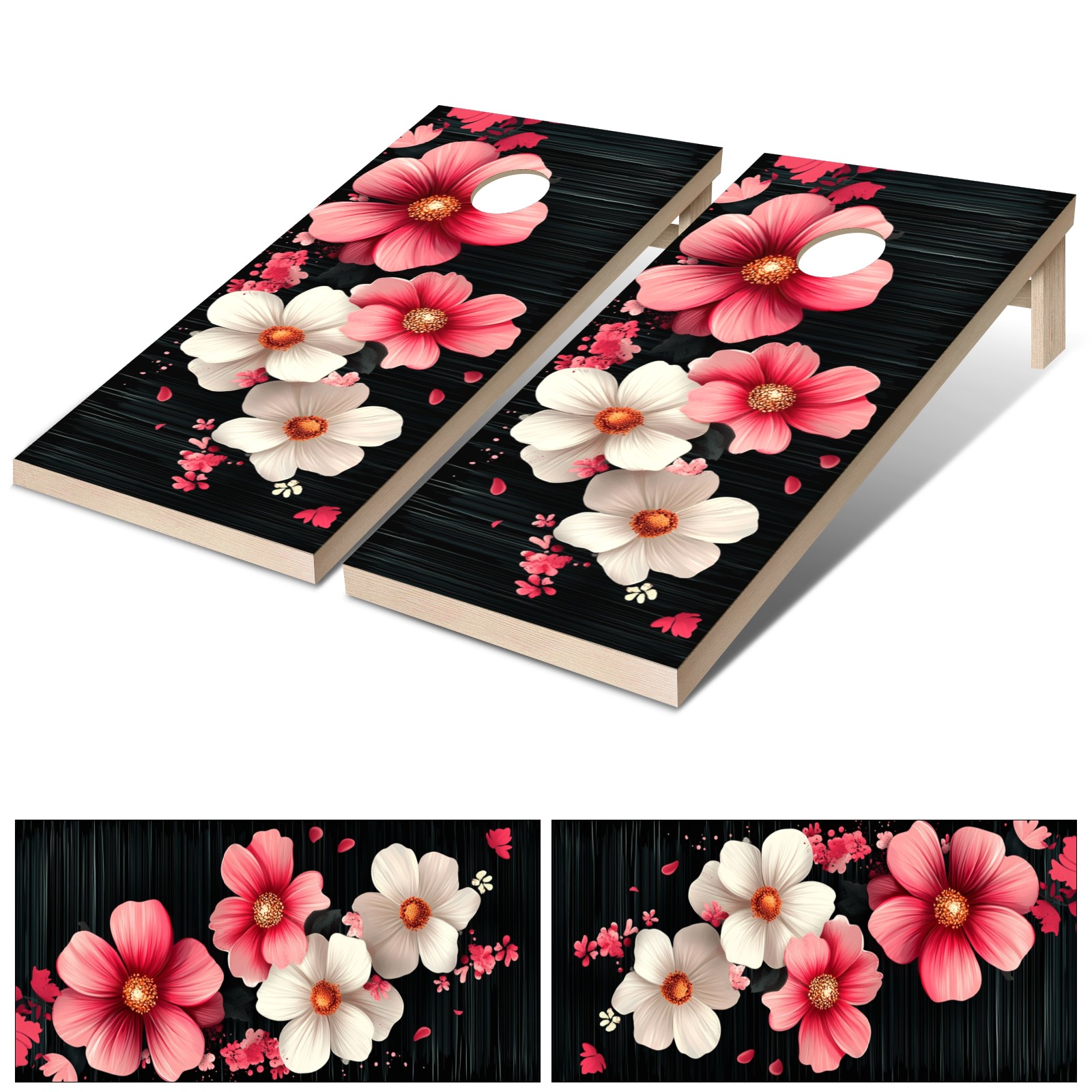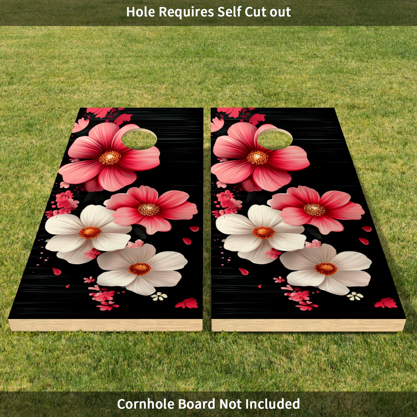 Portable 4x2 Ft Cornhole Boards Set with Two-piece Game Sticker(Decals ONLY), Easy to Apply - Corn Hole Games for Adults Outdoor Bean Bag Toss Game Pink Floral Pattern