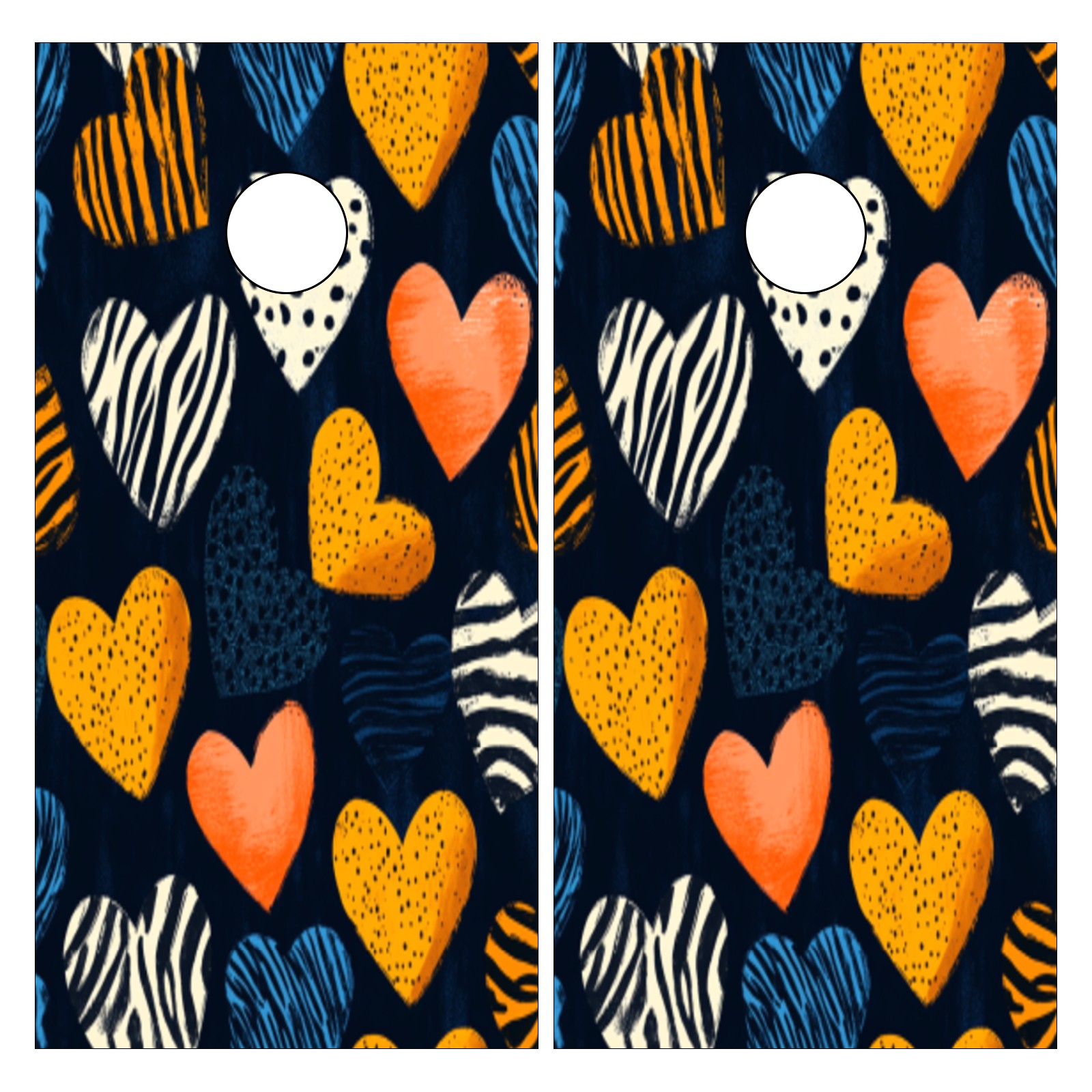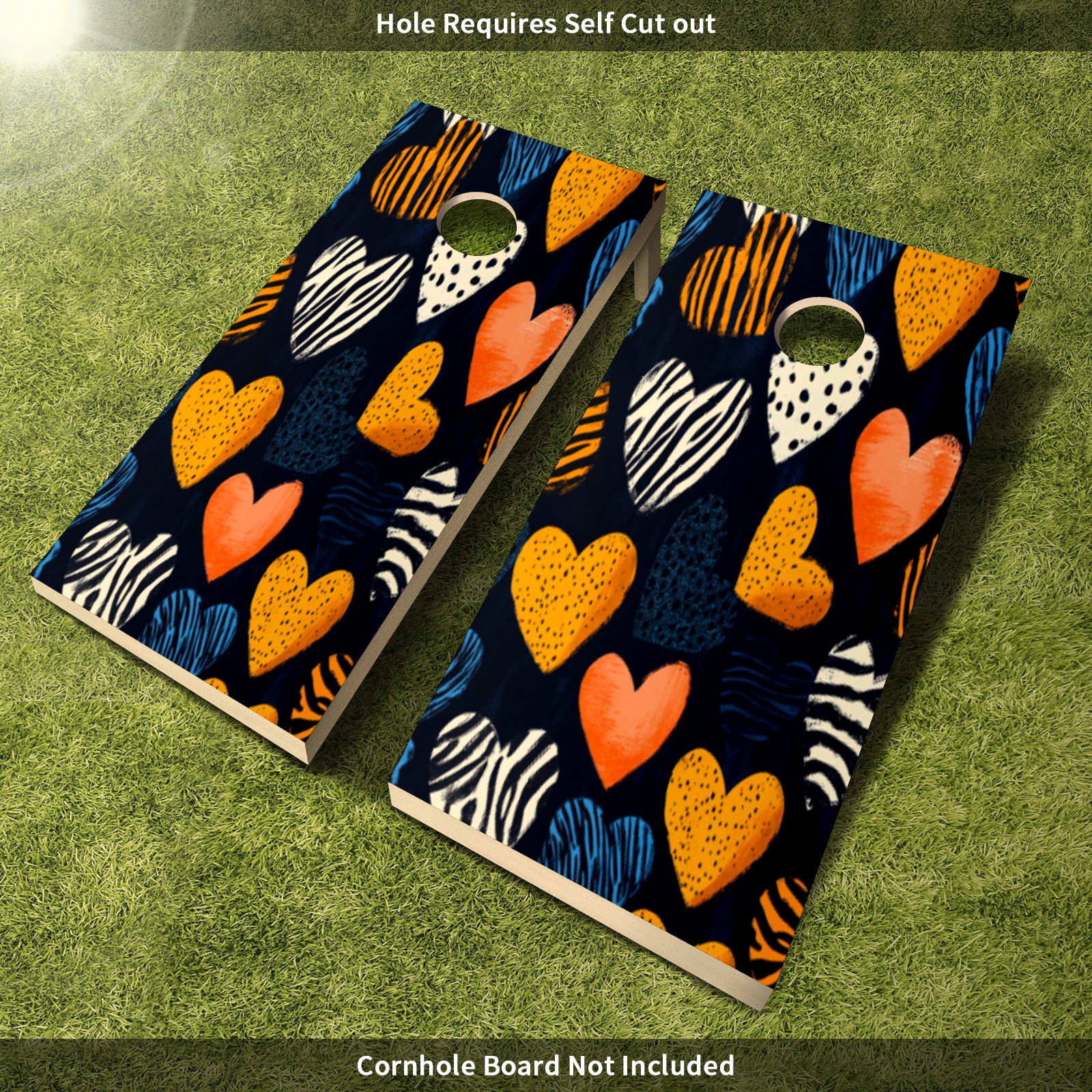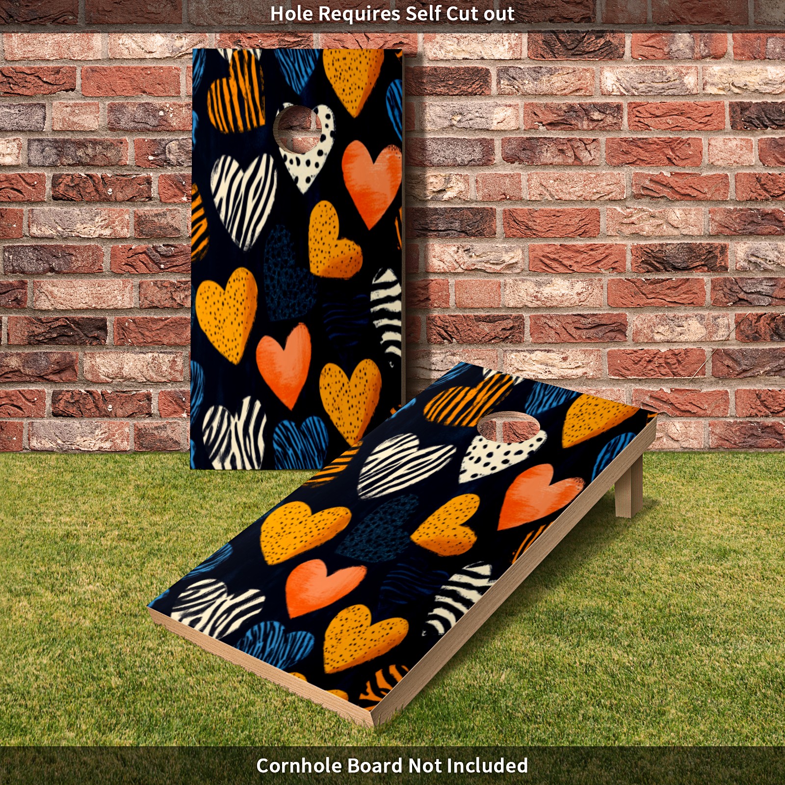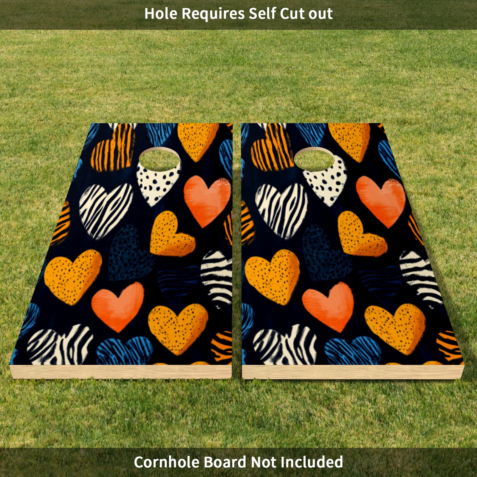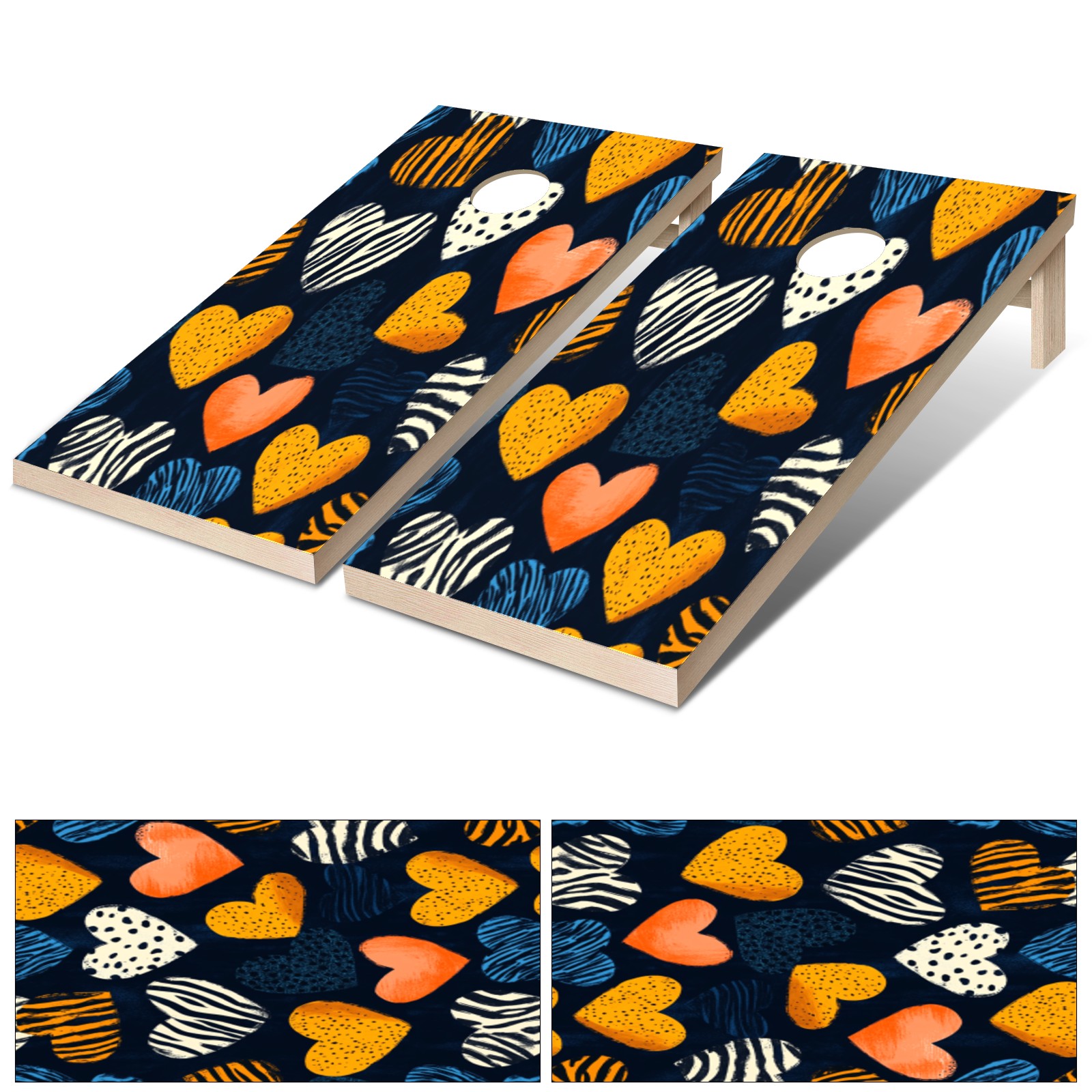 Portable 4x2 Ft Cornhole Boards Set with Two-piece Game Sticker(Decals ONLY), Easy to Apply - Corn Hole Games for Adults Outdoor Bean Bag Toss Game Brown Heart Pattern