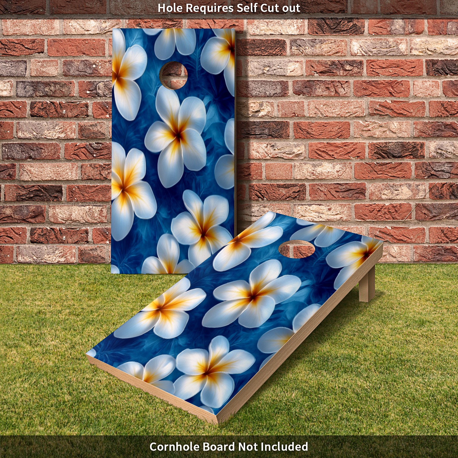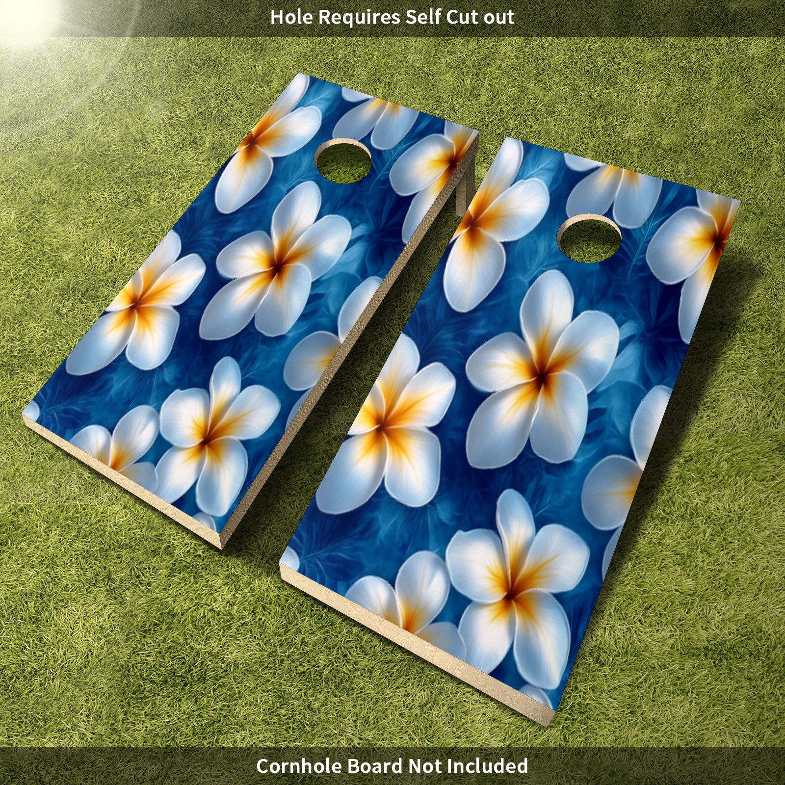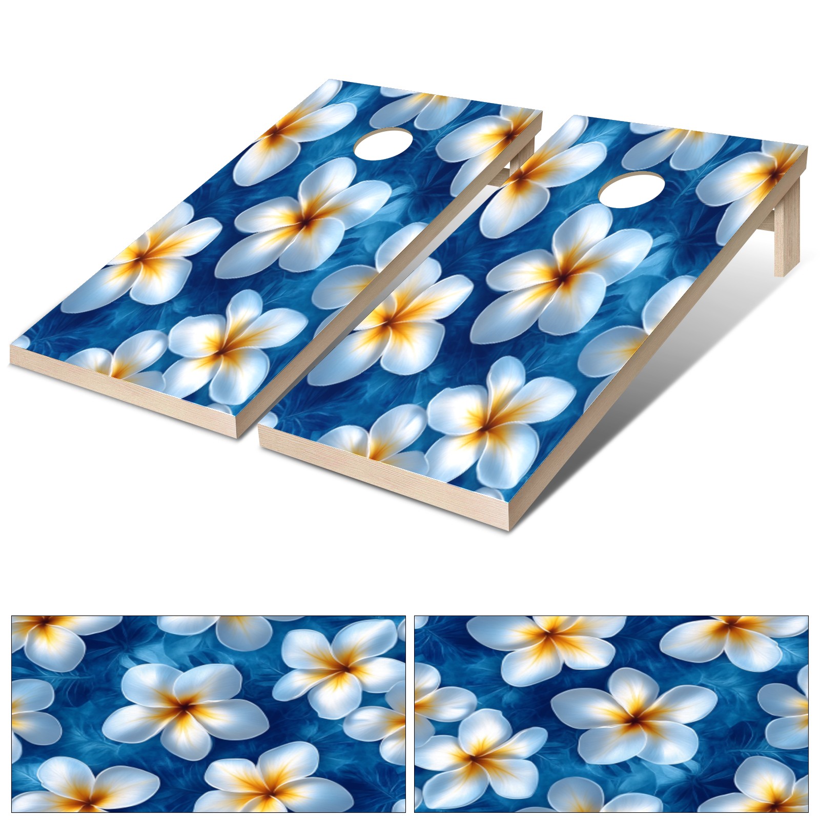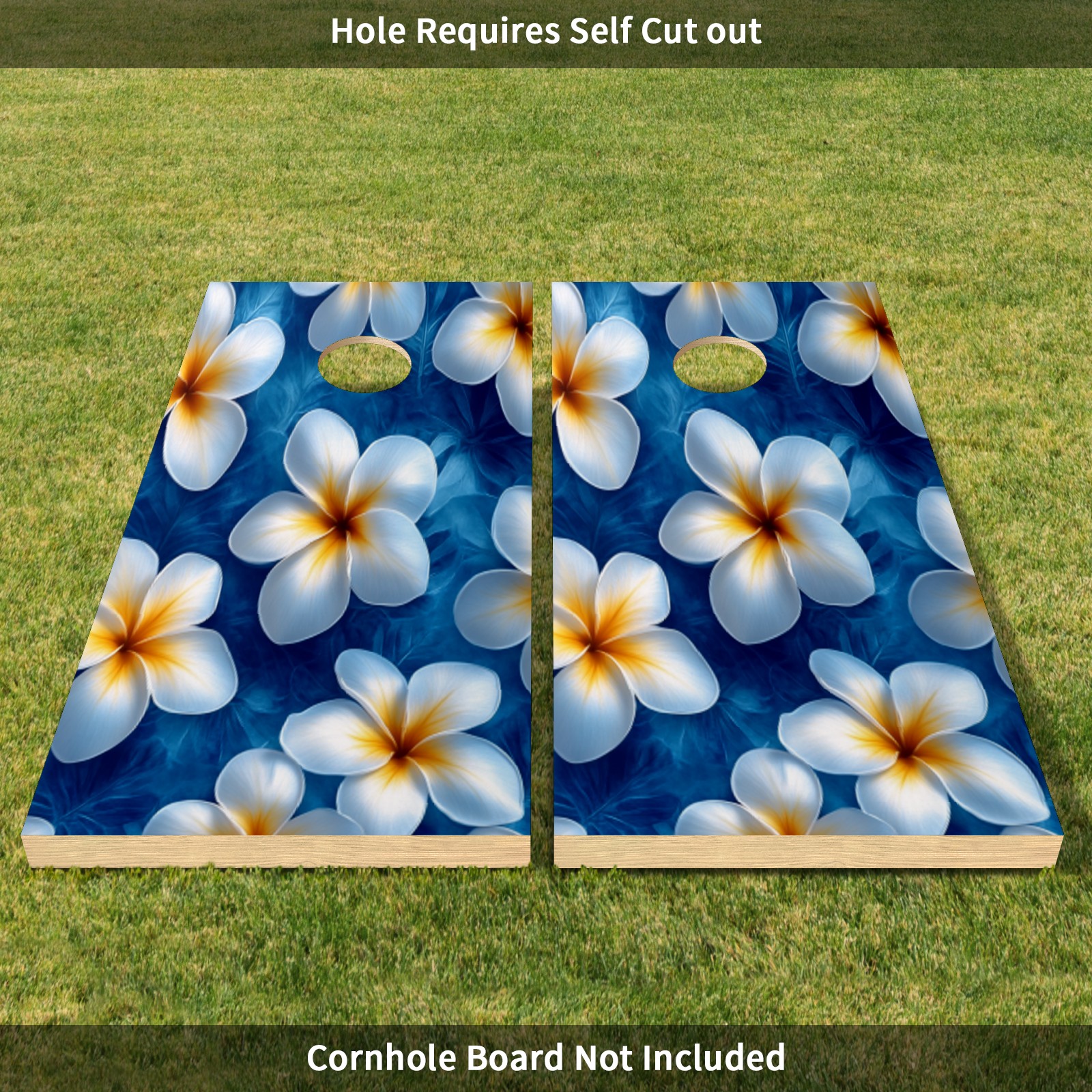 Portable 4x2 Ft Cornhole Boards Set with Two-piece Game Sticker(Decals ONLY), Easy to Apply - Corn Hole Games for Adults Outdoor Bean Bag Toss Game White Flower Pattern1
