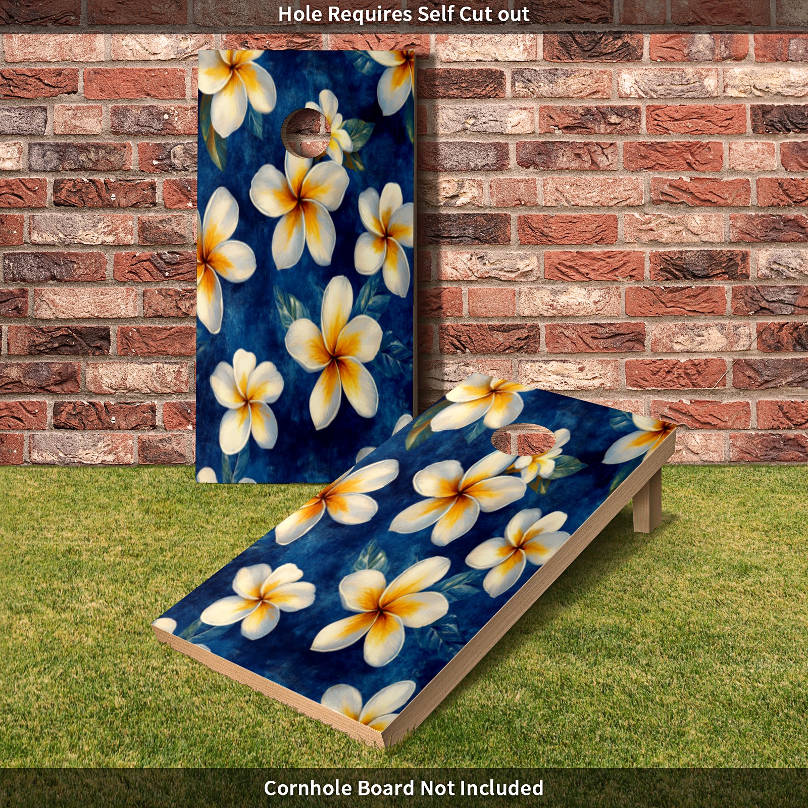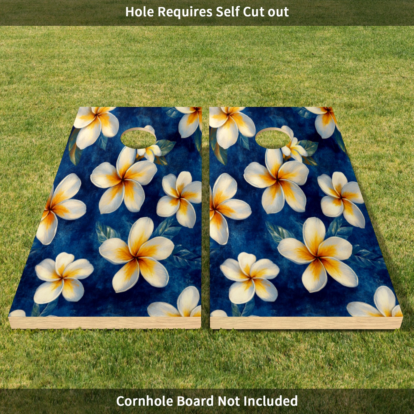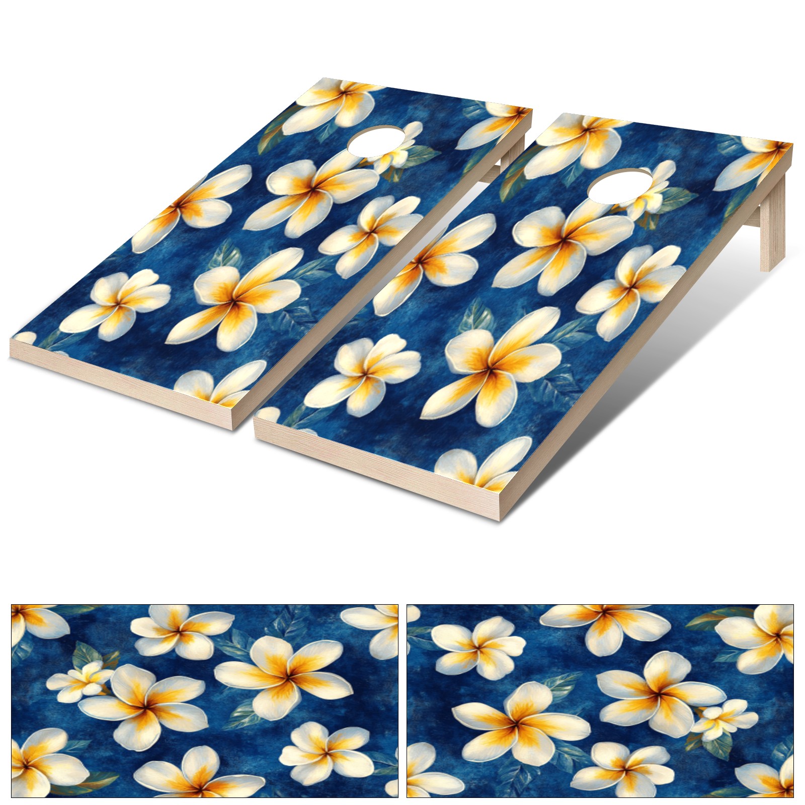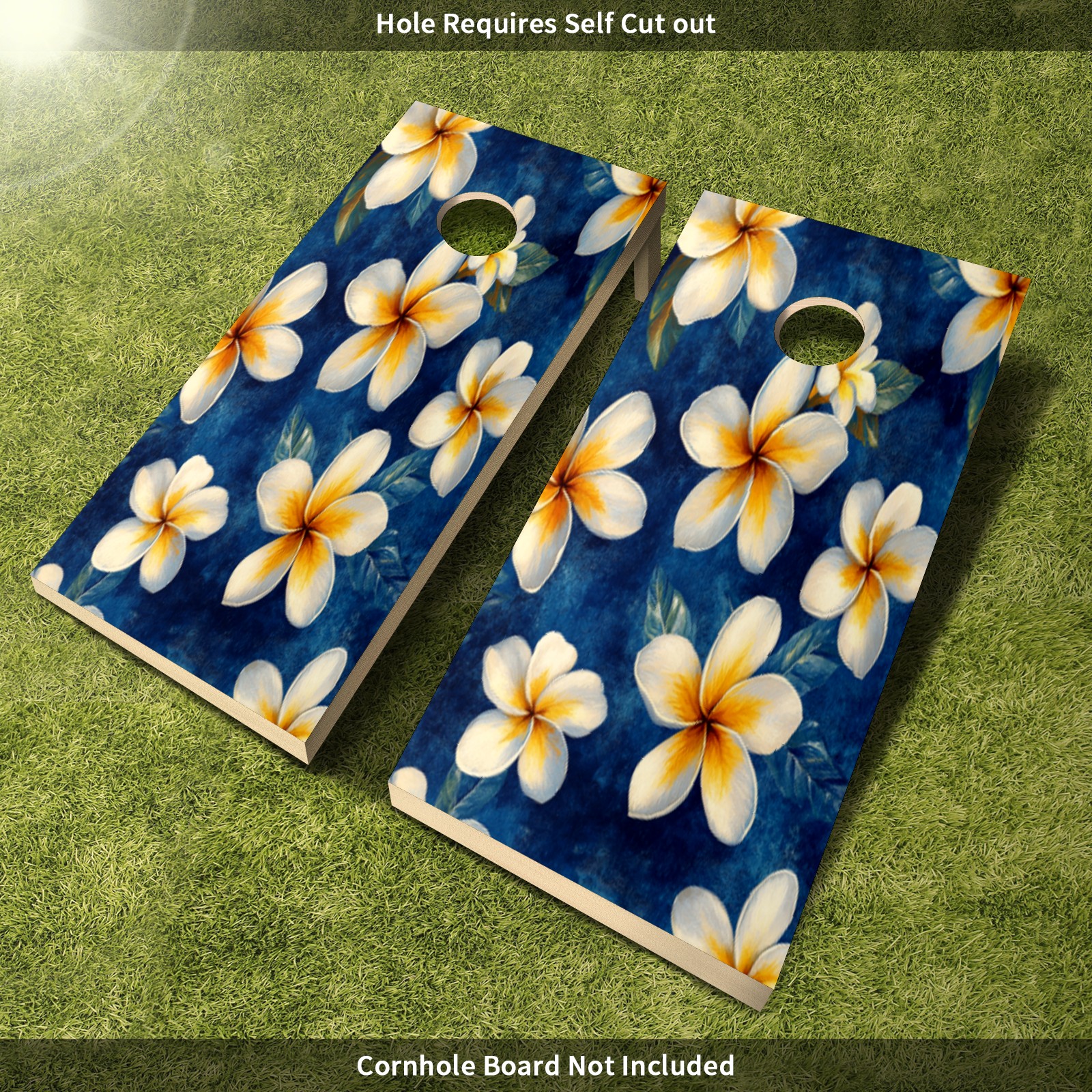 Portable 4x2 Ft Cornhole Boards Set with Two-piece Game Sticker(Decals ONLY), Easy to Apply - Corn Hole Games for Adults Outdoor Bean Bag Toss Game White Flower Pattern2