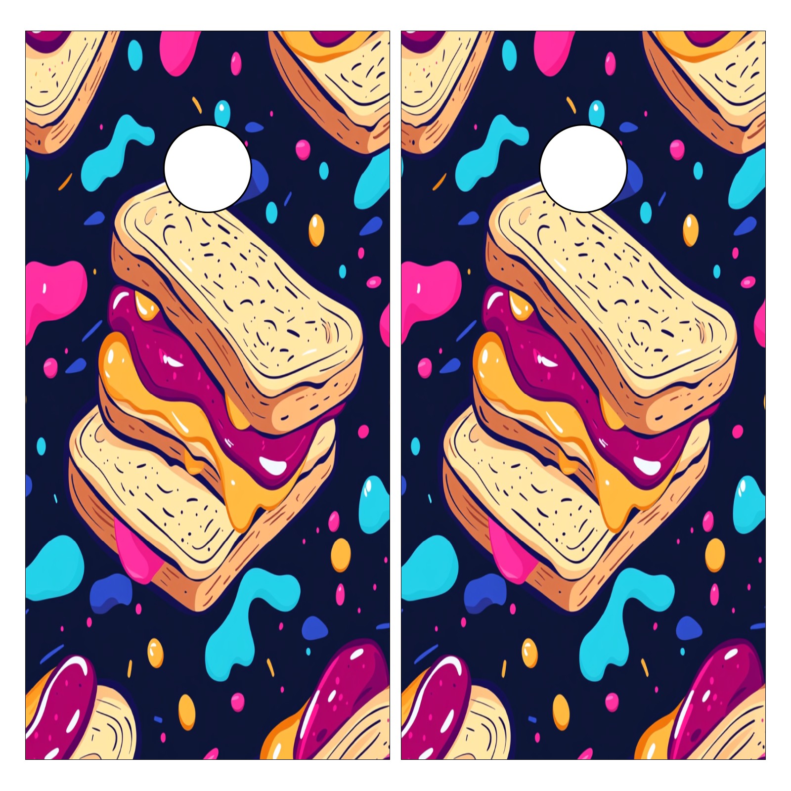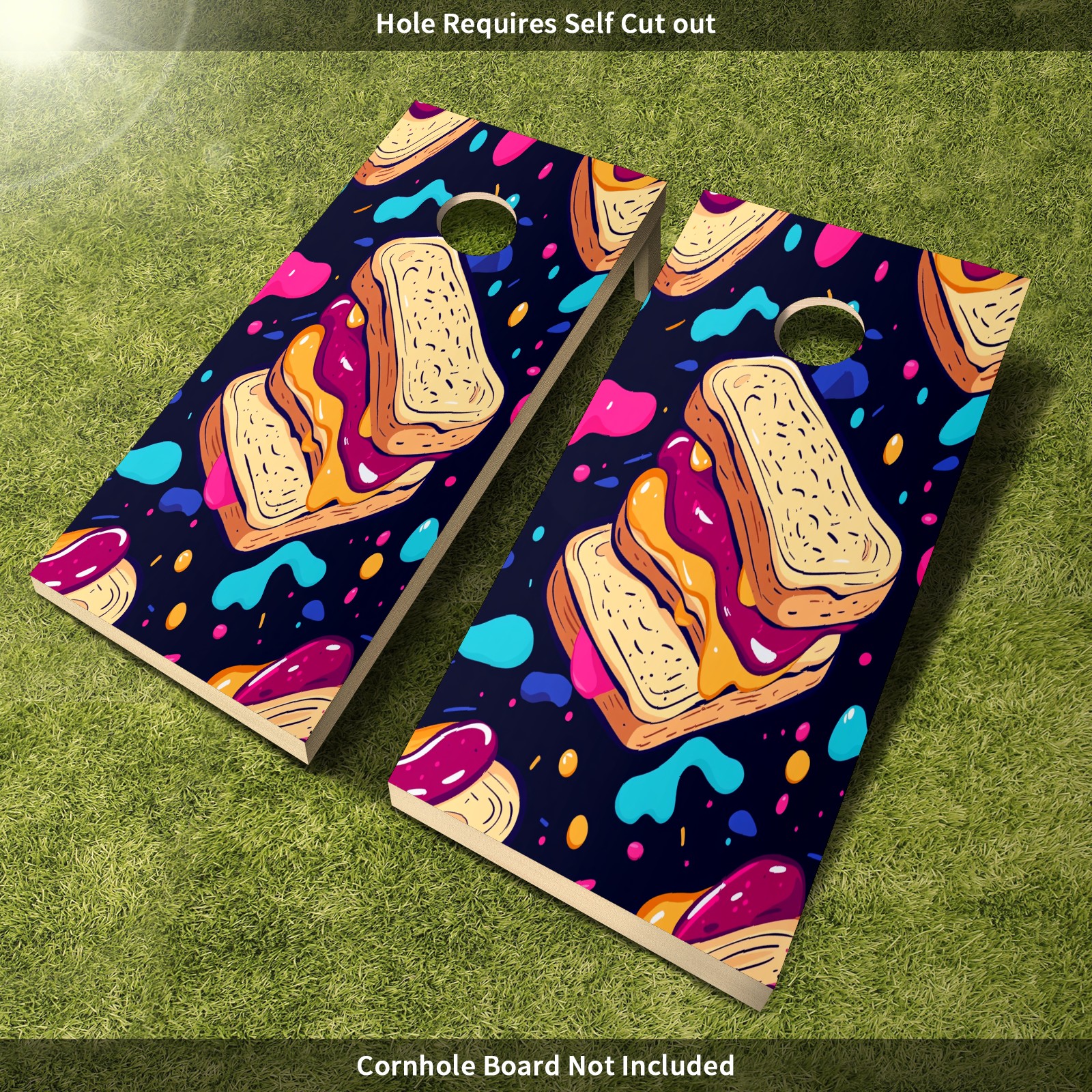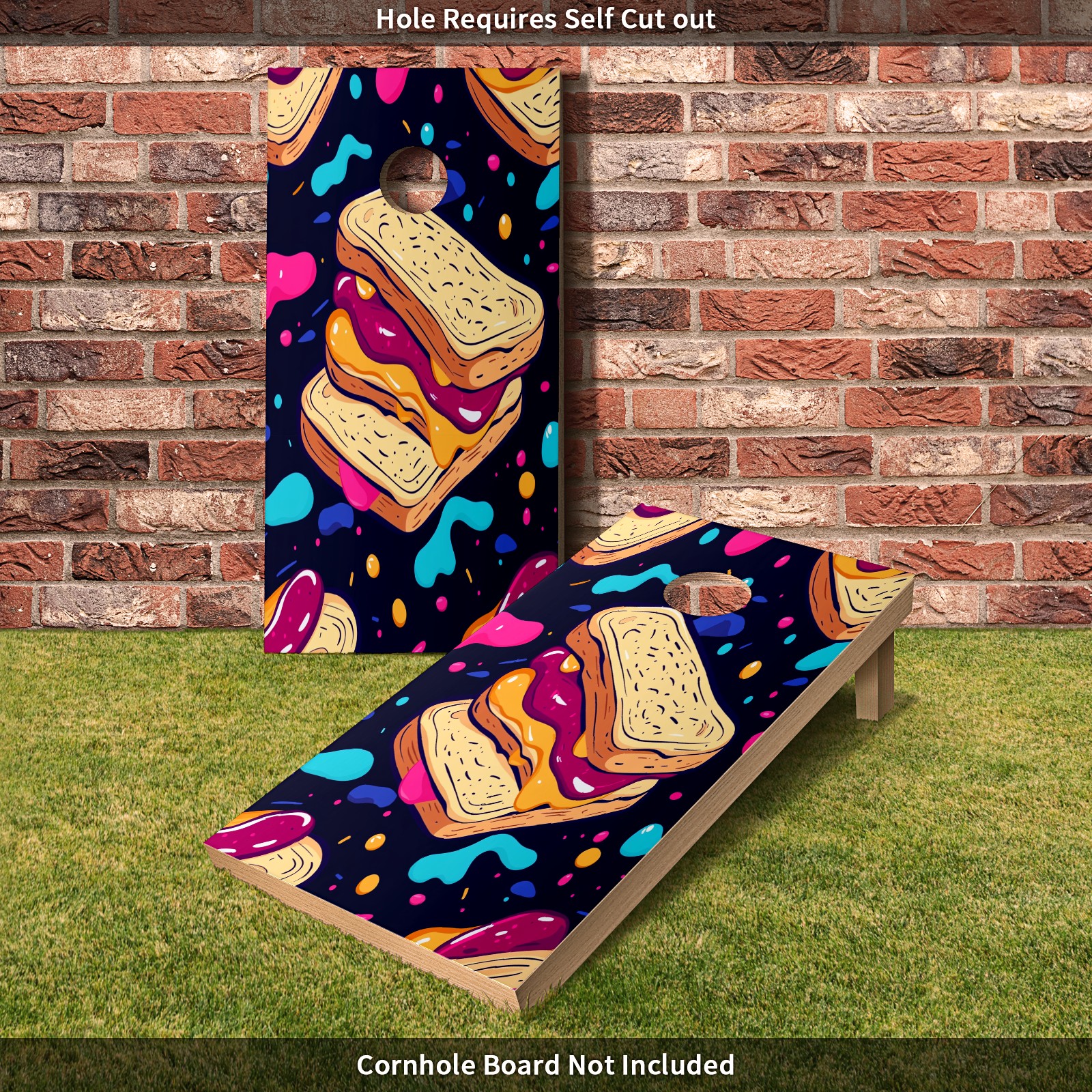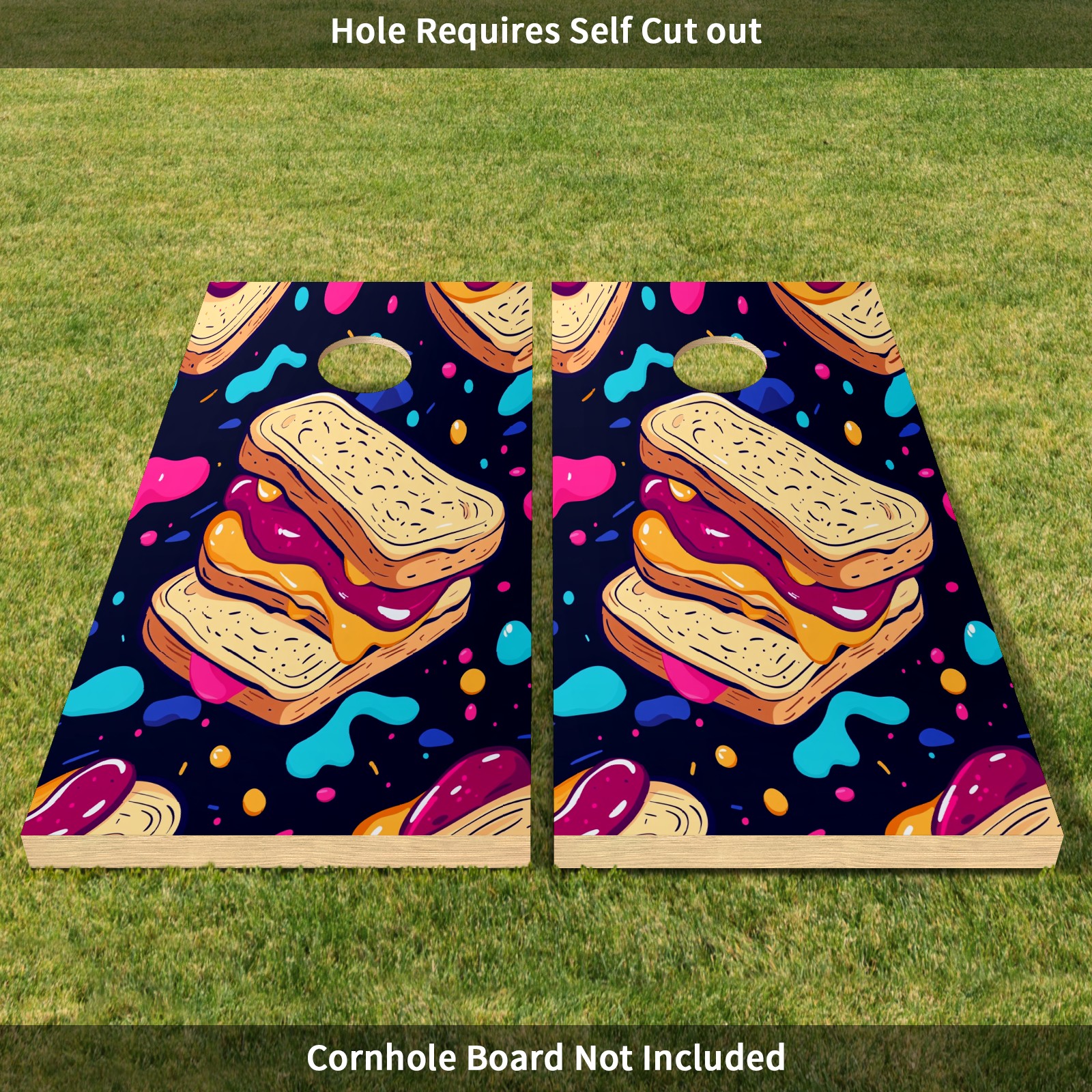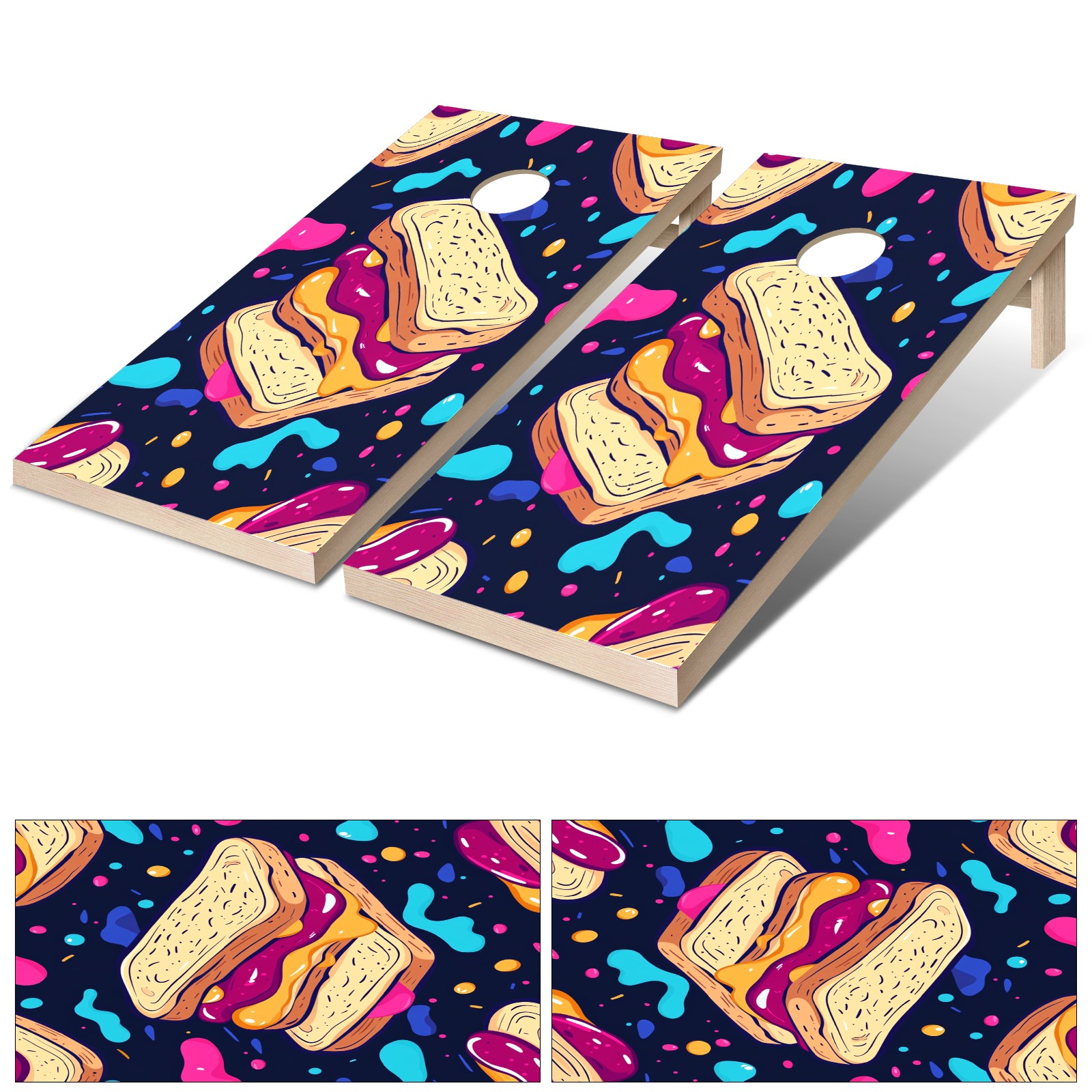 Portable 4x2 Ft Cornhole Boards Set with Two-piece Game Sticker(Decals ONLY), Easy to Apply - Corn Hole Games for Adults Outdoor Bean Bag Toss Game Delicious Bread Pattern3
