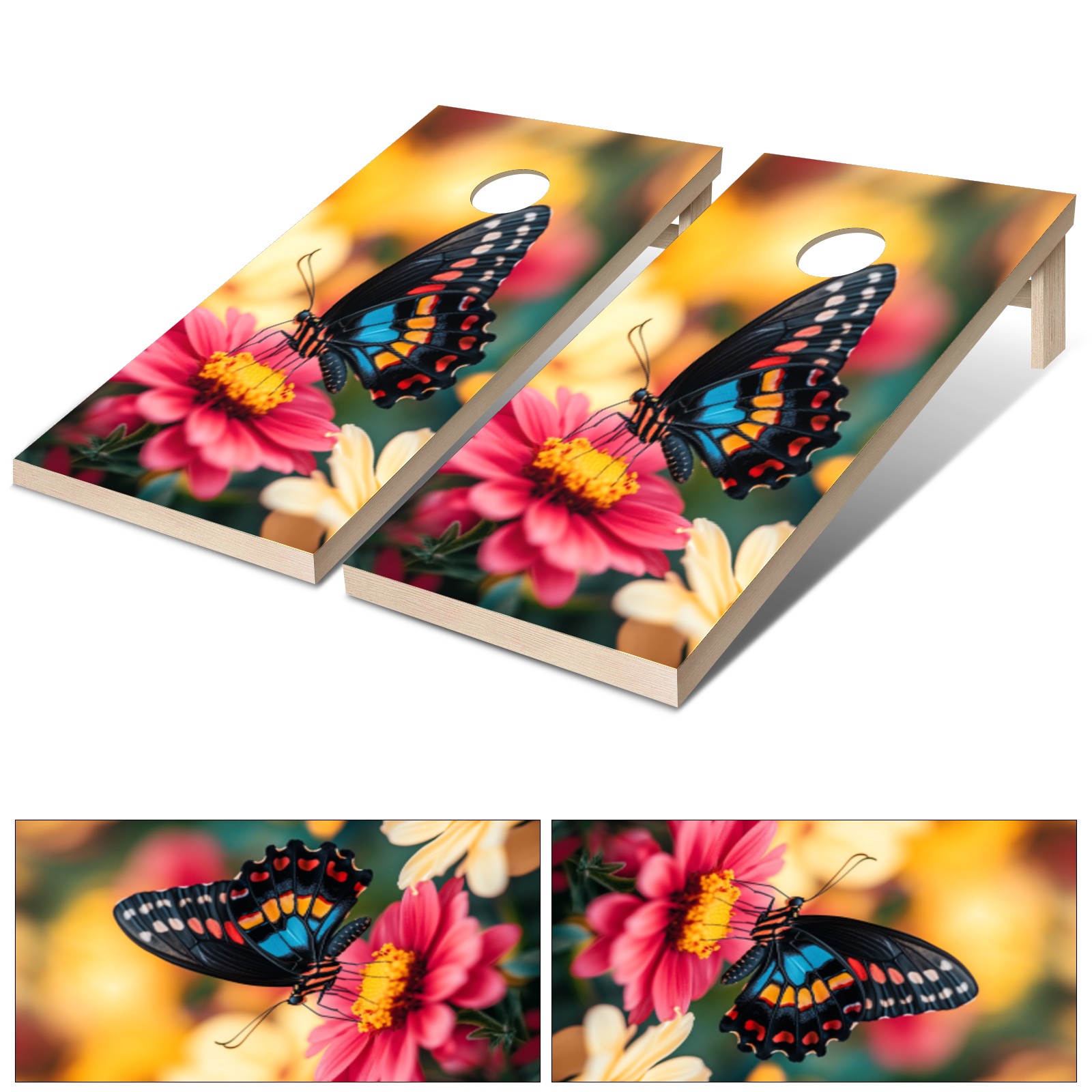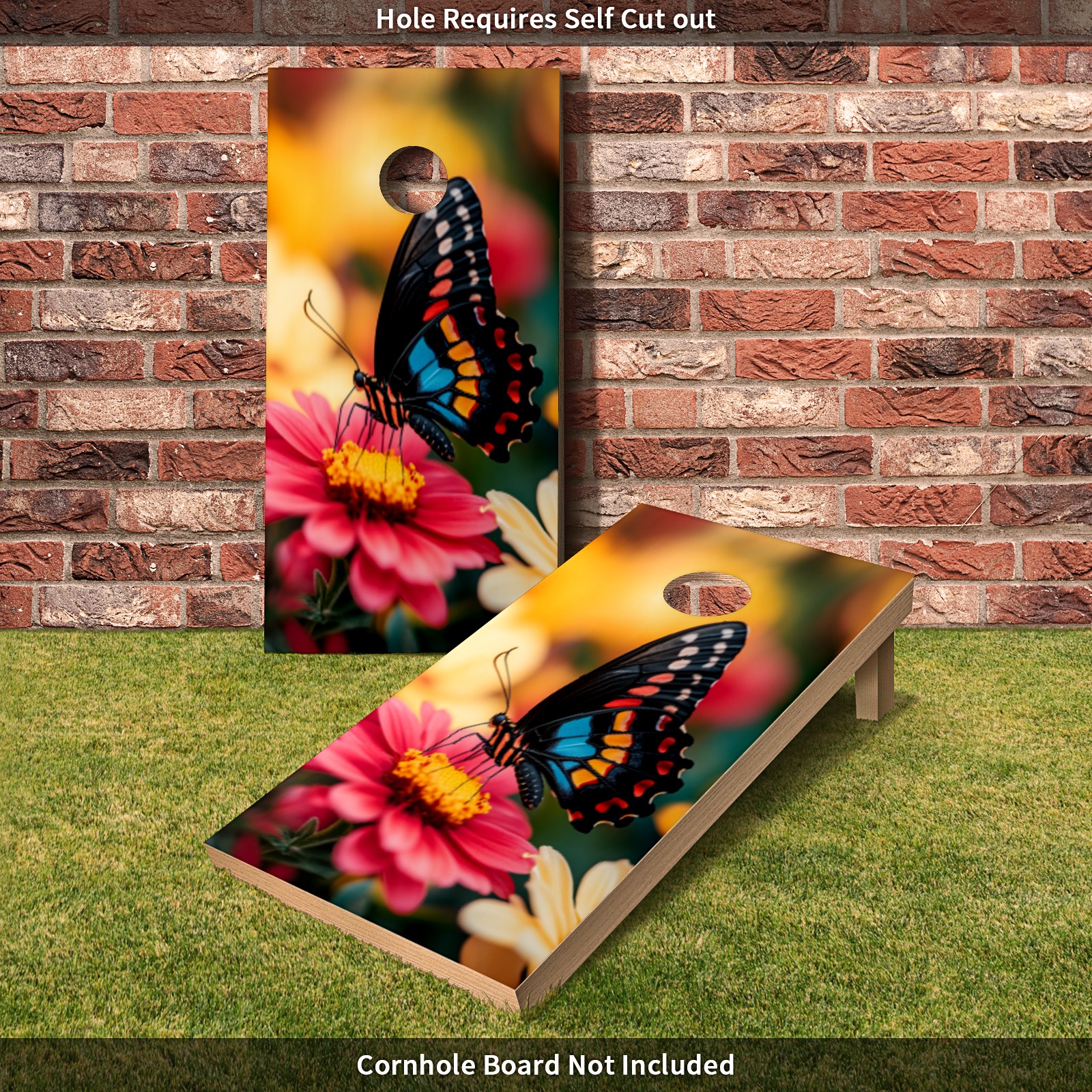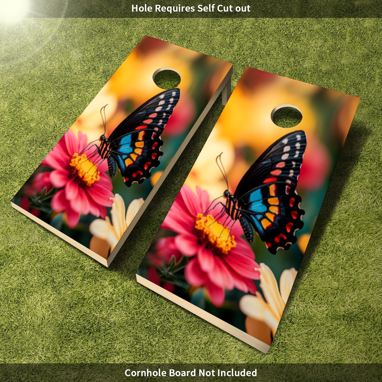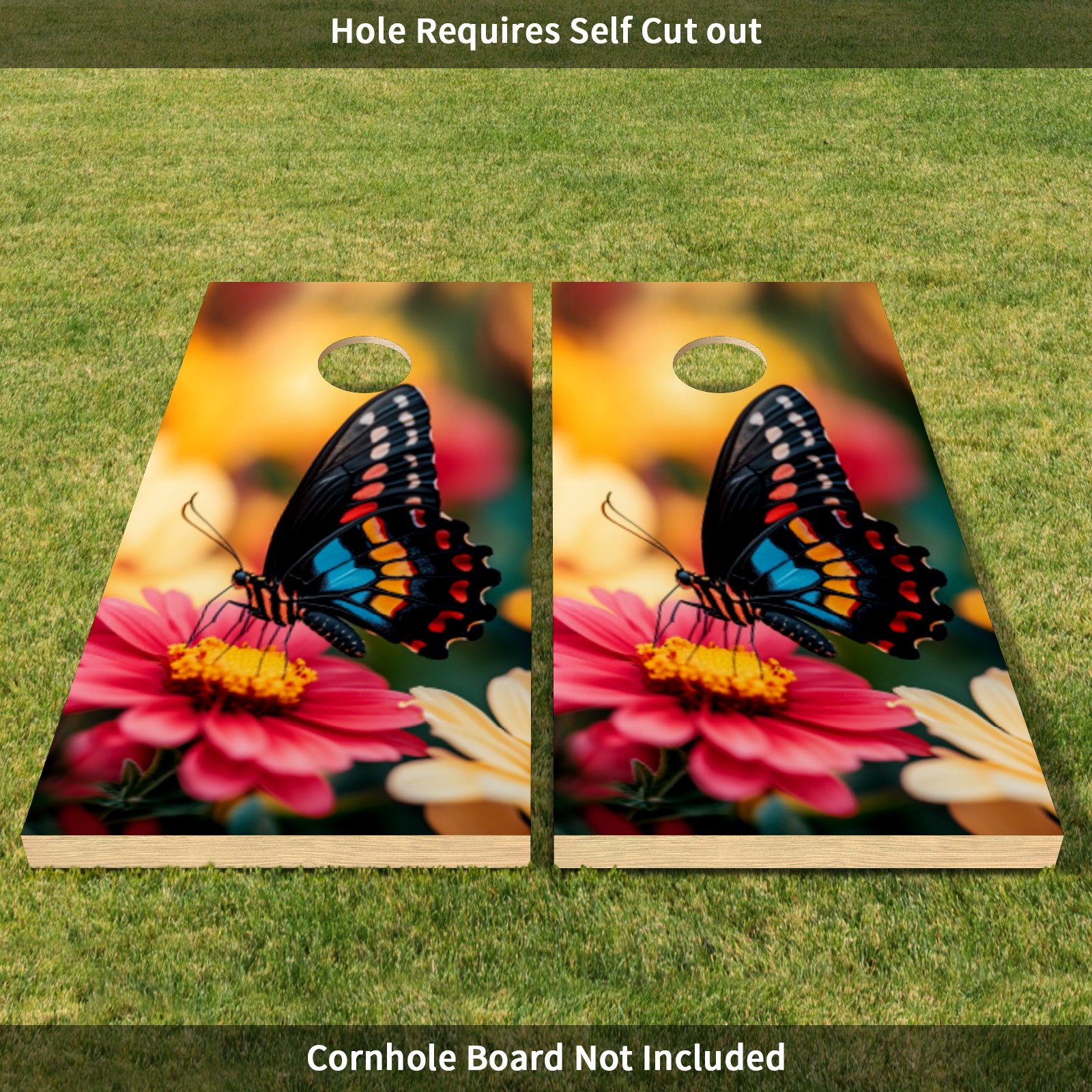 Portable 4x2 Ft Cornhole Boards Set with Two-piece Game Sticker(Decals ONLY), Easy to Apply - Corn Hole Games for Adults Outdoor Bean Bag Toss Game Flower Butterfly Pattern2