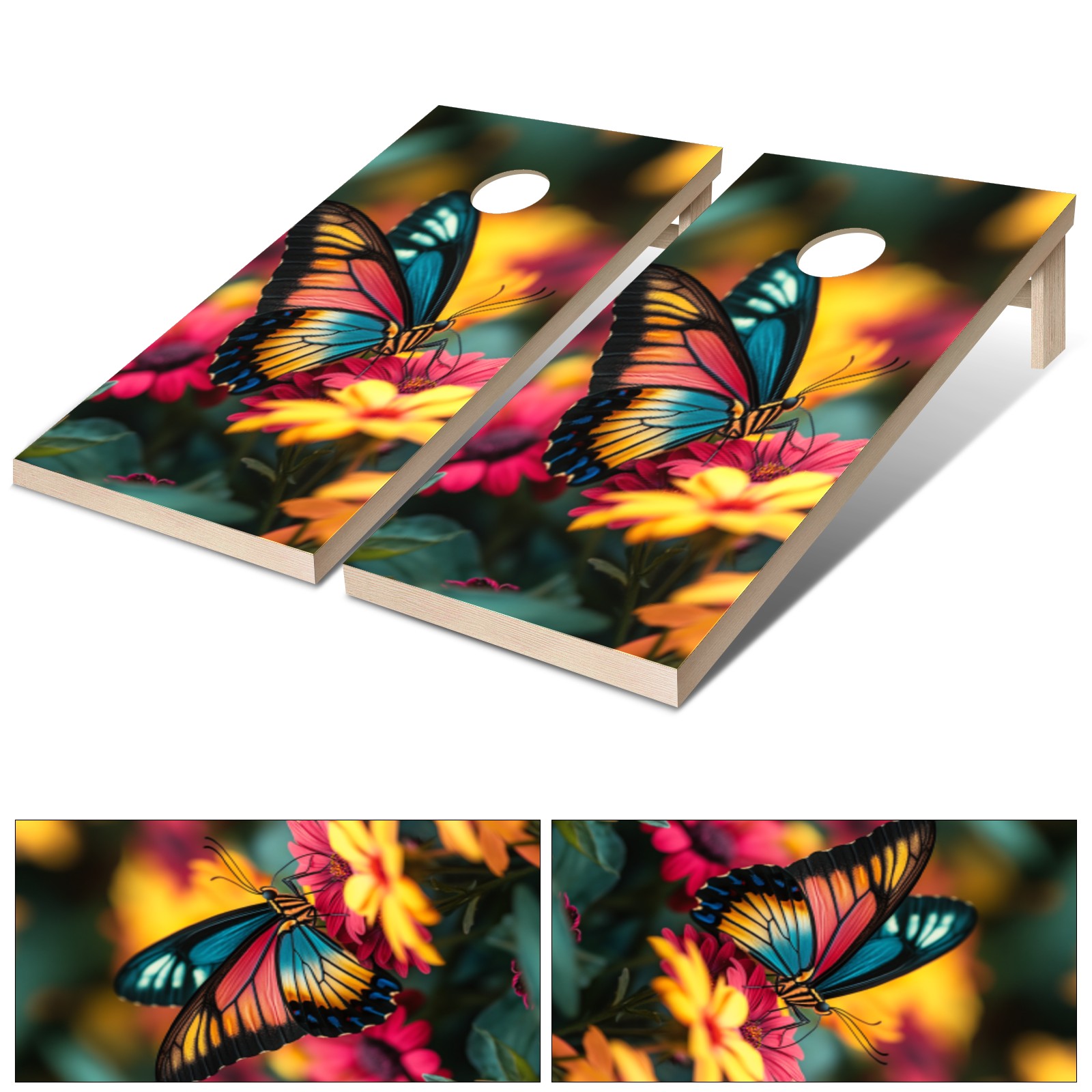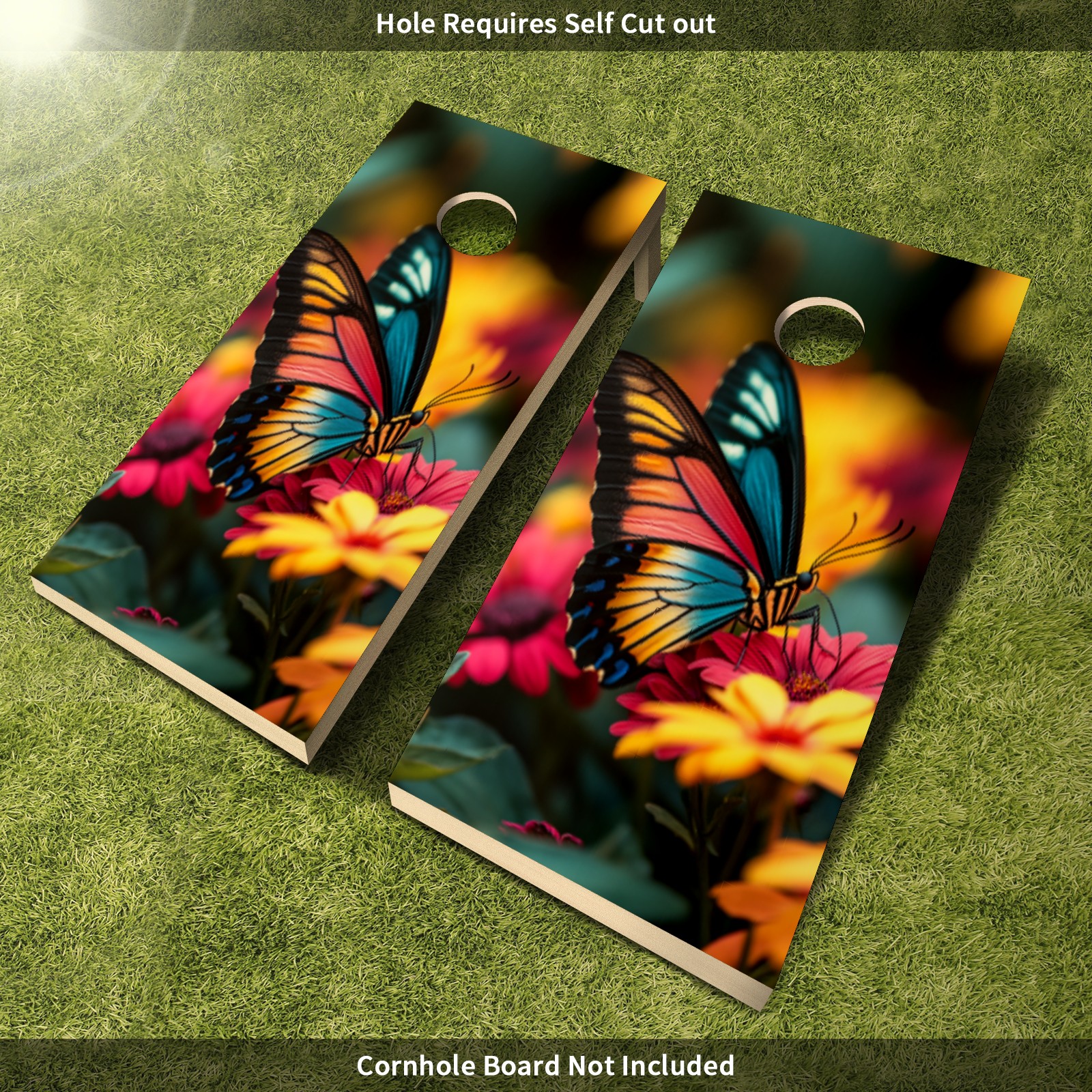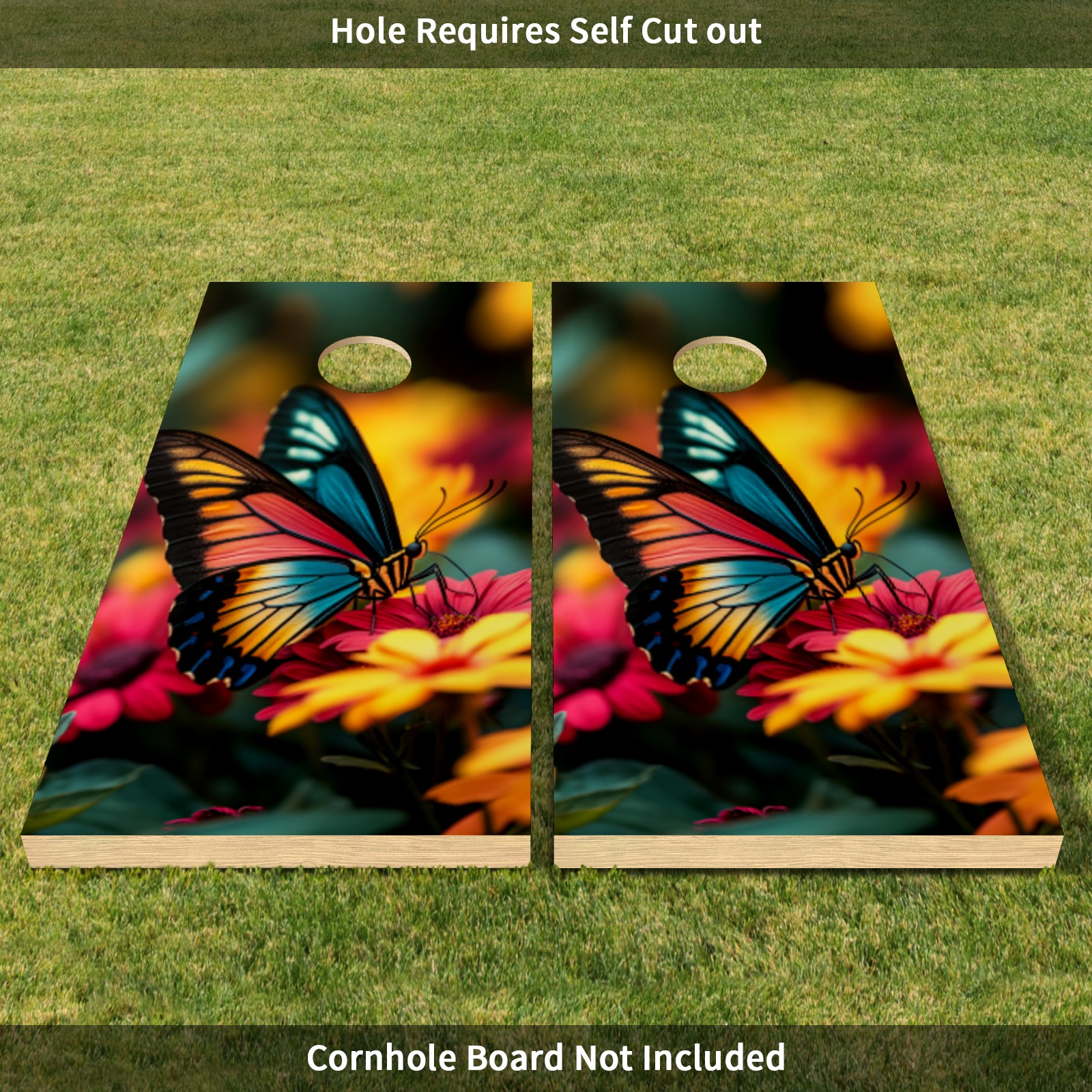 Portable 4x2 Ft Cornhole Boards Set with Two-piece Game Sticker(Decals ONLY), Easy to Apply - Corn Hole Games for Adults Outdoor Bean Bag Toss Game Flower Butterfly Pattern1