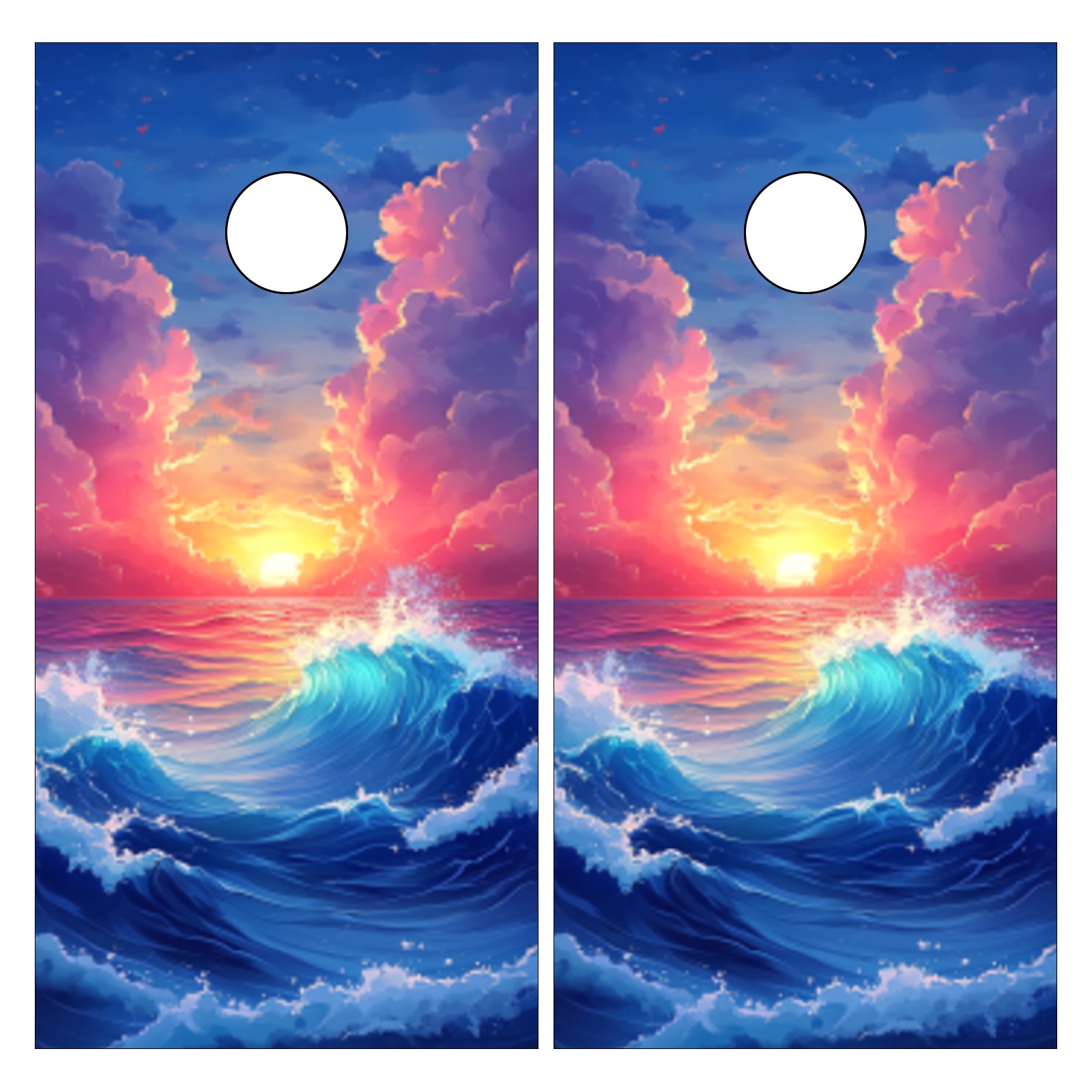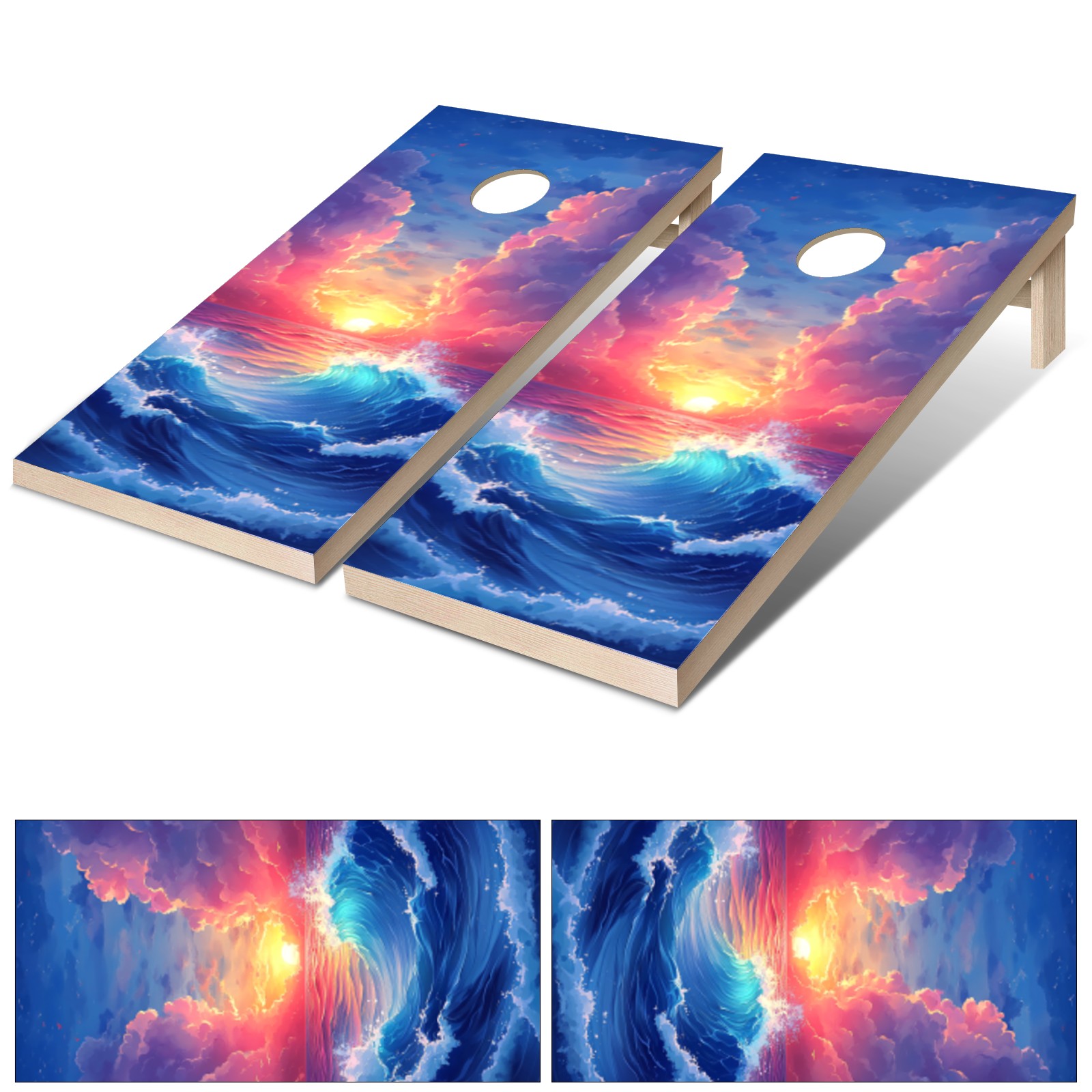 Portable 4x2 Ft Cornhole Boards Set with Two-piece Game Sticker(Decals ONLY), Easy to Apply - Corn Hole Games for Adults Outdoor Bean Bag Toss Game Wave Pattern