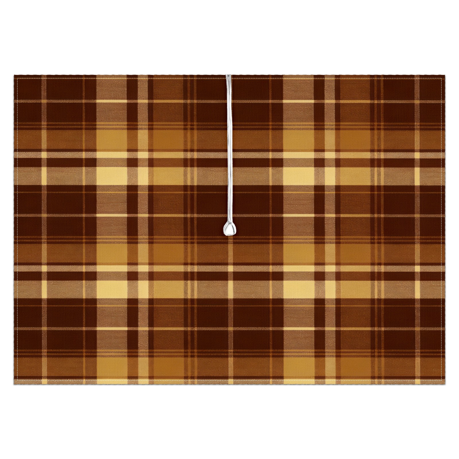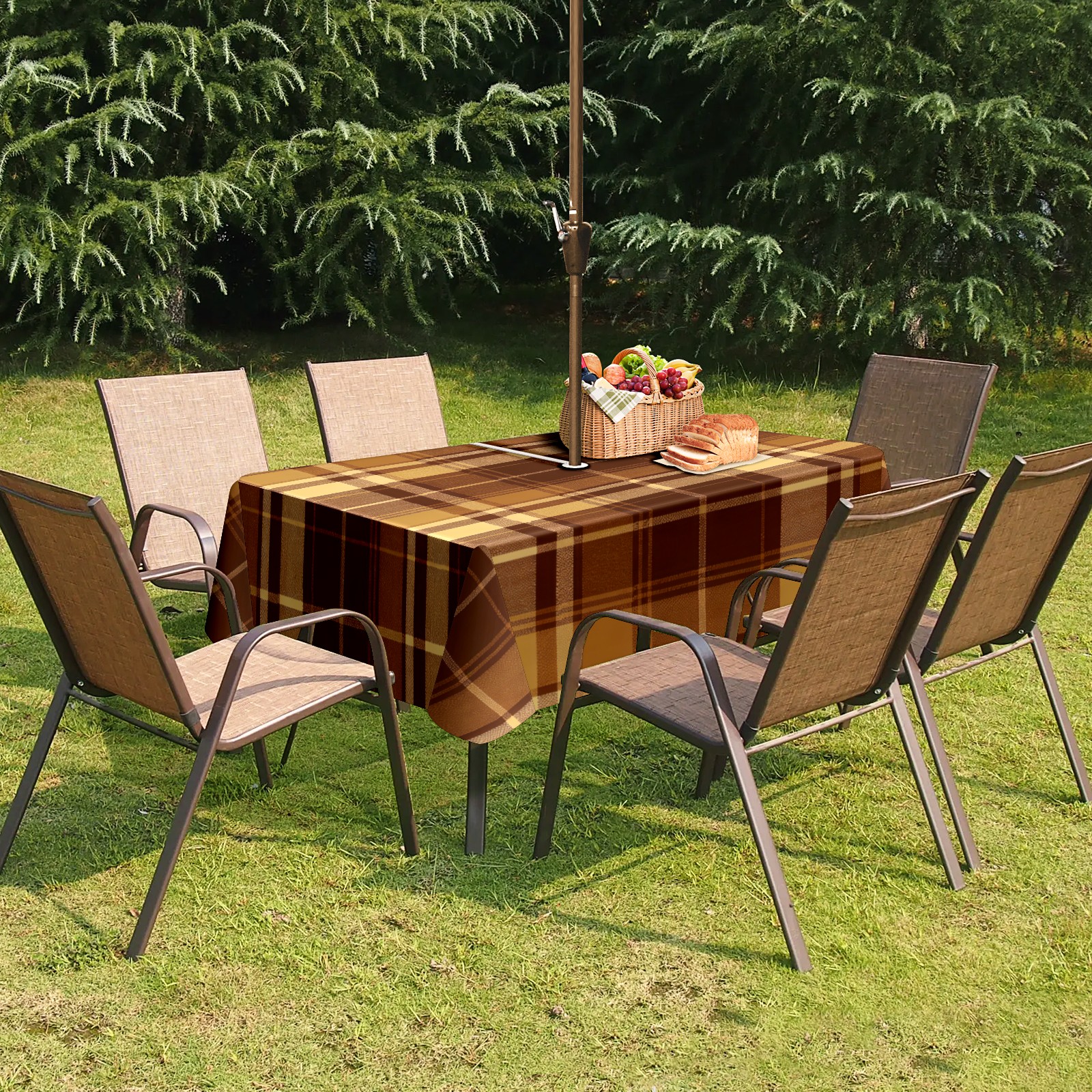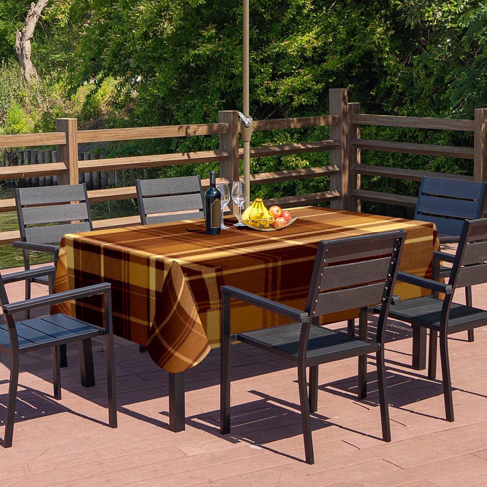 Outdoor Tablecloth with Zipper and Umbrella Eyelets Brown Plaid Ideal Tablecloth for Picnic, Camping, Terrace and Garden Use (52x70in)