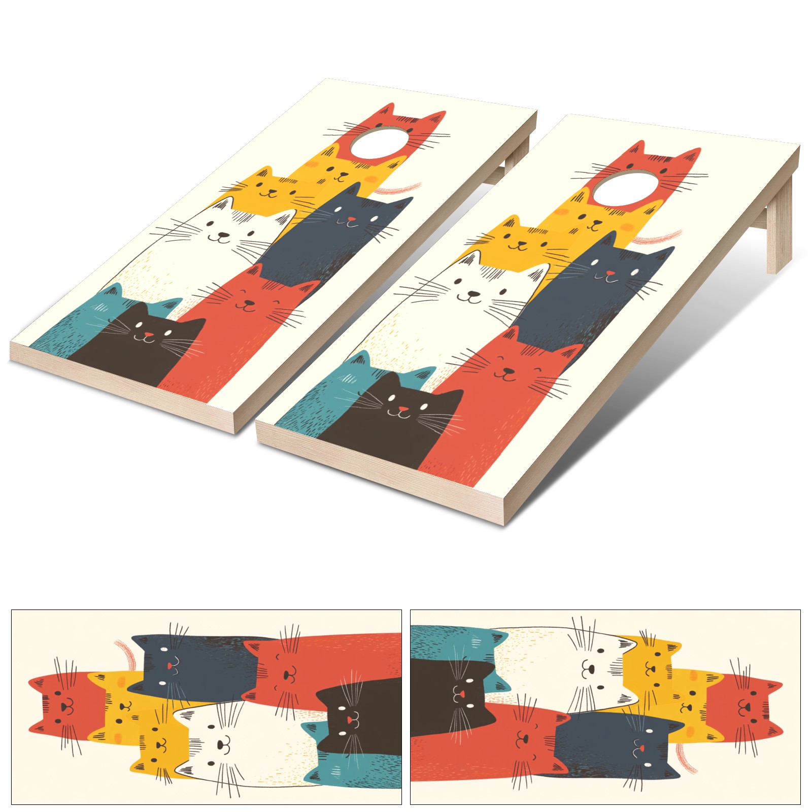 Portable 4x2 Ft Cornhole Boards Set with Two-piece Game Sticker(Decals ONLY), Easy to Apply - Corn Hole Games for Adults Outdoor Bean Bag Toss Game Cartoon Cat Pattern1